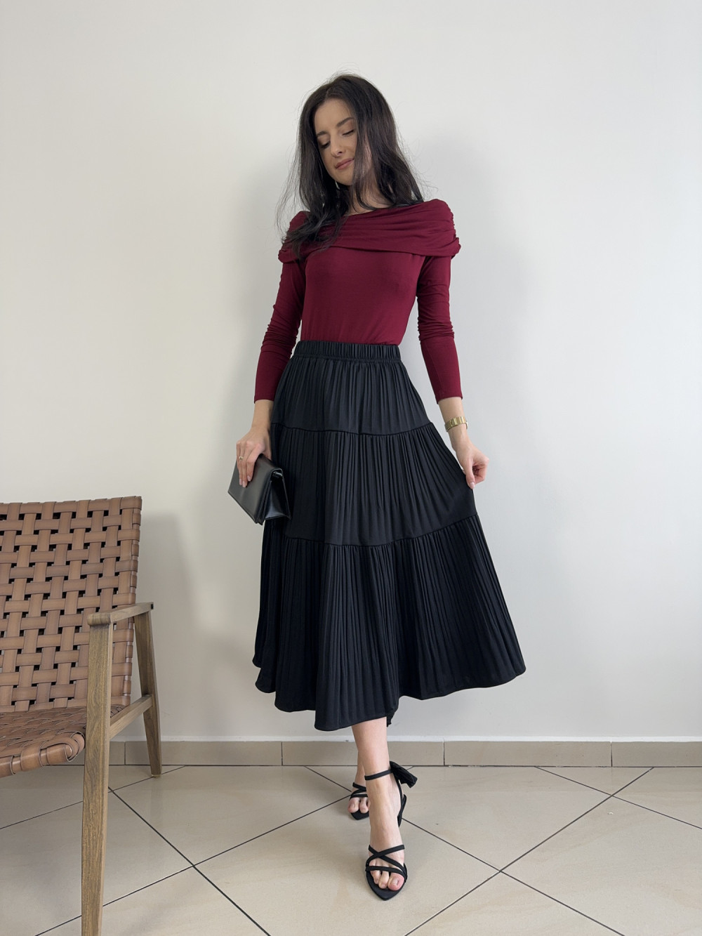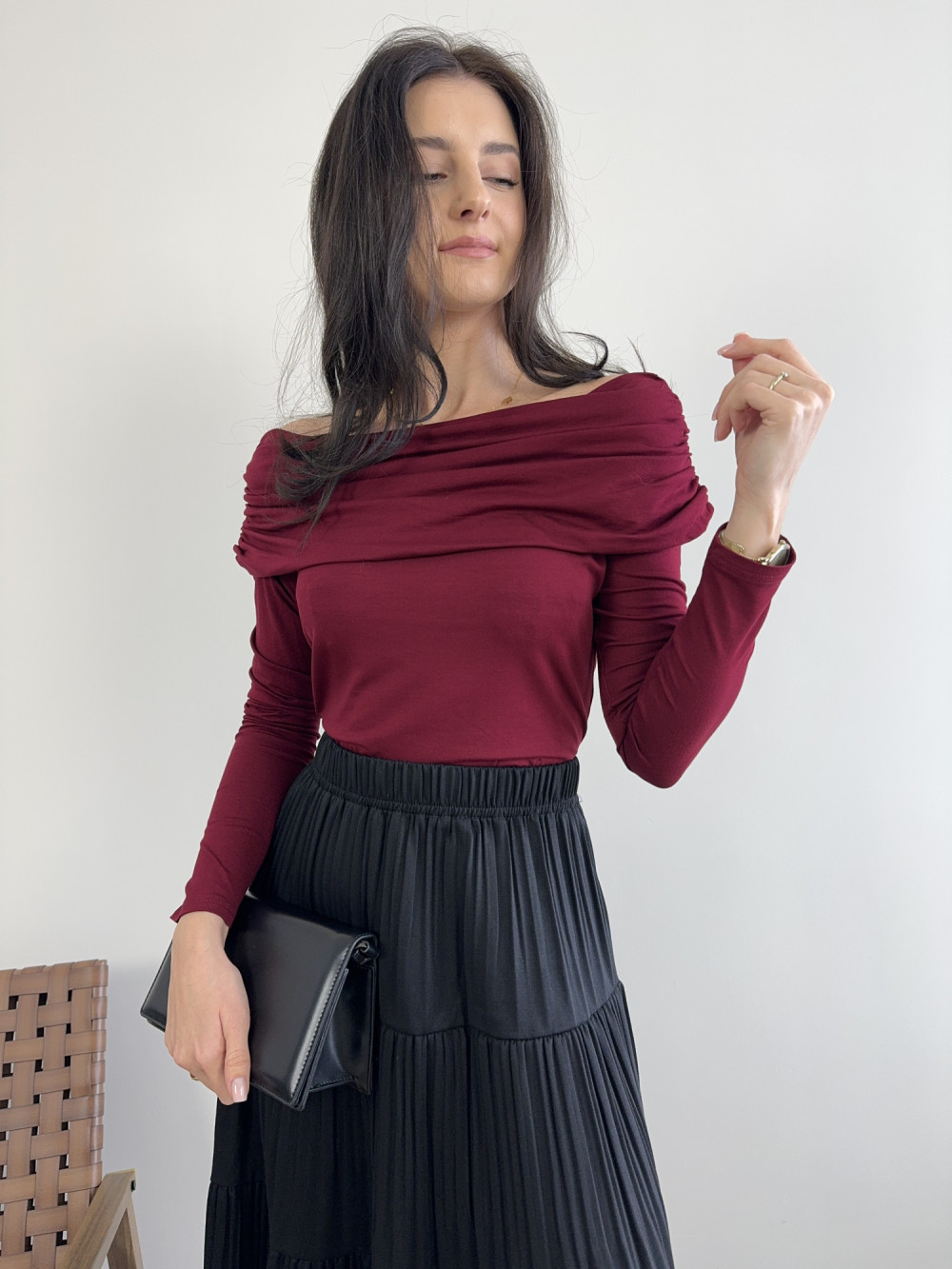 Bluzka z wywiniętym dekoltem bordowa ELIZA