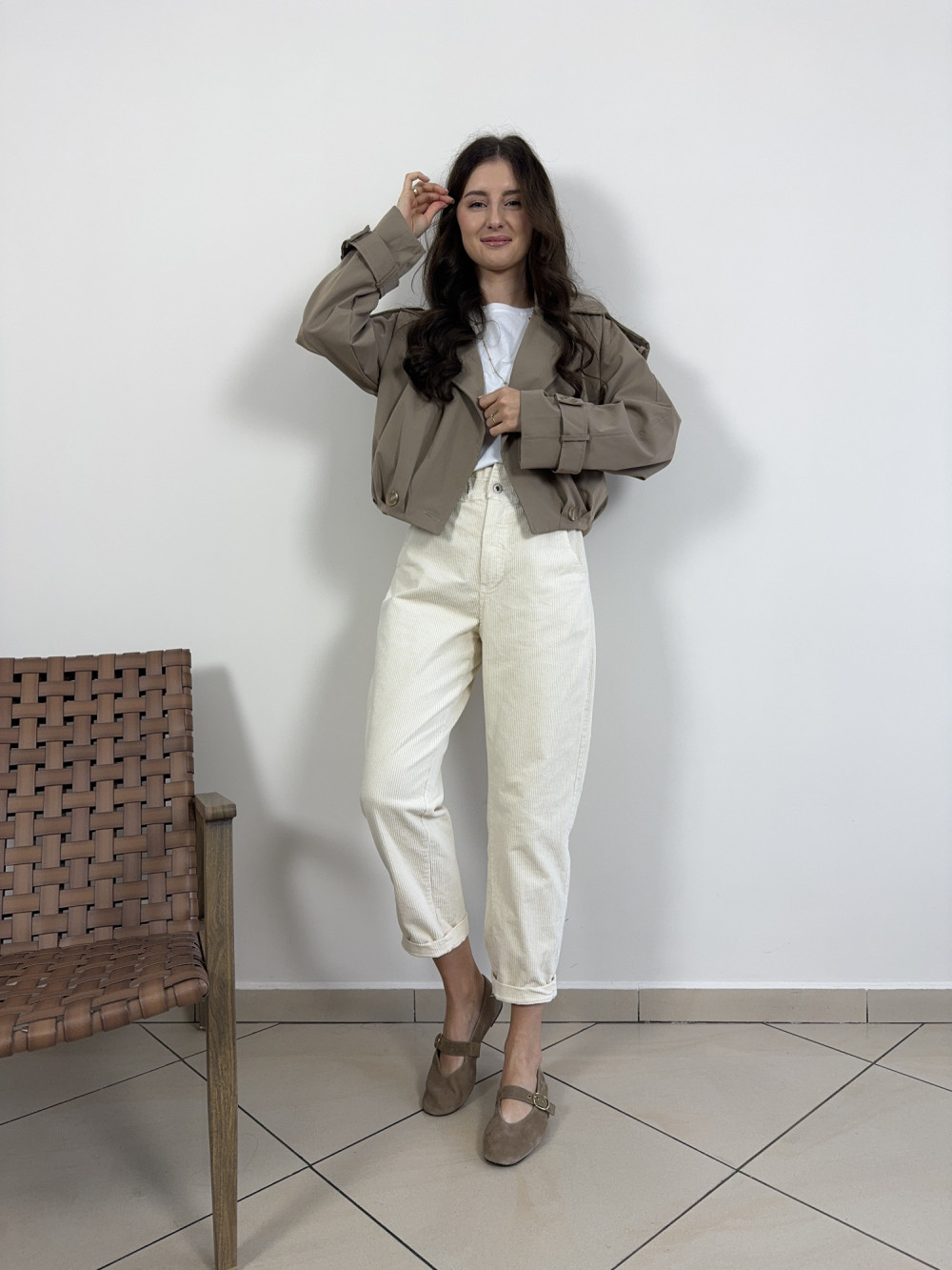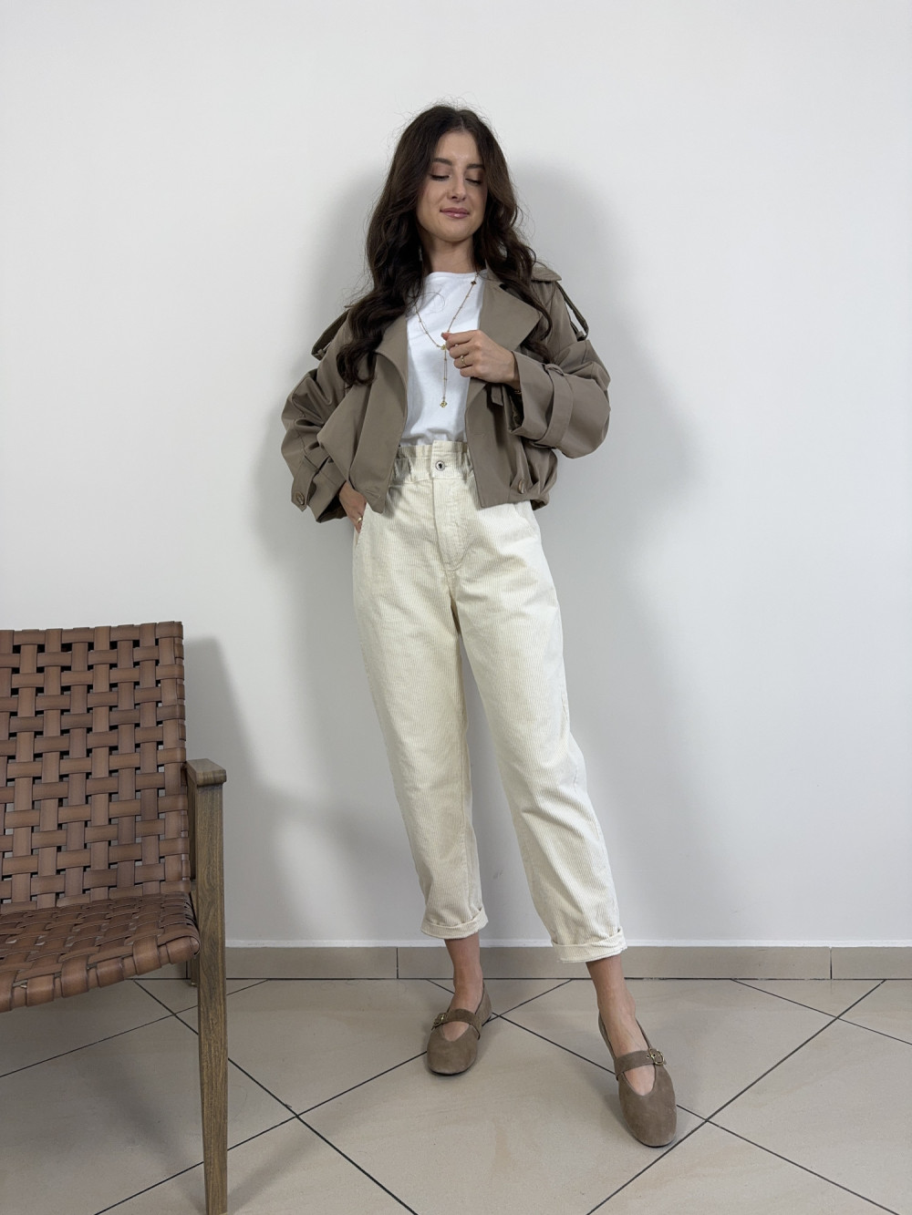 Sztruksowe spodnie w odcieniu beżu to doskonały wybór na chłodniejsze dni – są miękkie, przyjemne w dotyku i niezwykle wygodne. Swobodny krój z lekko zwężaną nogawką świetnie wpisuje się w casualowy styl, a elastyczny pas z guzikiem i kieszenie dodają im praktyczności. Neutralny kolor beżu sprawia, że bez problemu zestawisz je z dowolną górą – od prostego t-shirtu, po elegancki sweter.