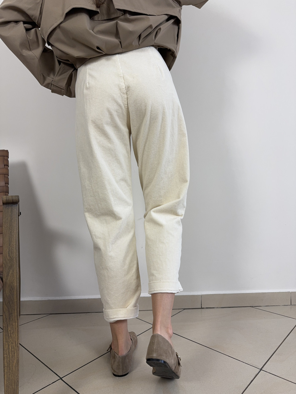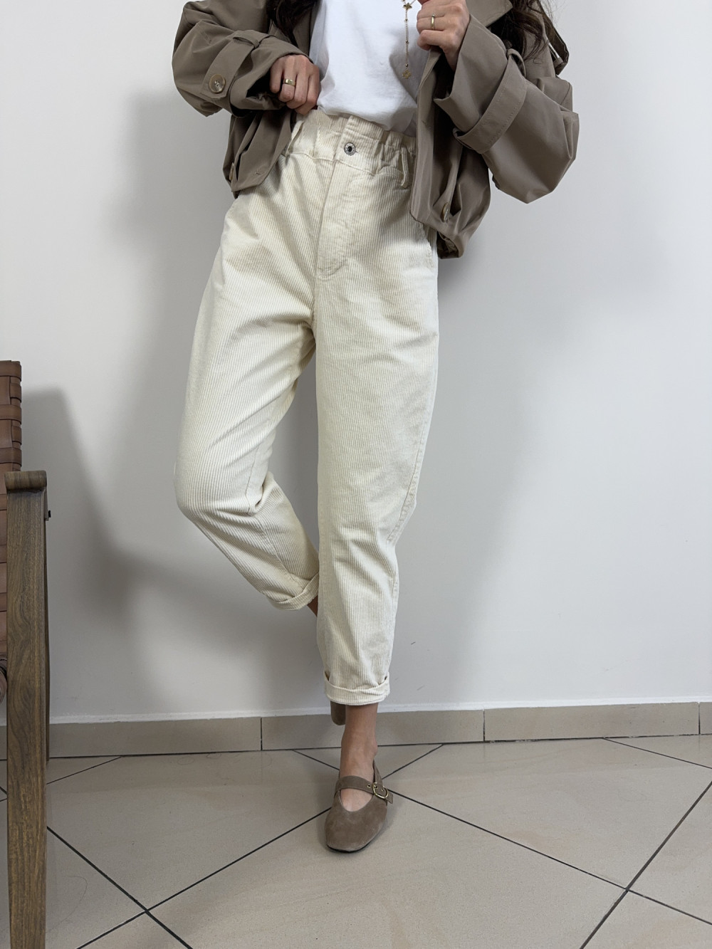 Spodnie beżowe sztruksy z gumką w pasie MARGO