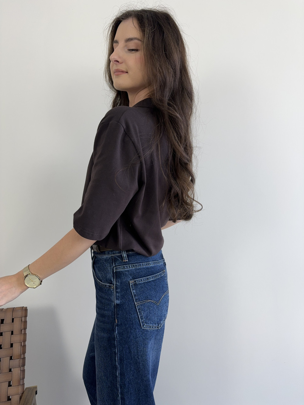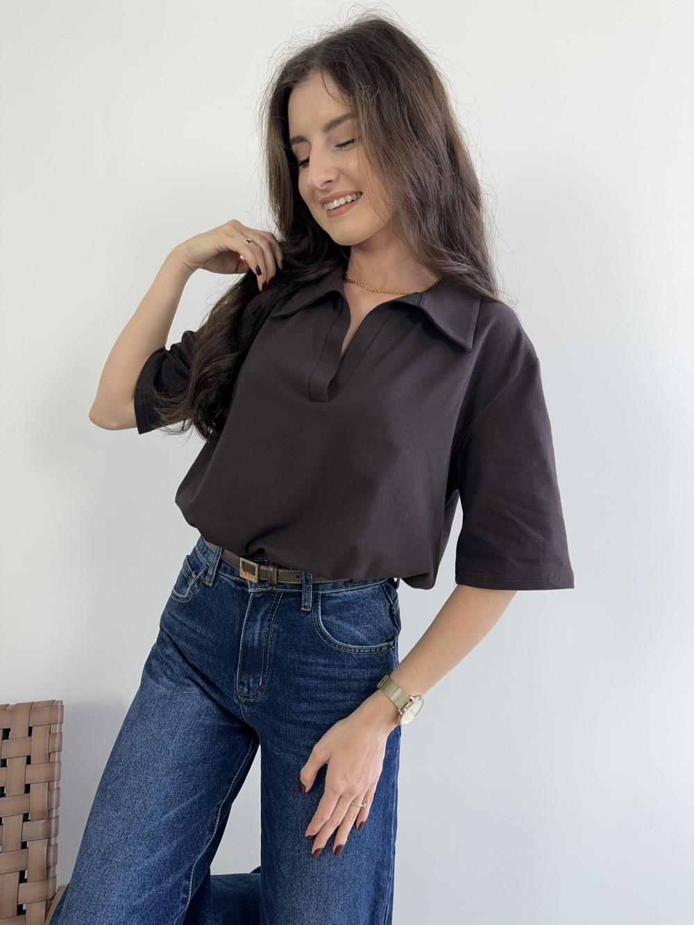 T-shirt typu polo bawełniany czekoladowy MALIBU