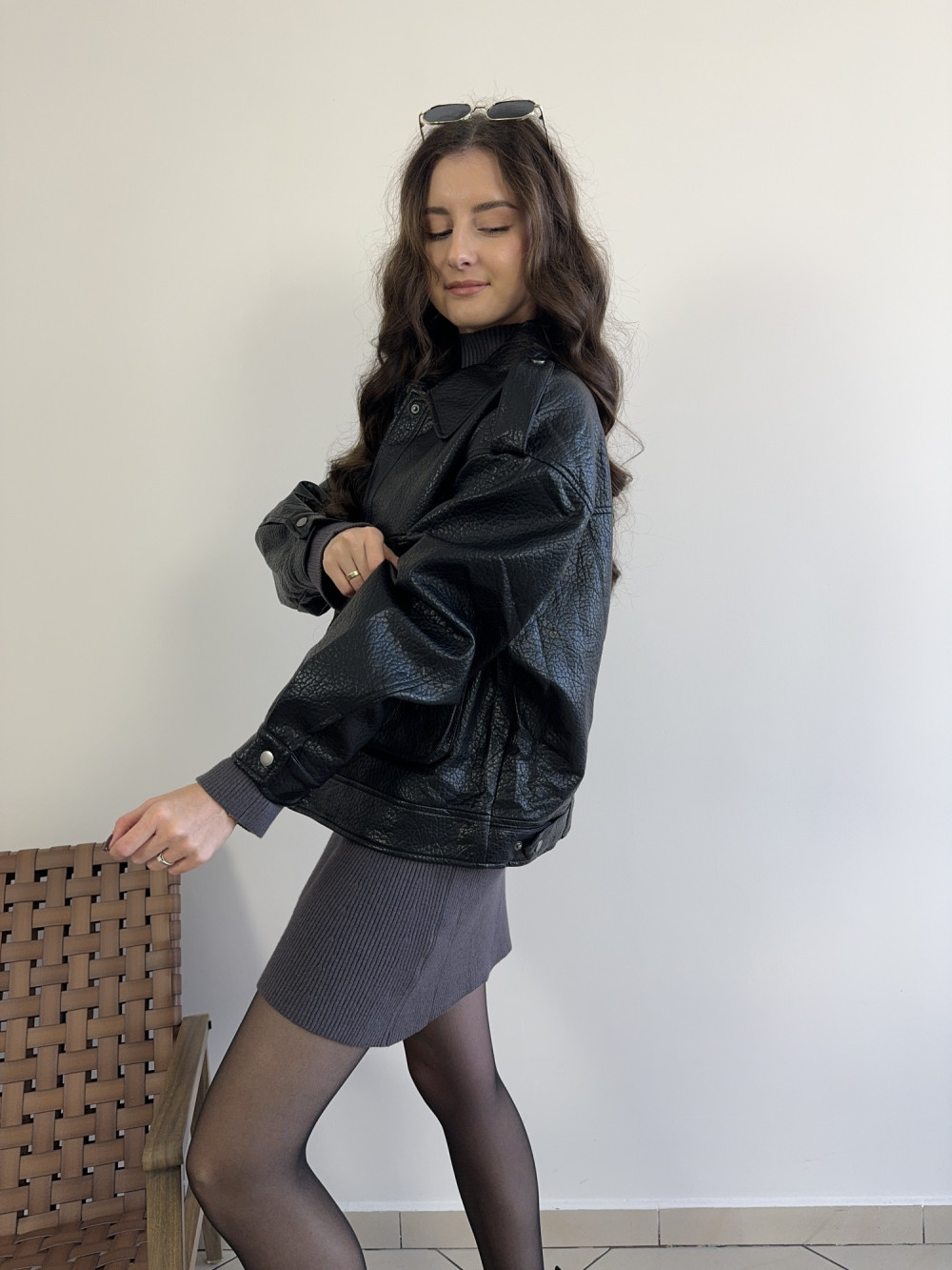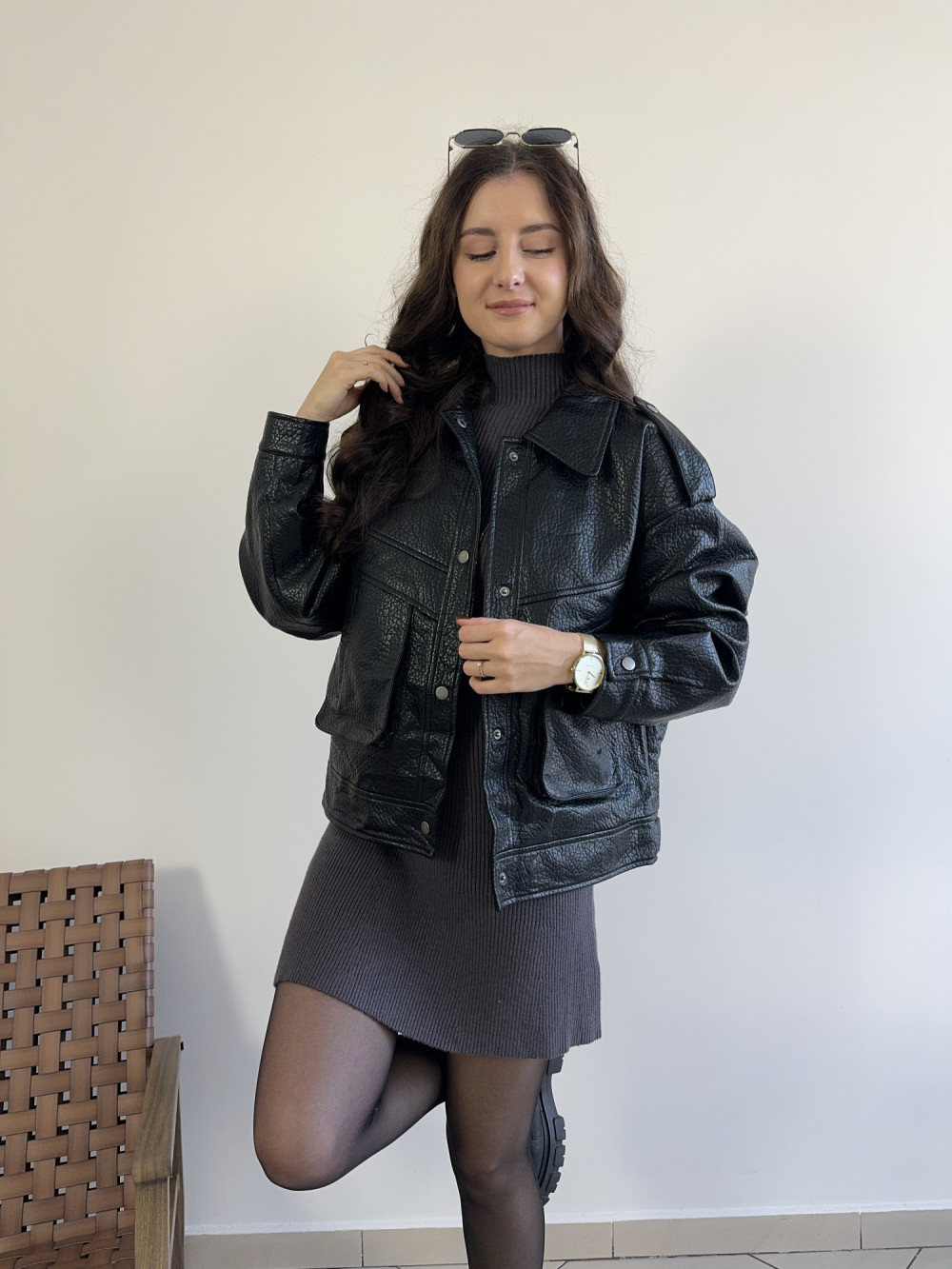 Kurtka w stylu bomber to hit, który nigdy nie wychodzi z mody. Wykonana z materiału imitującego skórę, prezentuje się bardzo stylowo i ponadczasowo. Charakterystyczny krój z dużymi kieszeniami podkreśla sylwetkę i dodaje całości luzu. Kurtka świetnie sprawdzi się w codziennych stylizacjach, szczególnie w połączeniu z jeansami czy sukienką. To idealny wybór dla kobiet, które cenią wygodę i jednocześnie chcą wyglądać modnie.
