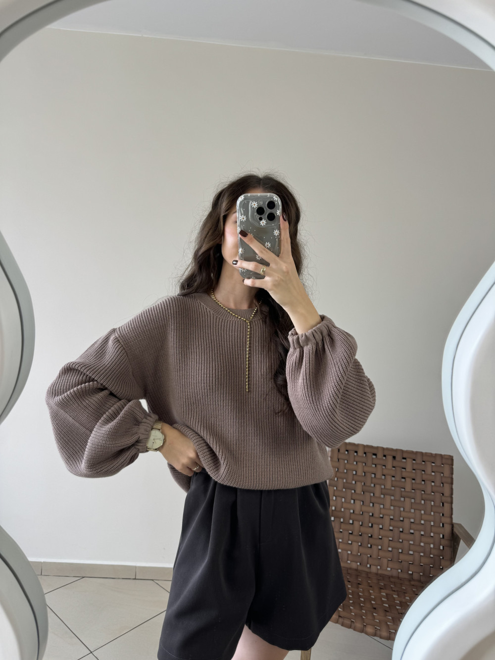 Sweter z balonowymi rękawami z kaszmirem beżowy FLUFFY