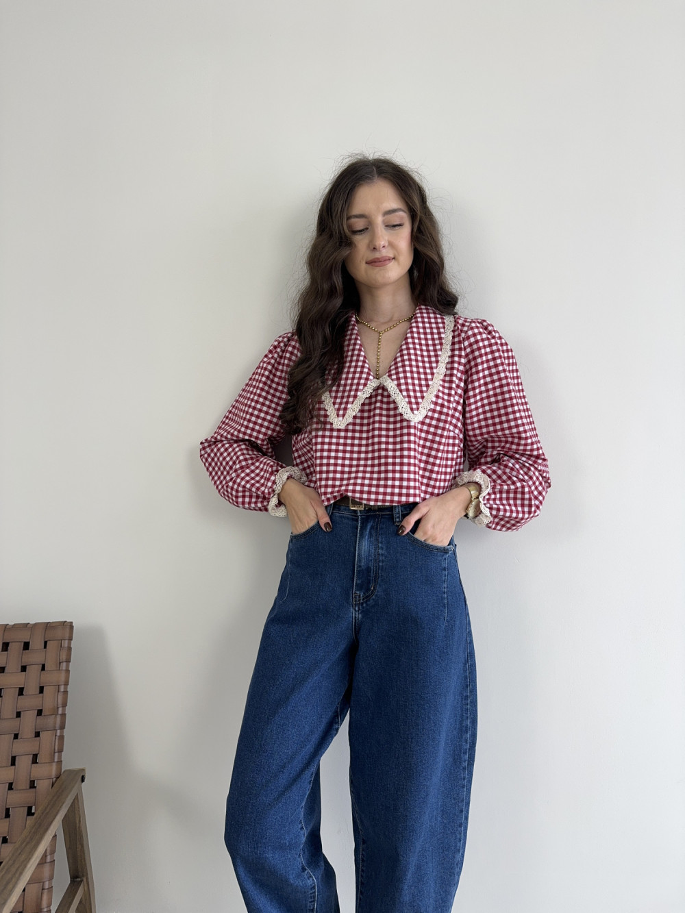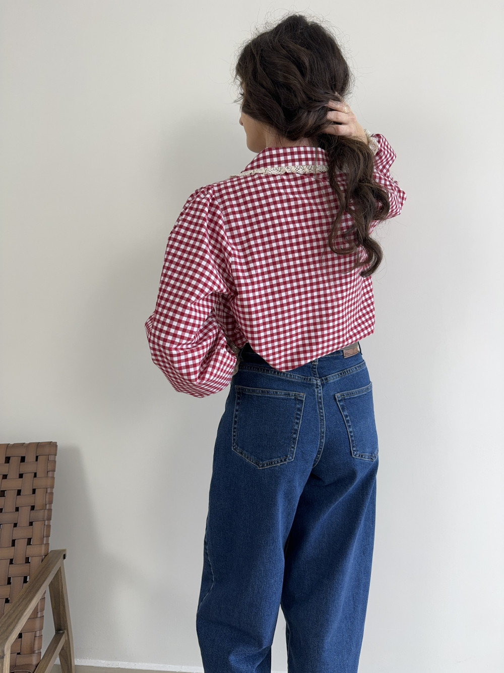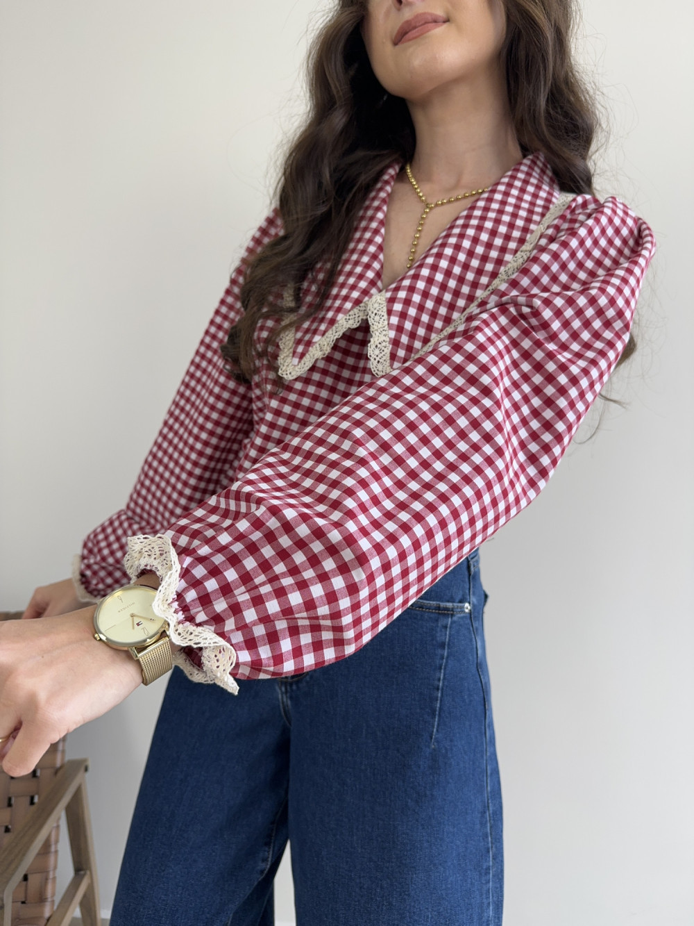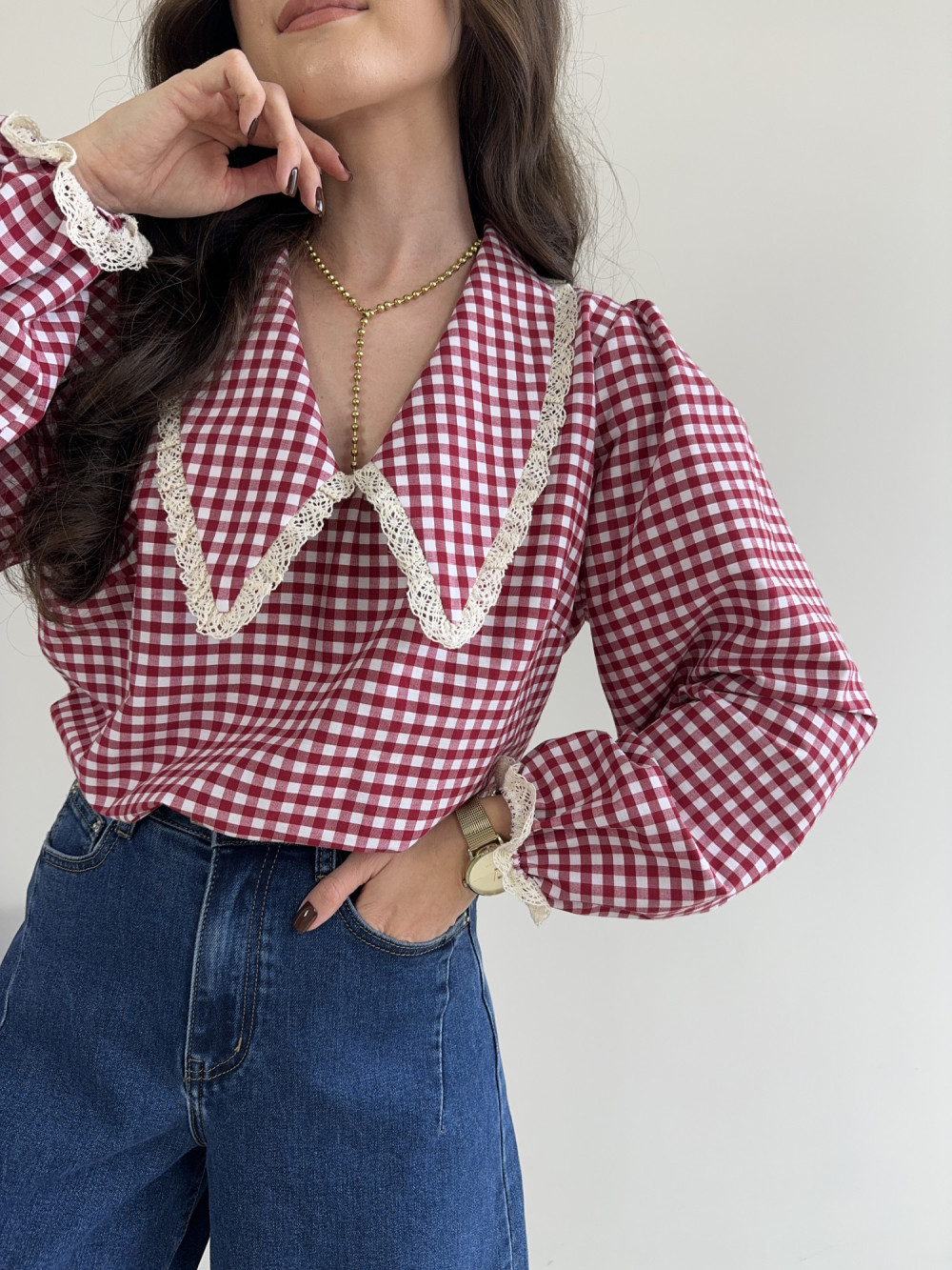 Bluzka z kołnierzykiem w czerwoną kratkę 70% bawełna CLARA