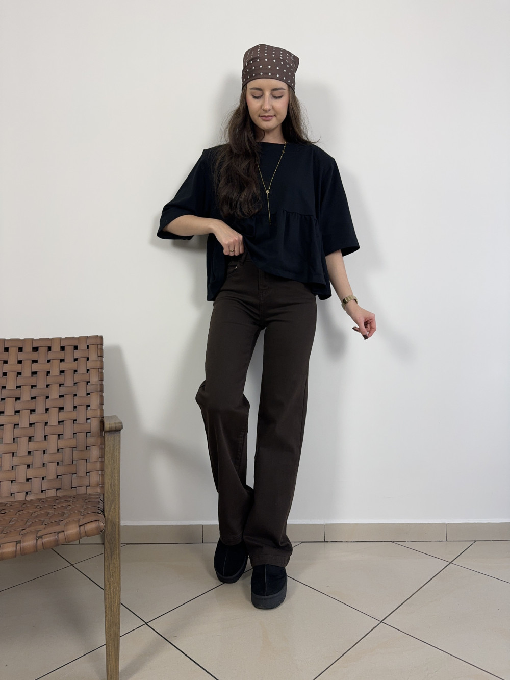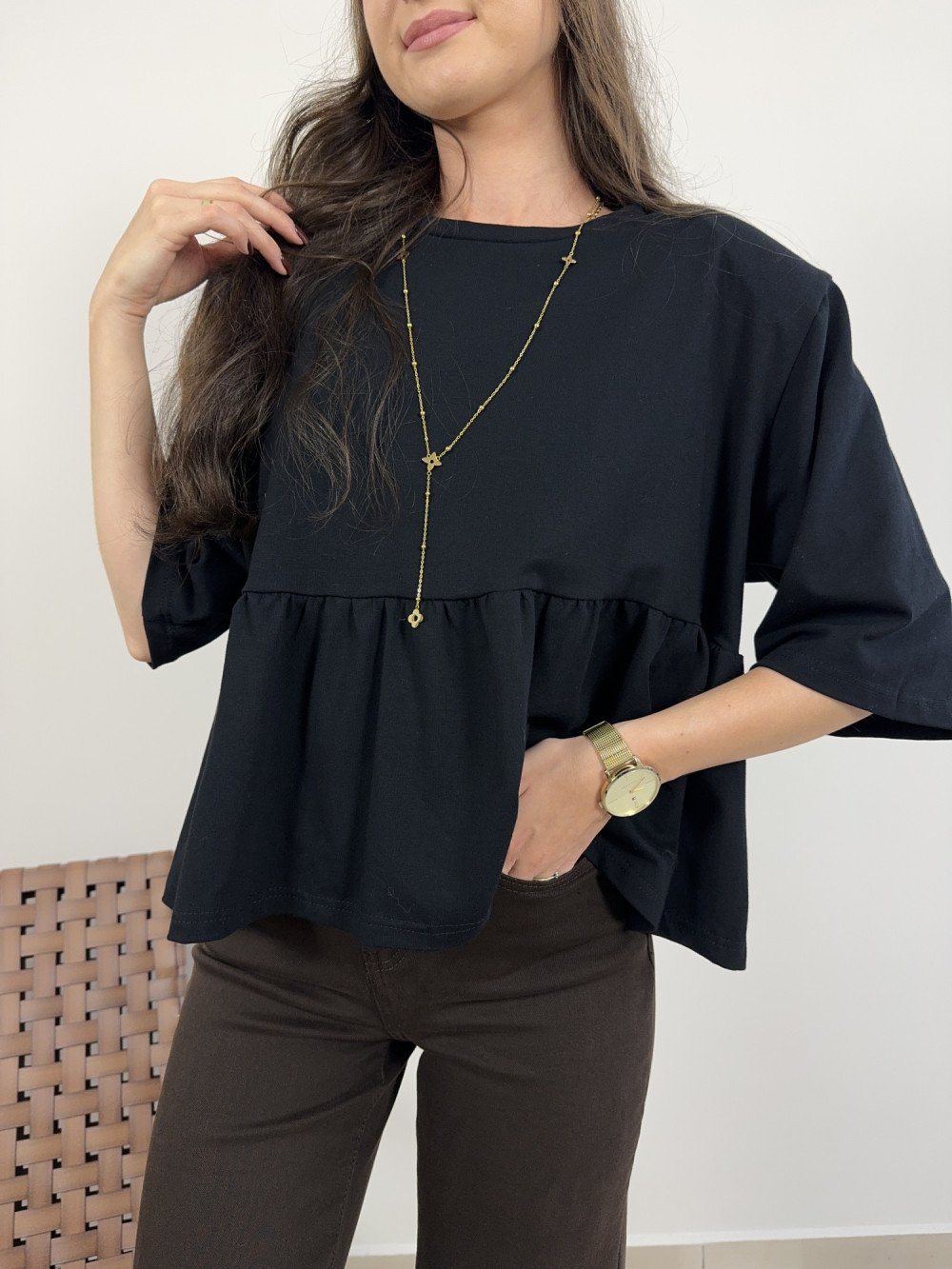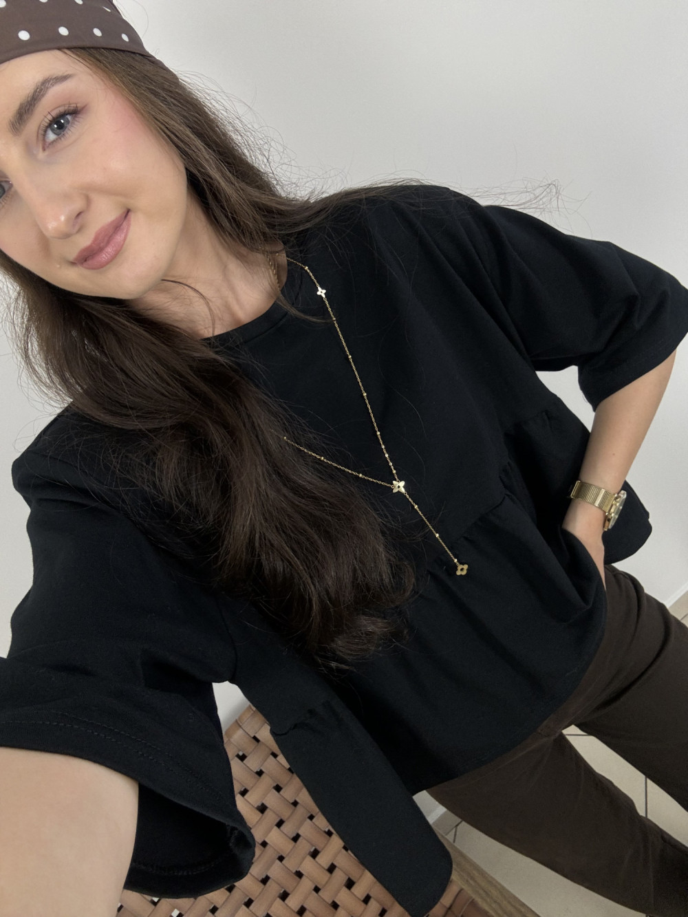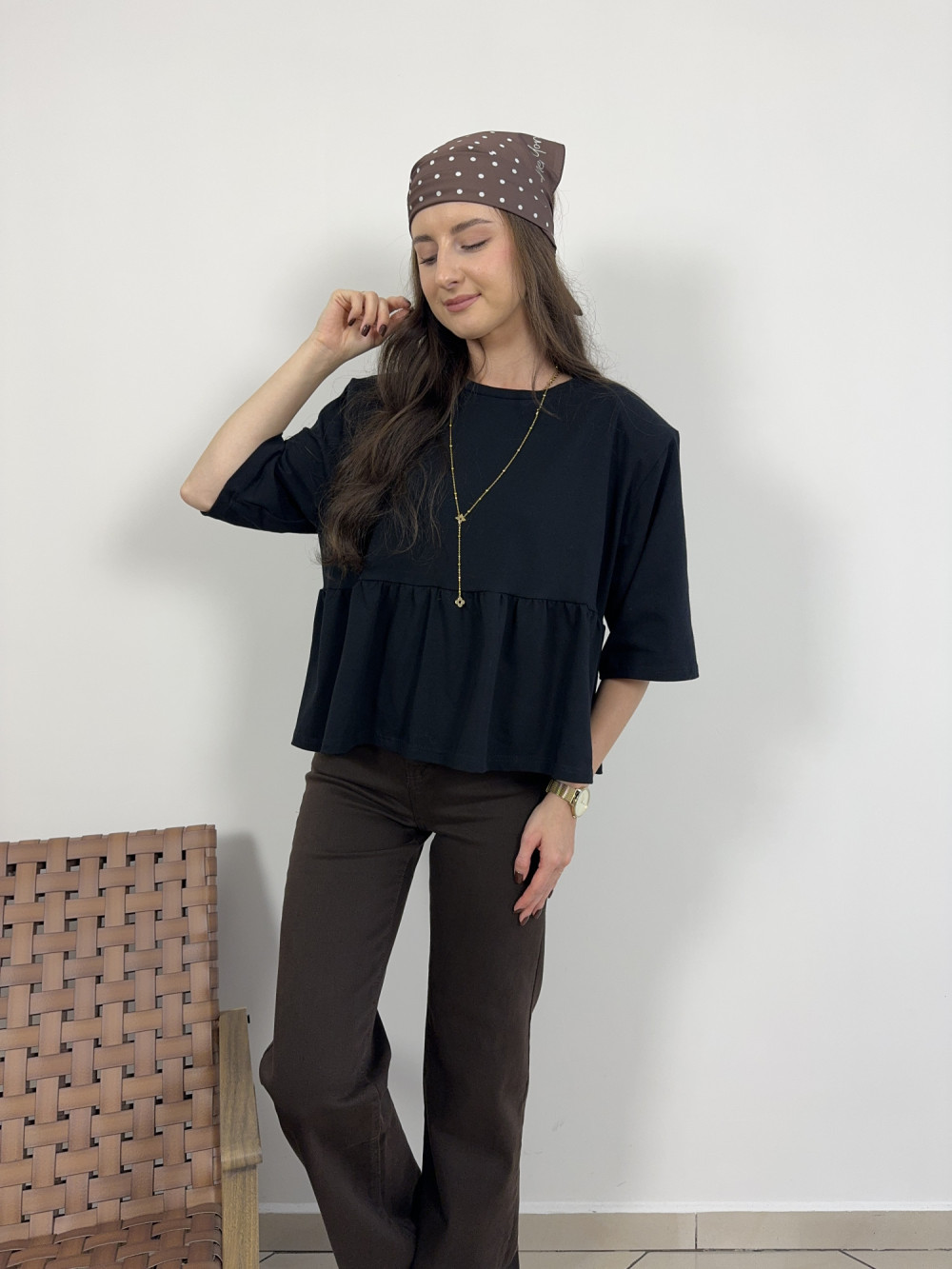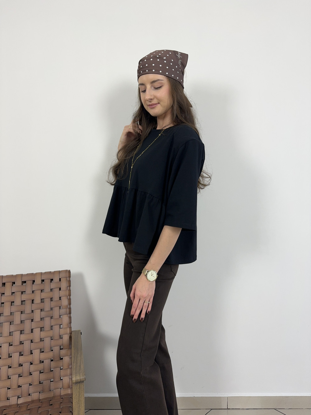 Bluzka bawełniana z baskinką i poduszkami czarna MIRA
