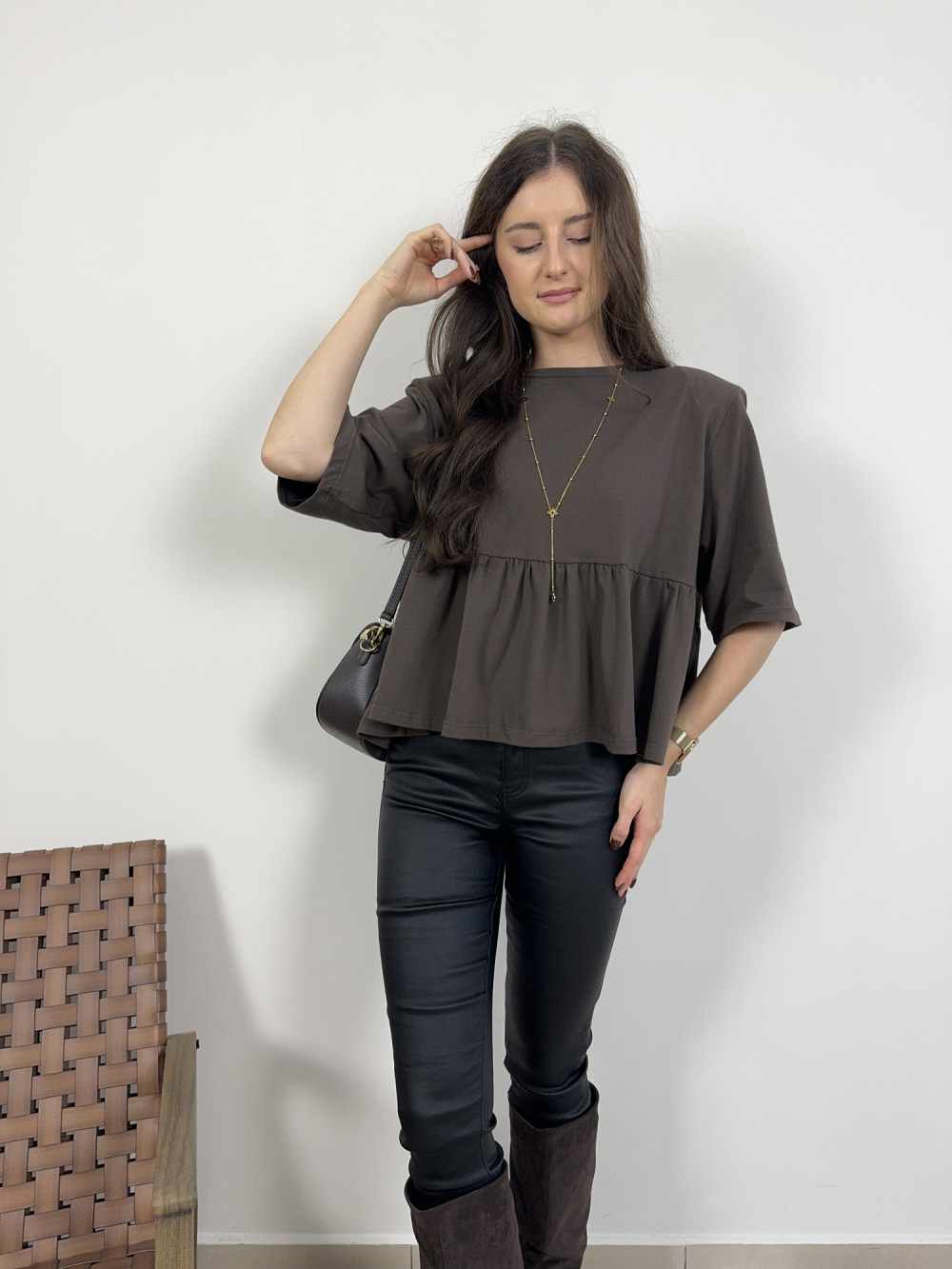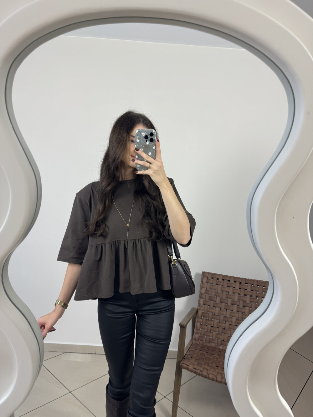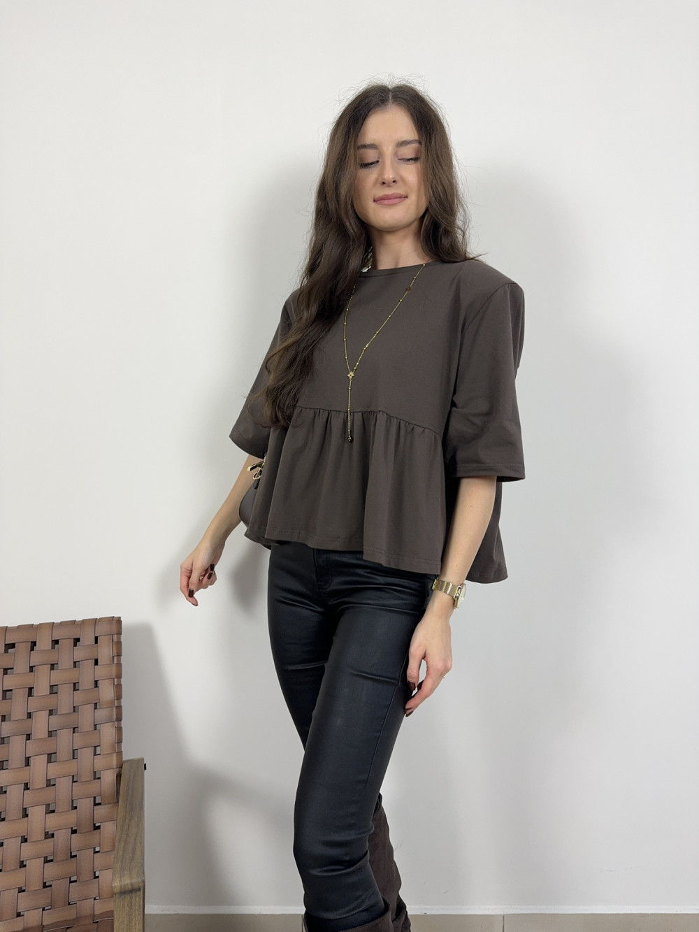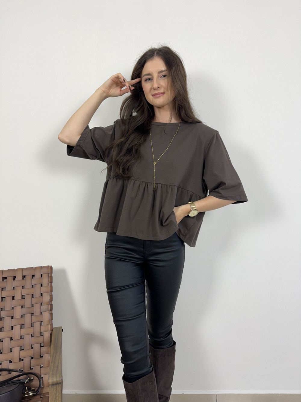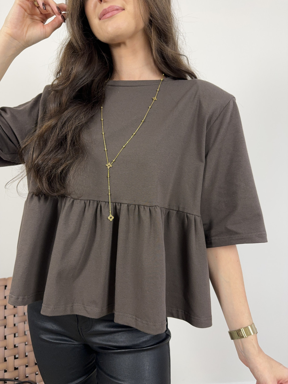 Bluzka bawełniana z baskinką i poduszkami czekoladowa MIRA