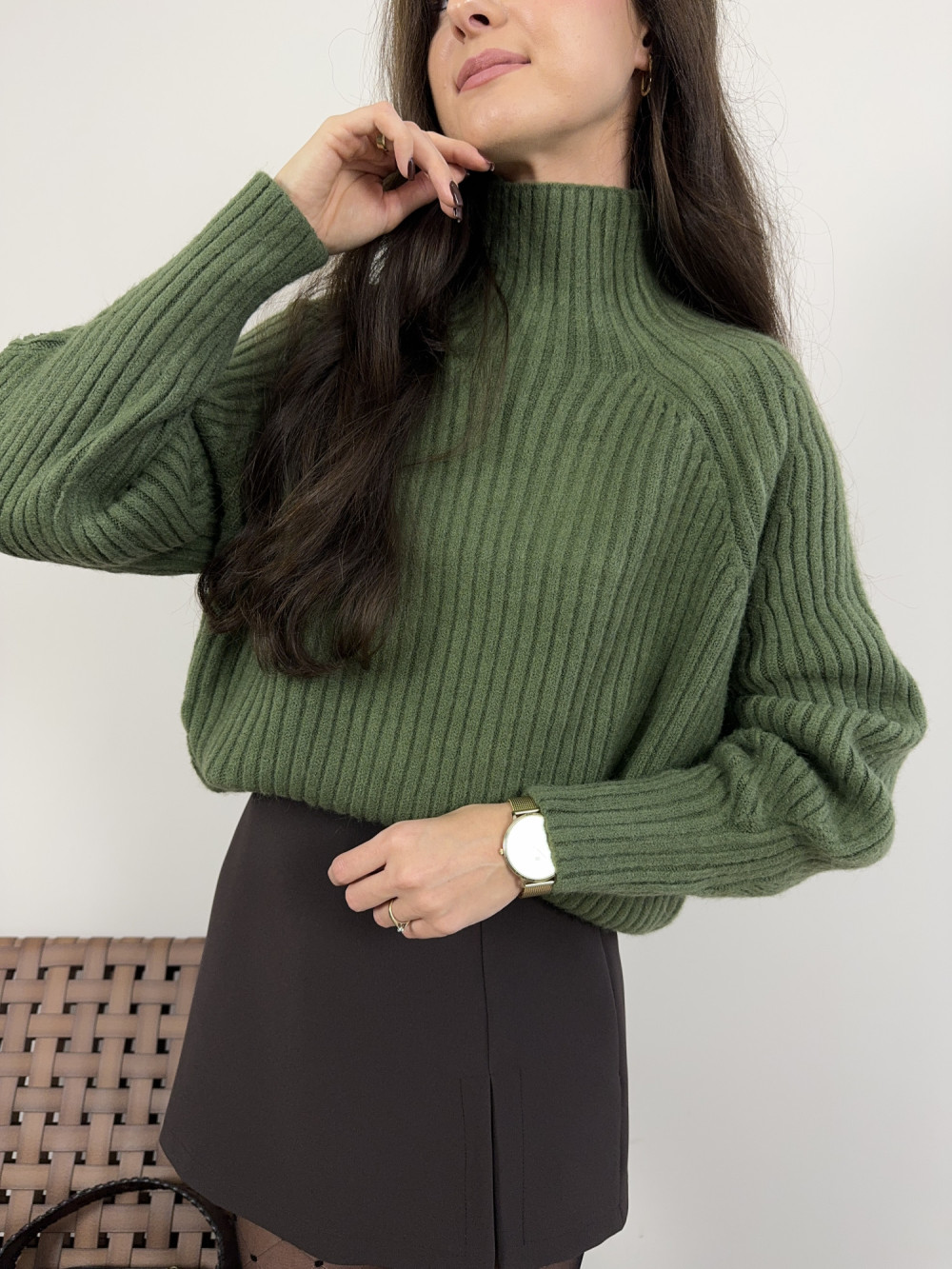 Sweter oversize w gruby prążek zielony 50% wiskoza GREEN