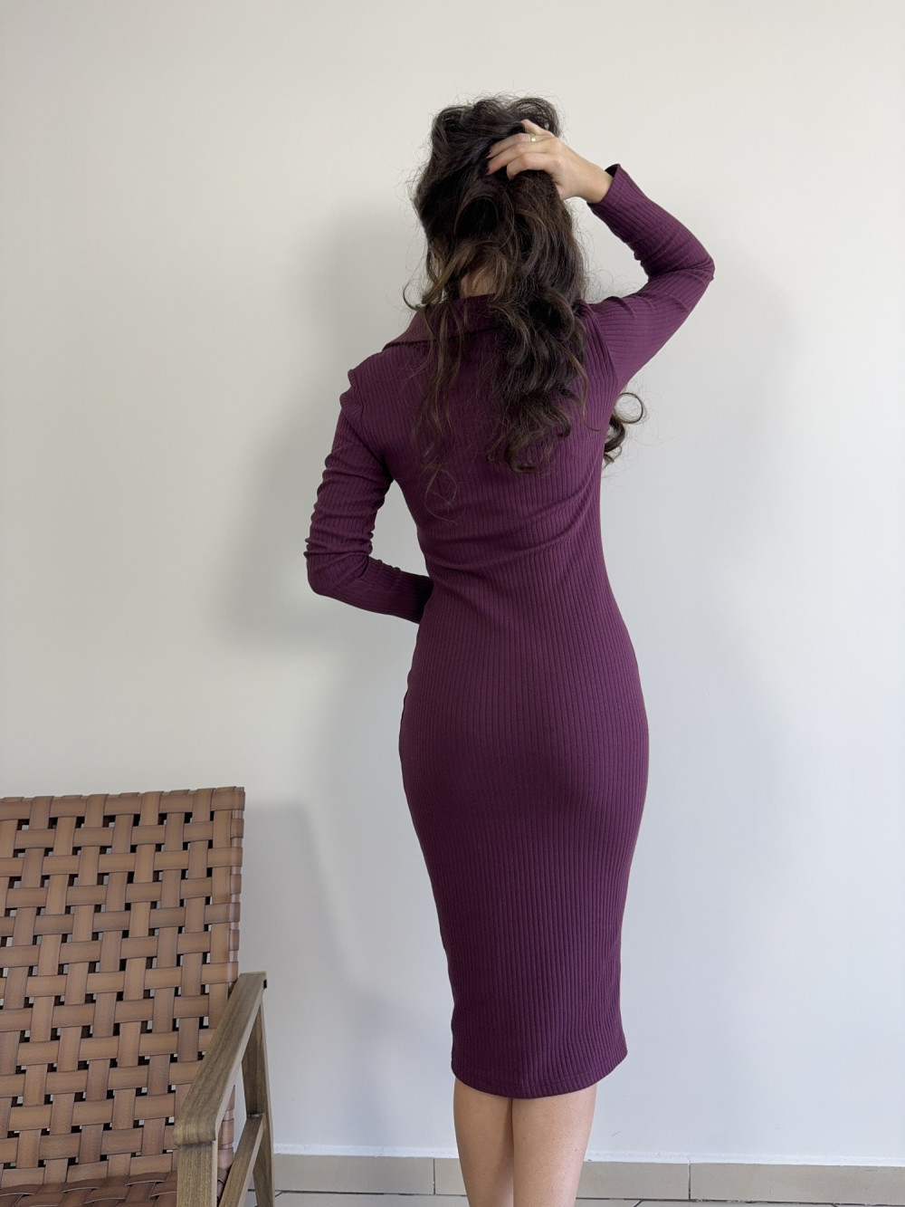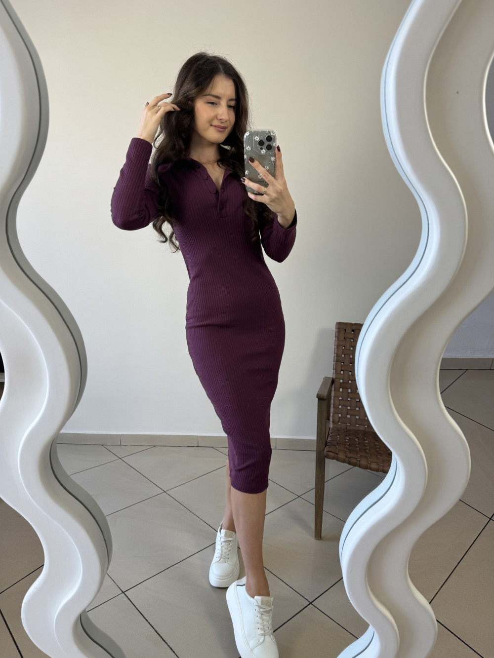 Sukienka midi o dopasowanym kroju śliwkowa OFELIA