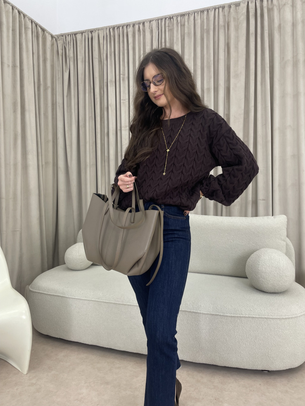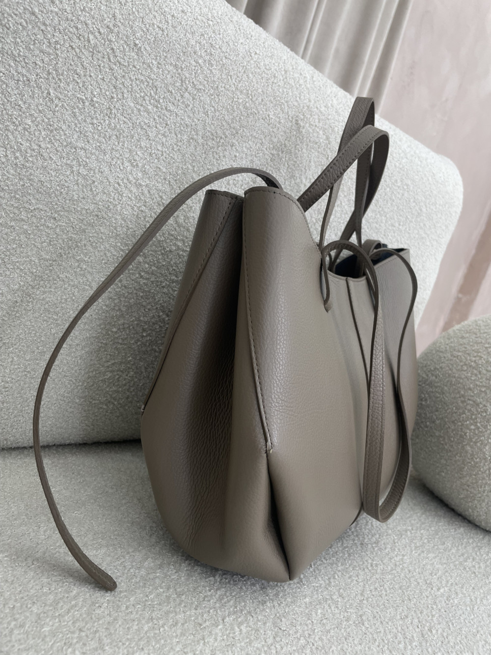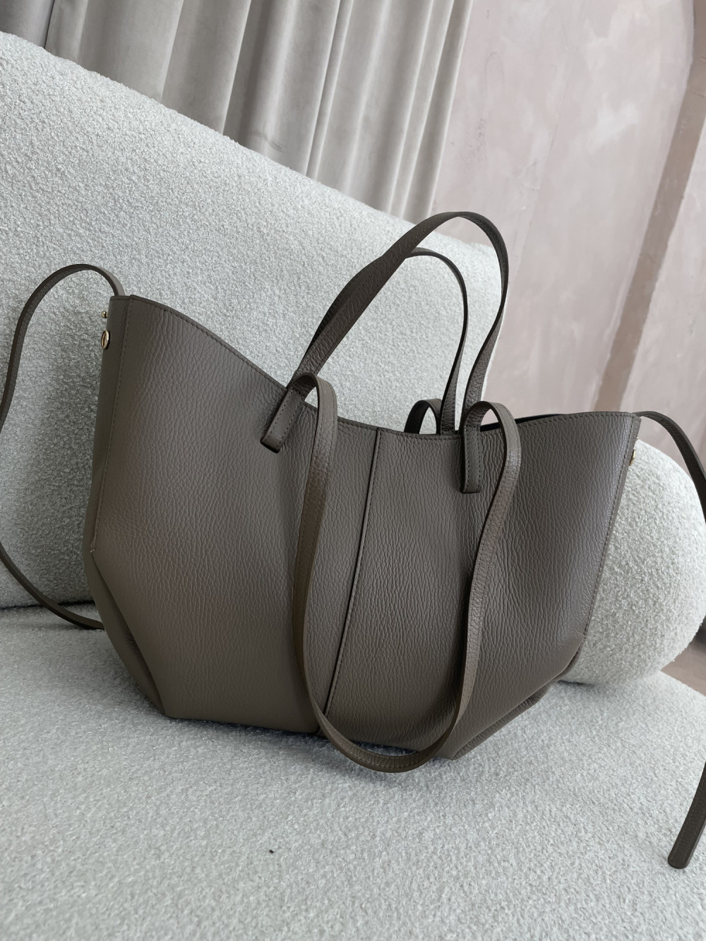 Elegancka torebka wykonana ze skóry naturalnej o pięknym, nietypowym odcieniu fango. W środku ukryto praktyczną kosmetyczkę, którą można łatwo wyjąć i zabrać osobno. Solidne rączki i dodatkowy pasek pozwalają nosić ją na różne sposoby. To ponadczasowy model, który łączy klasykę z funkcjonalnością.