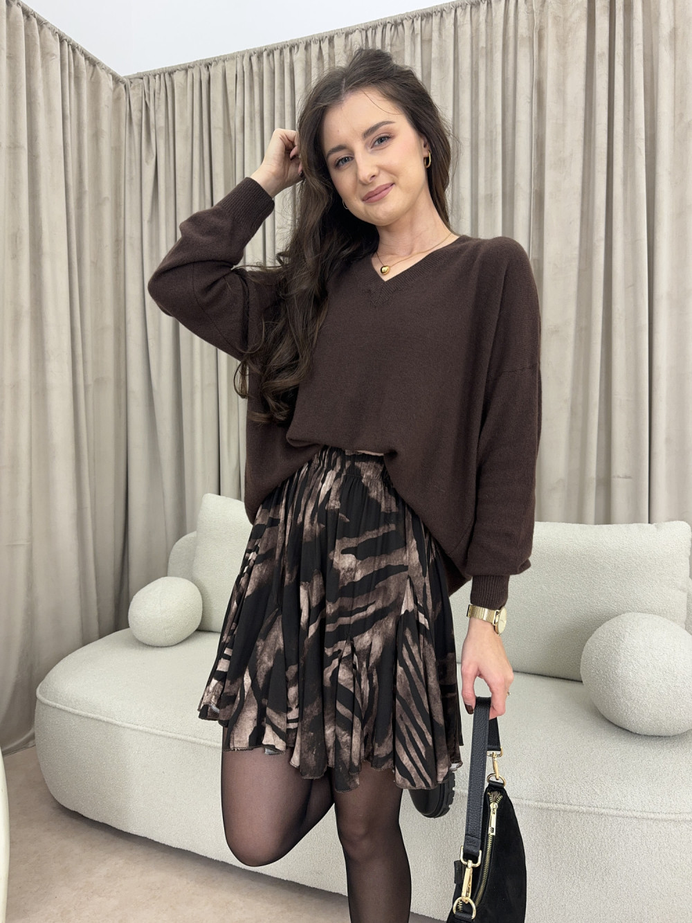 Spódniczka wiskozowa w czekoladowe wzory LEA