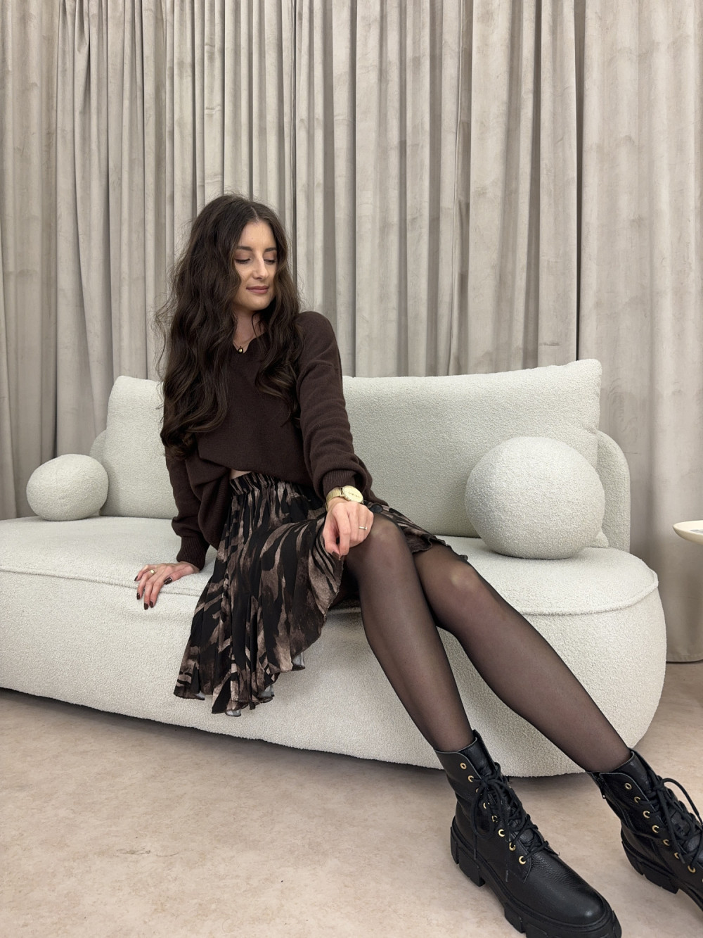 Filmik z produktem i dokładną prezentacją na osobie jest dostępny na naszym Instagramie - szykovnybutik, w wyróżnionej relacji "23.10.2025"