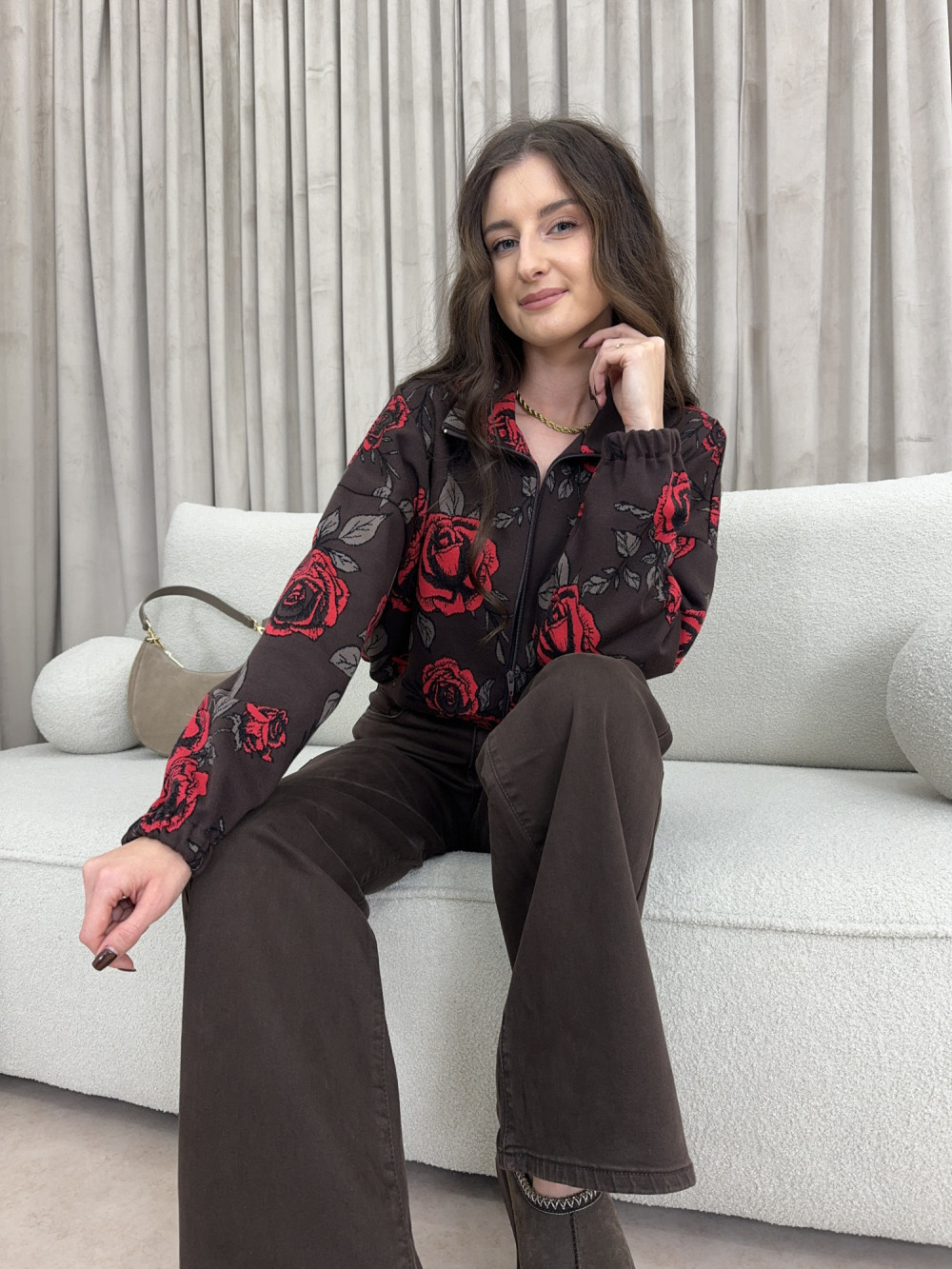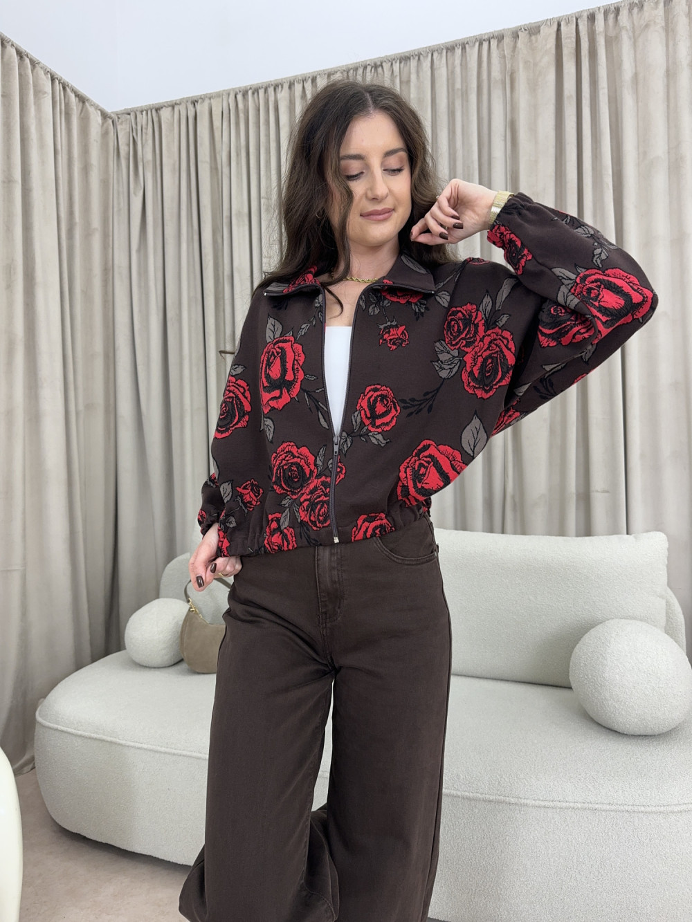 Bluza rozpinana w kwiaty czekoladowa 100% bawełna ROSALIA