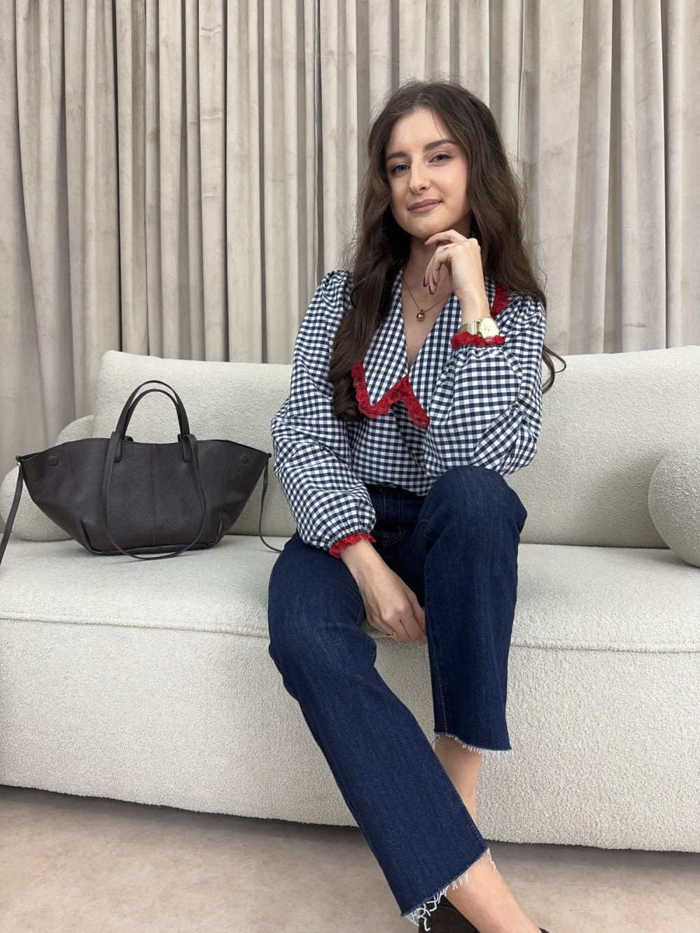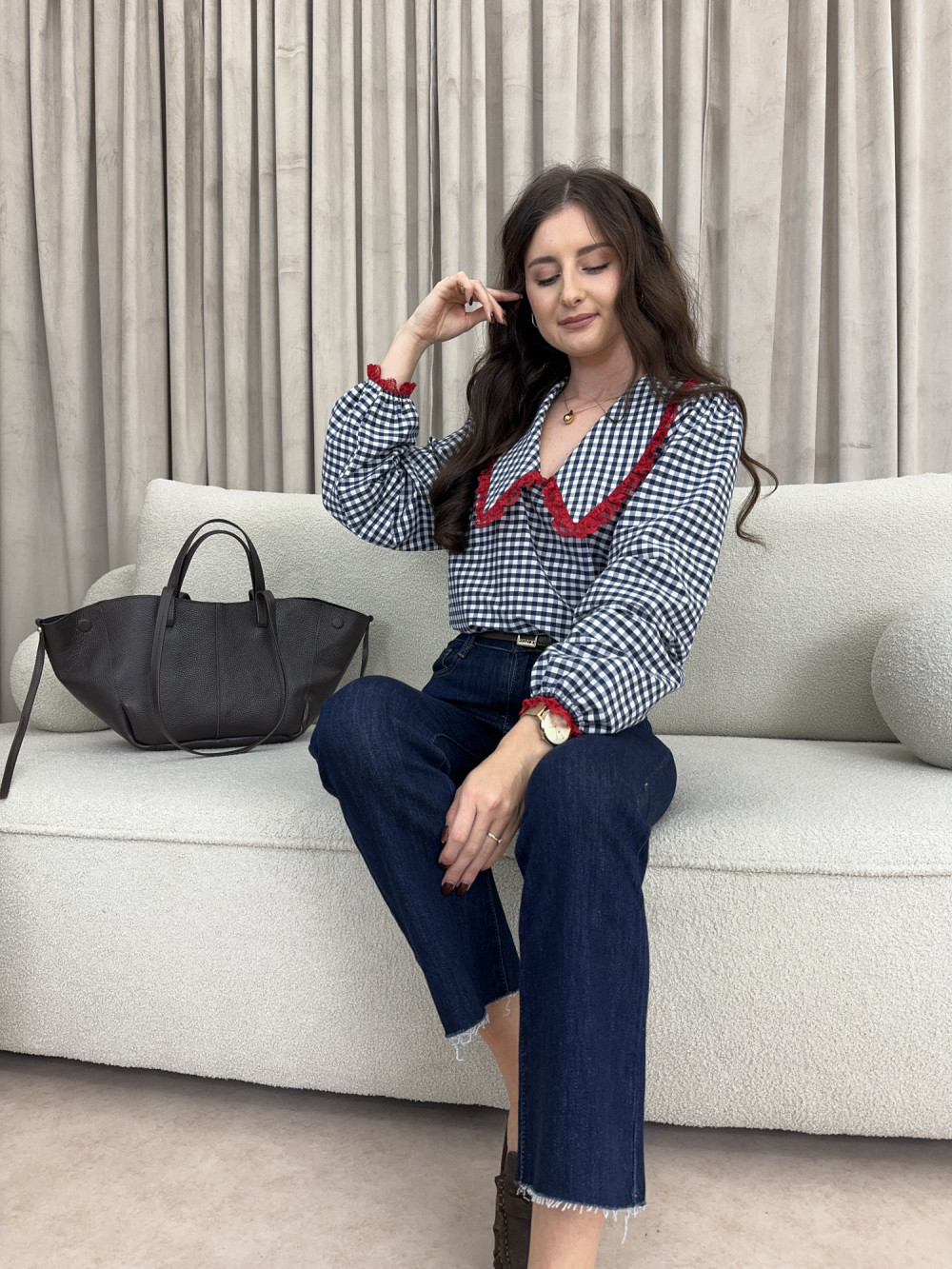 Bluzka z kołnierzykiem w granatową kratkę 70% bawełna CLARA