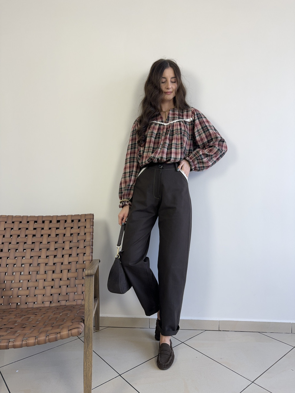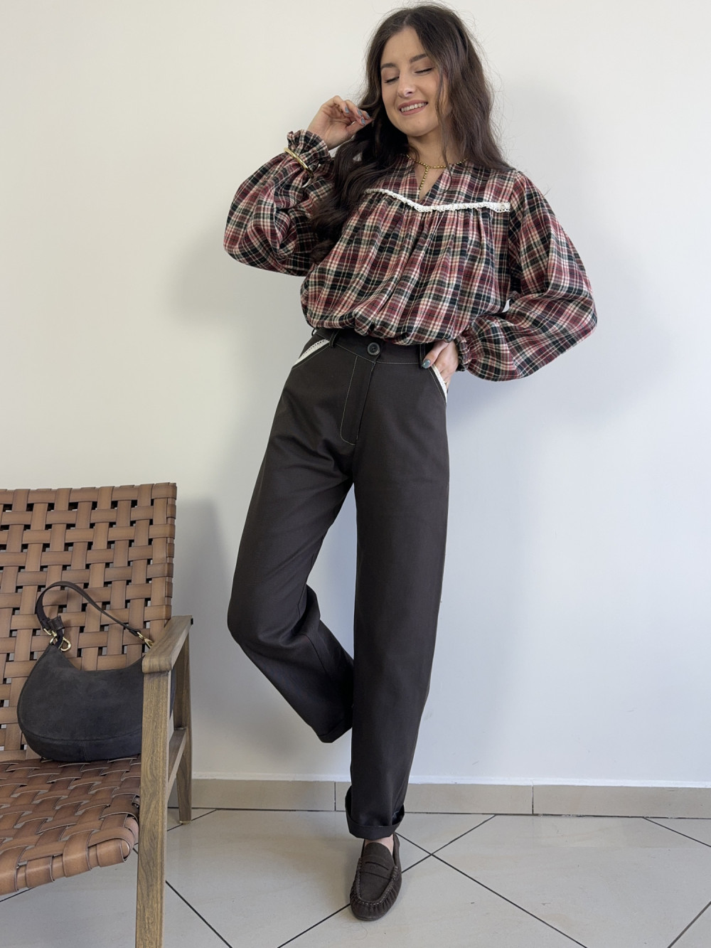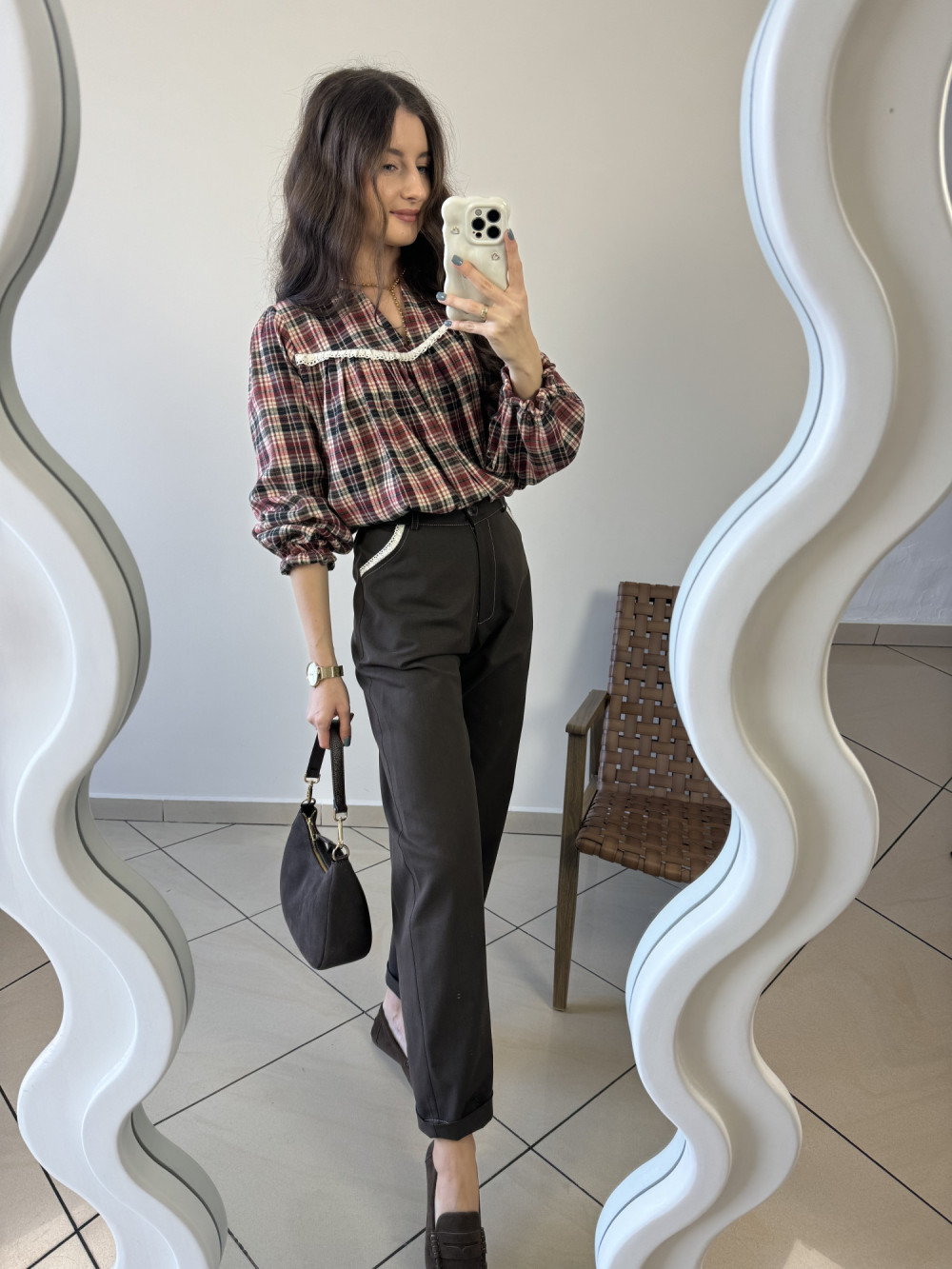 Czekoladowe spodnie z prostą, lekko luźną nogawką, uszyte z połączenia wiskozy i bawełny. To polska produkcja — starannie odszyte, miękkie w dotyku i bardzo wygodne. Wysoki stan pięknie podkreśla talię, a materiał trzyma formę bez efektu sztywności. Idealne na co dzień, ale sprawdzą się też w eleganckich stylizacjach.