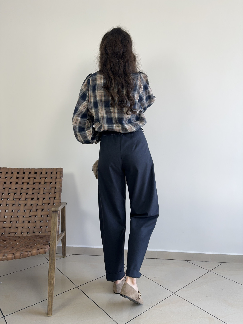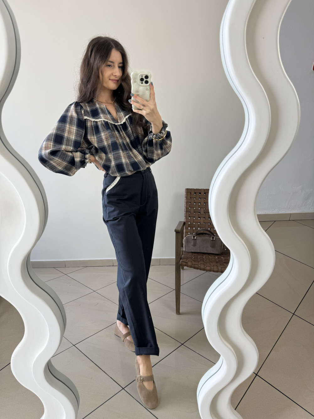 Spodnie mom fit granatowe bawełna i wiskoza COSETTE