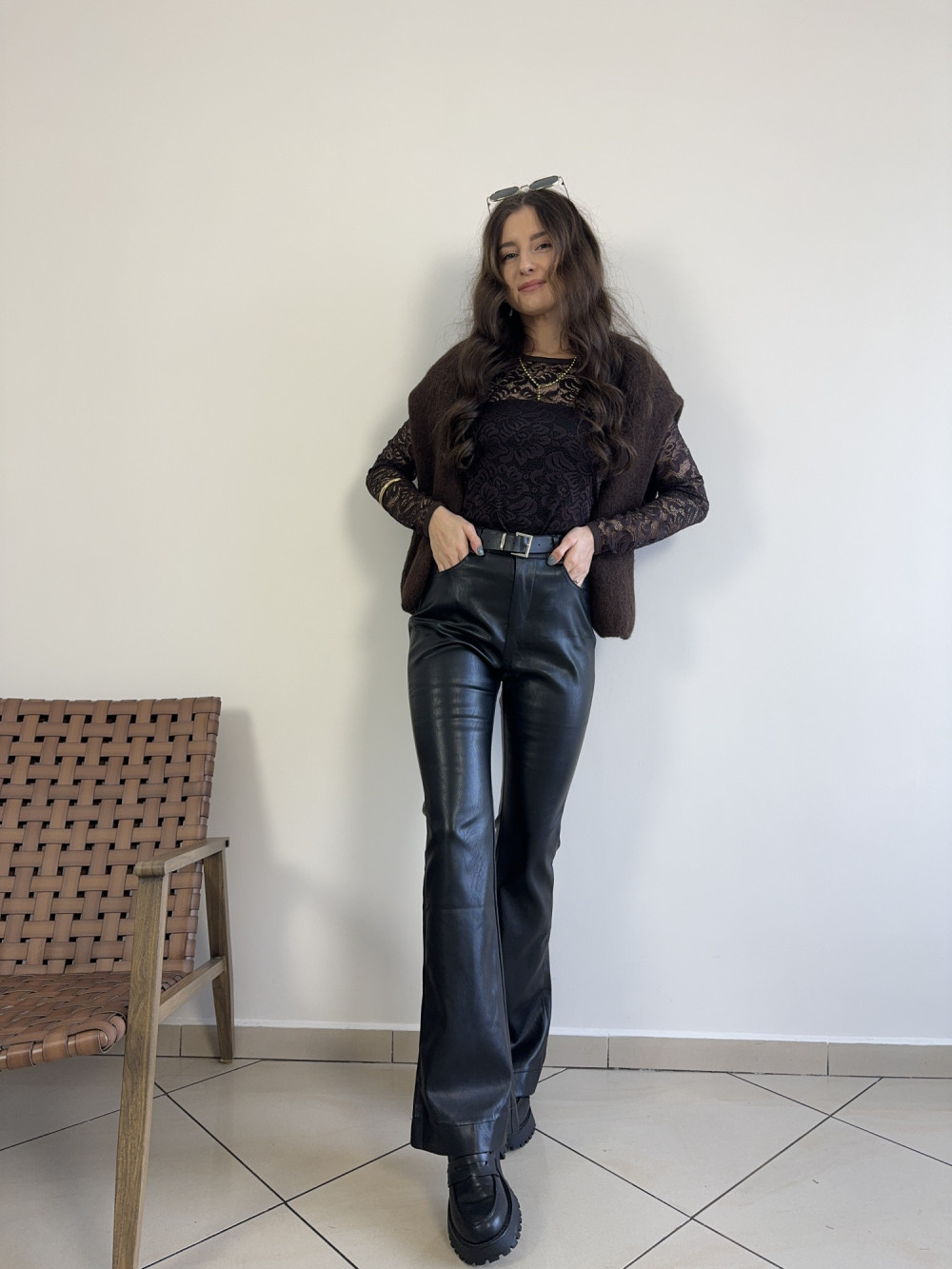Spodnie z ekoskóry dzwony z paskiem LANOS