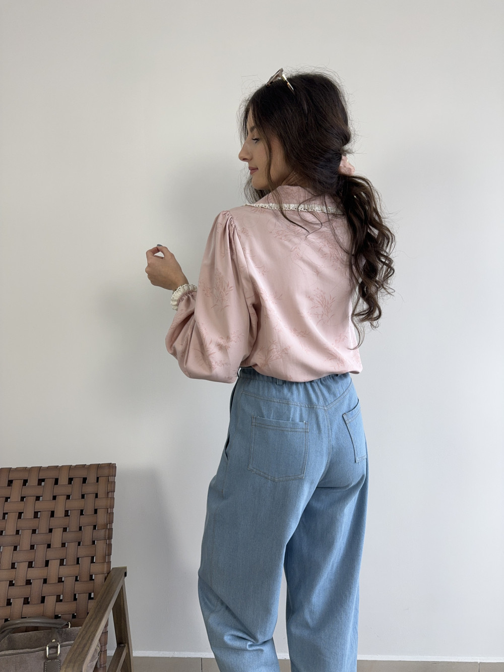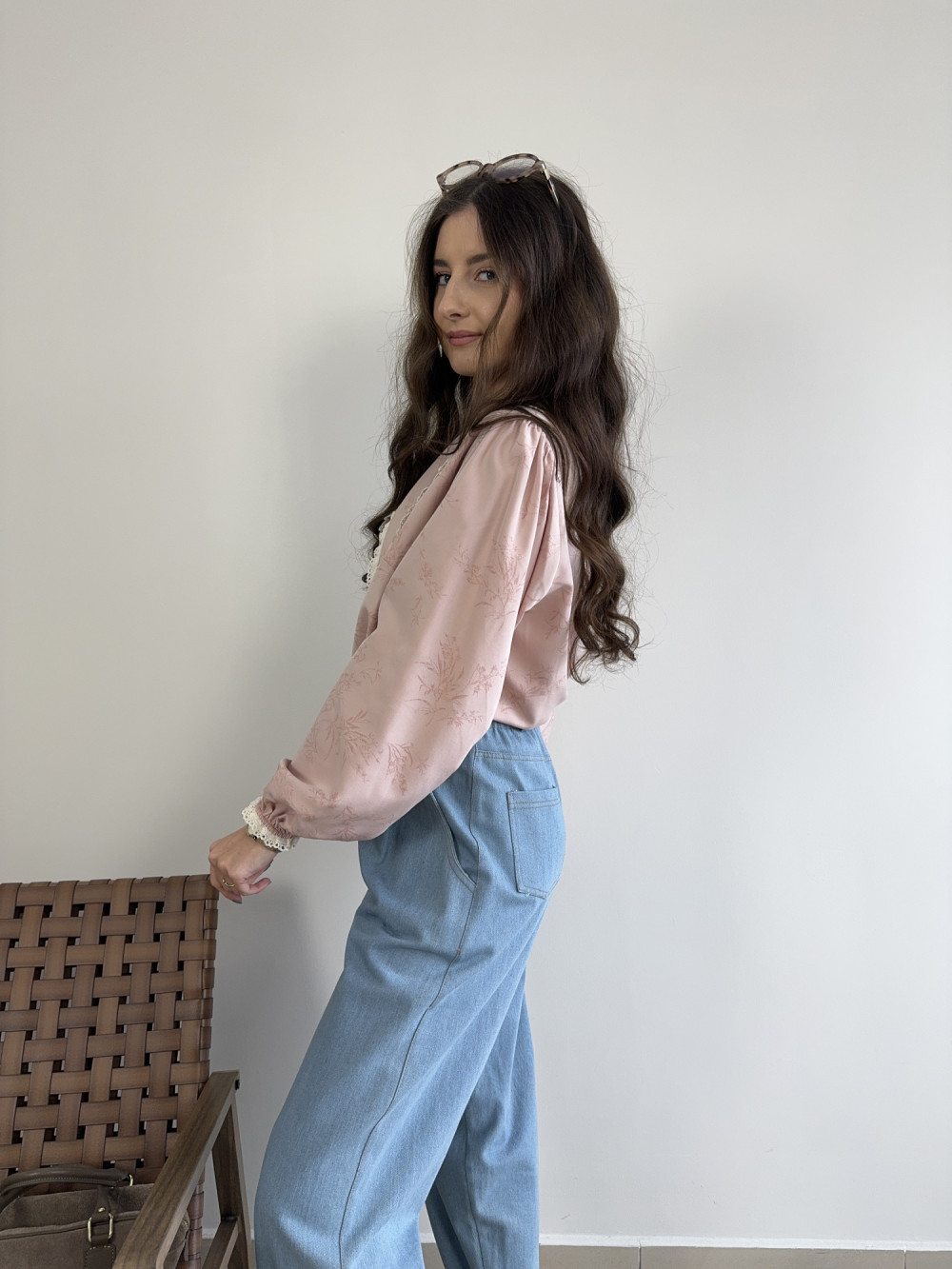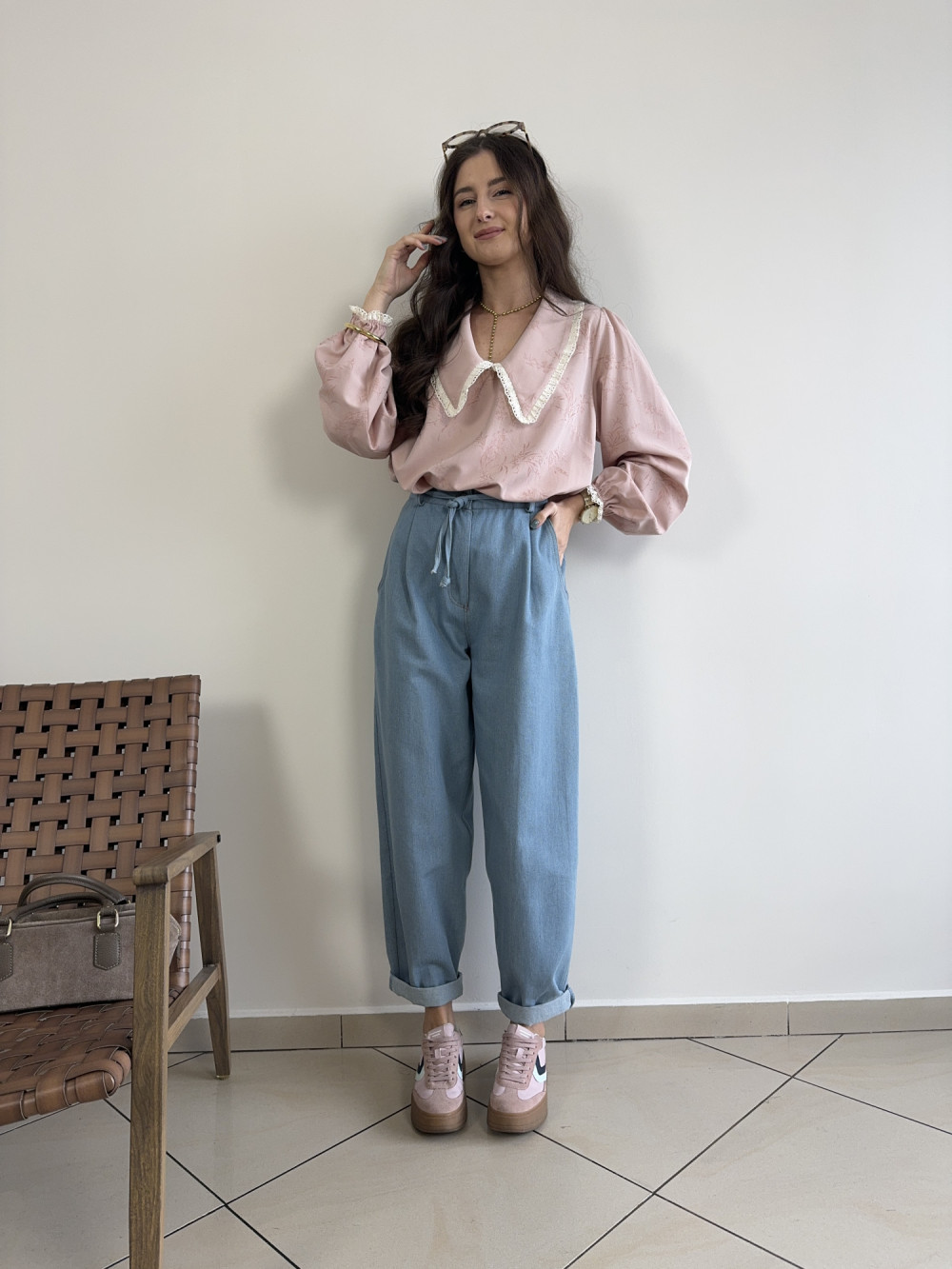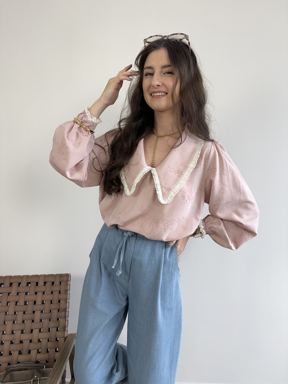 Bluzka z kołnierzykiem jasnoróżowa 100% wiskoza CLARA
