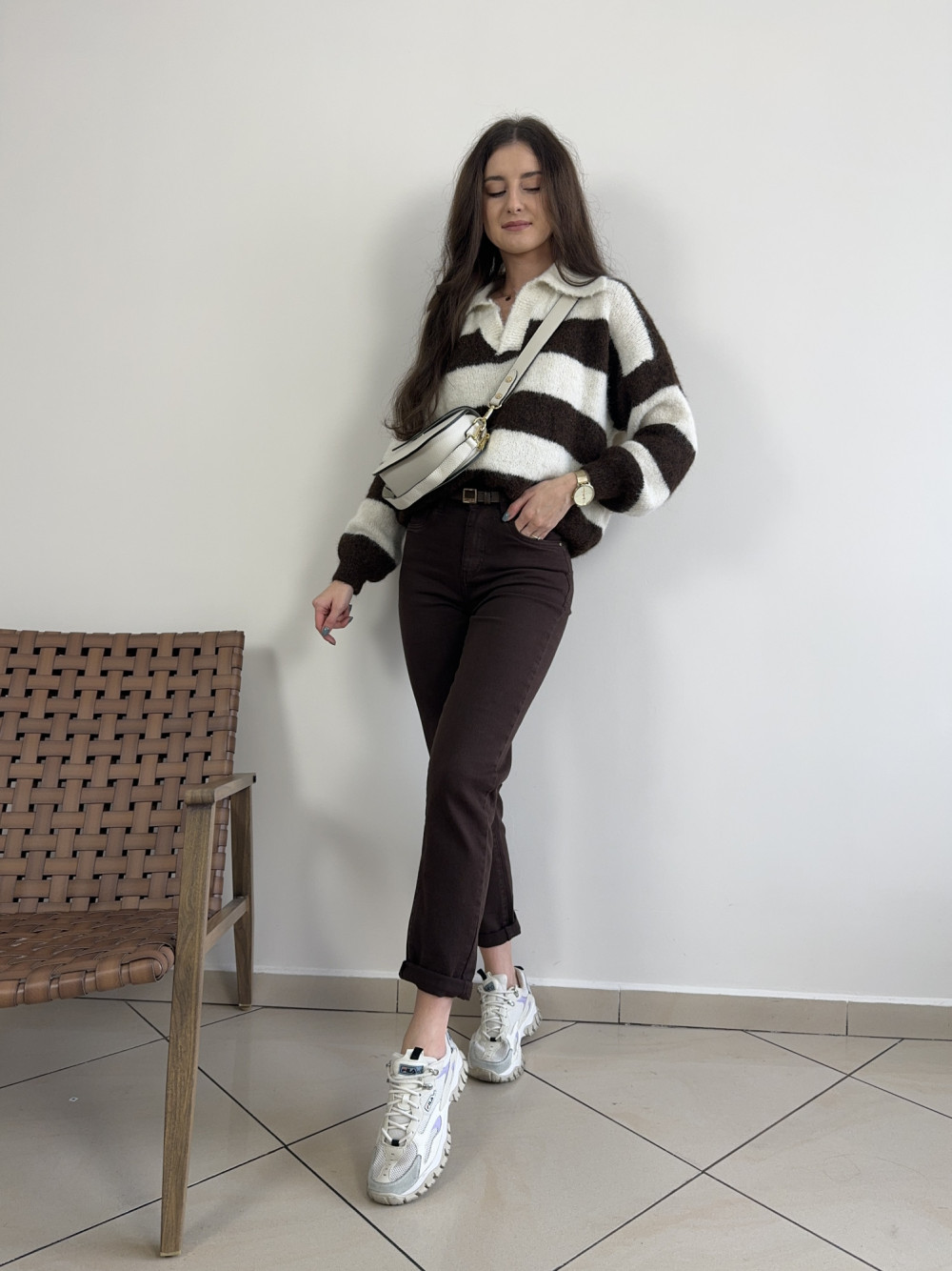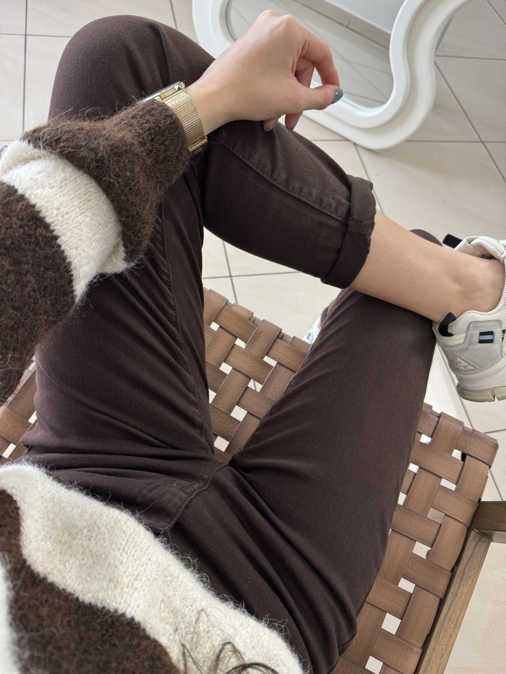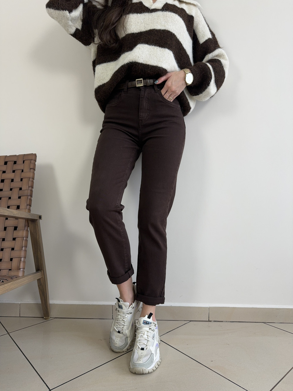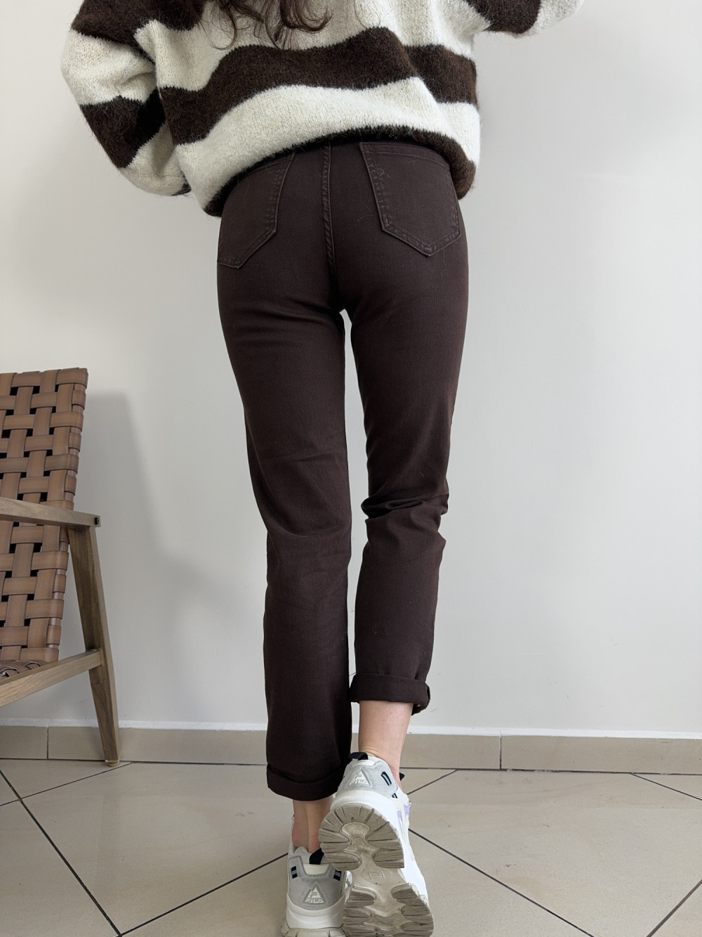 Spodnie mom fit czekoladowe z wysokim stanem HIGH
