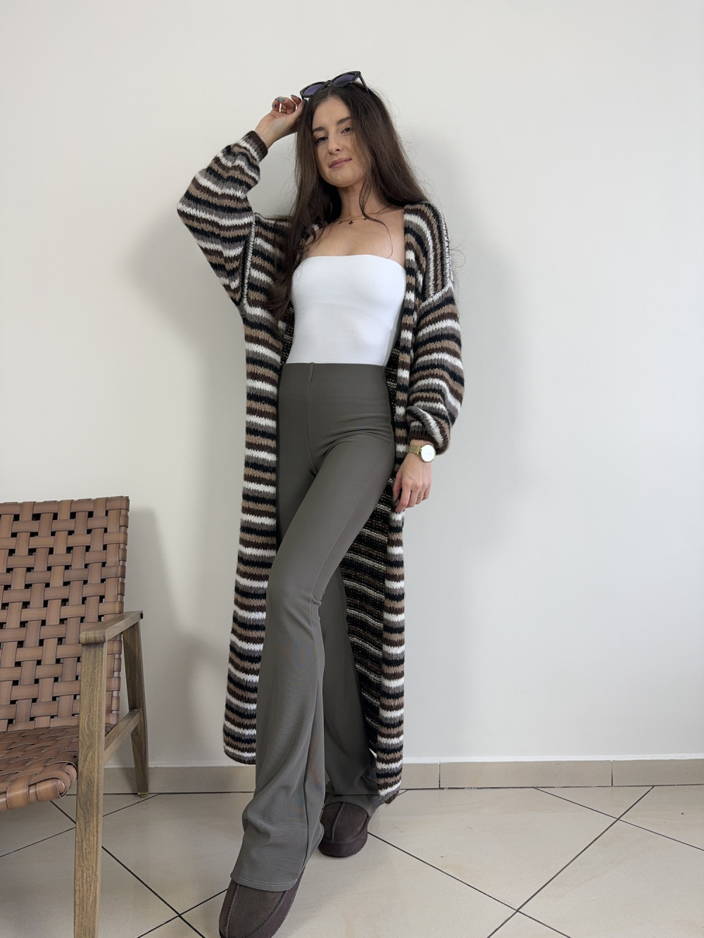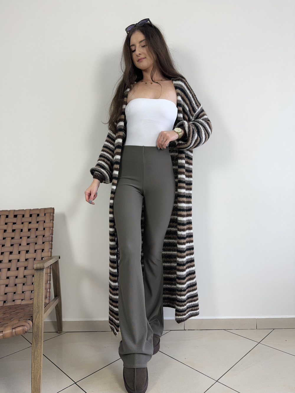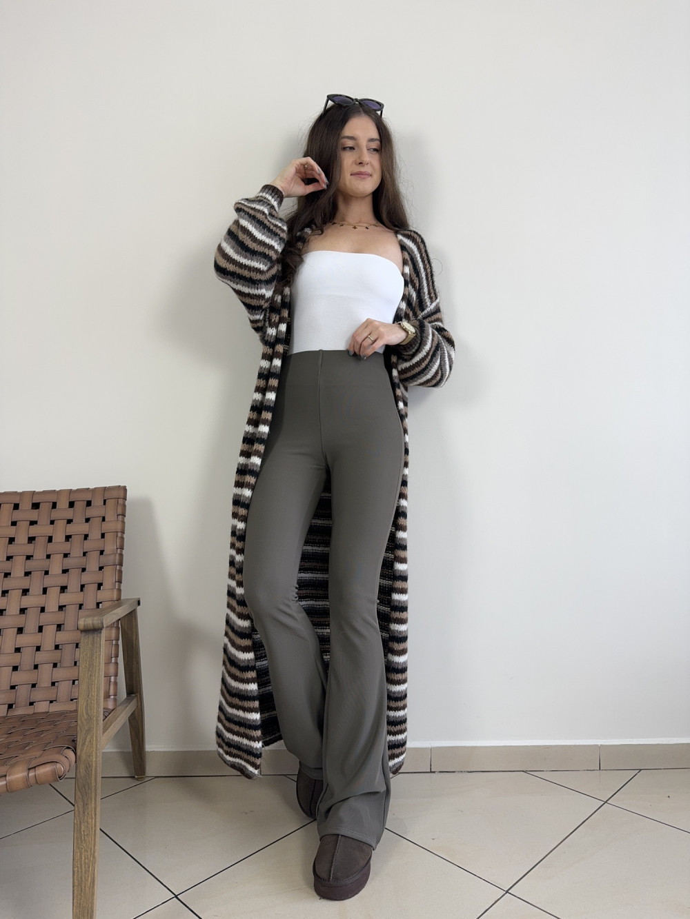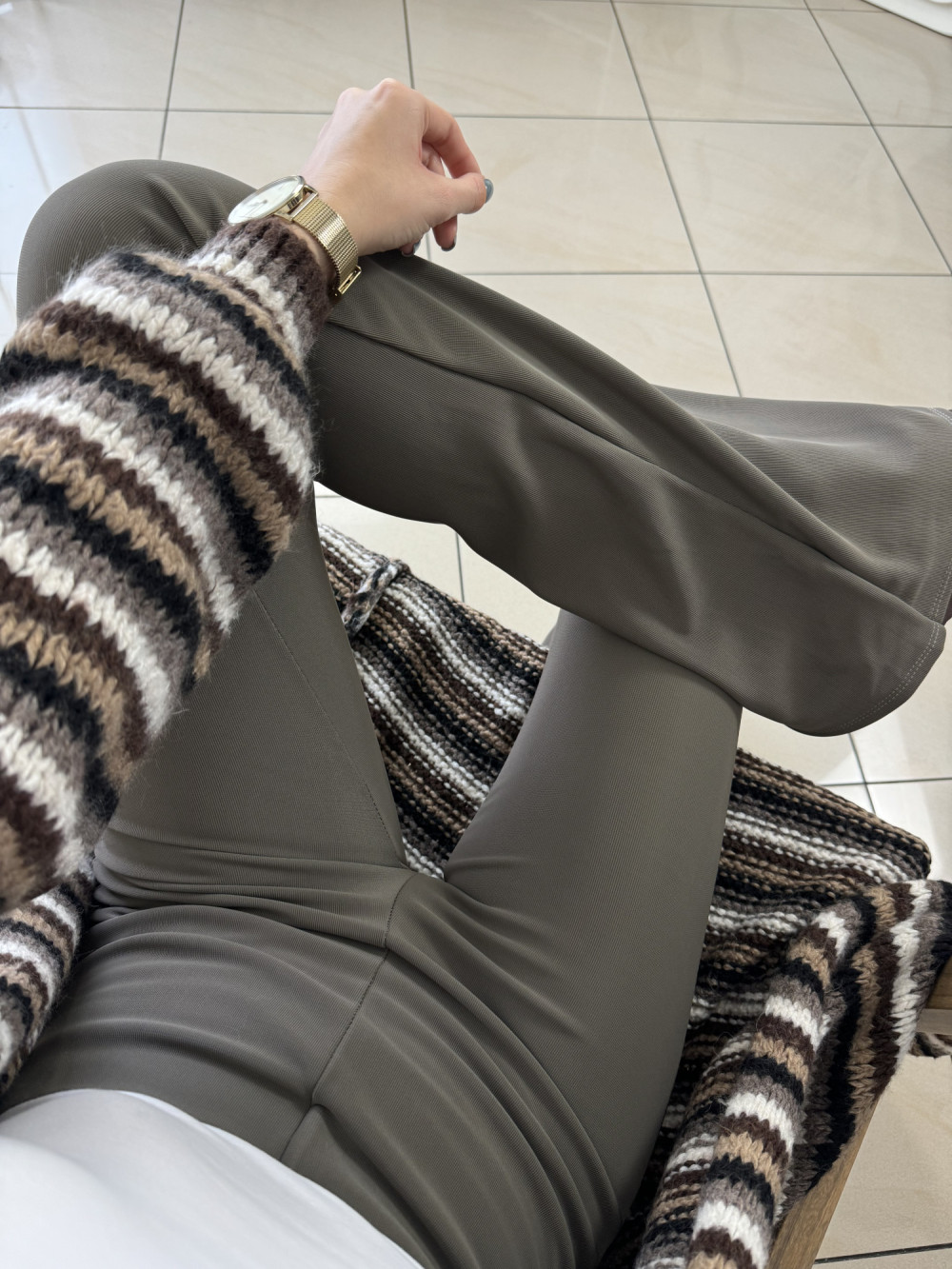 Legginsy z rozszerzanymi nogawkami dzwony khaki TIMO
