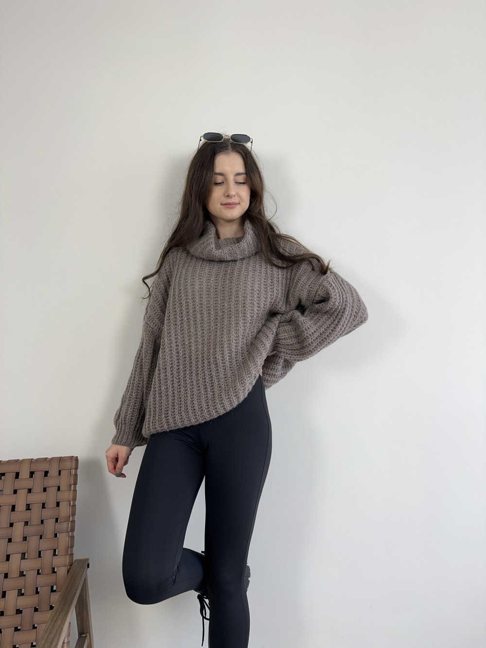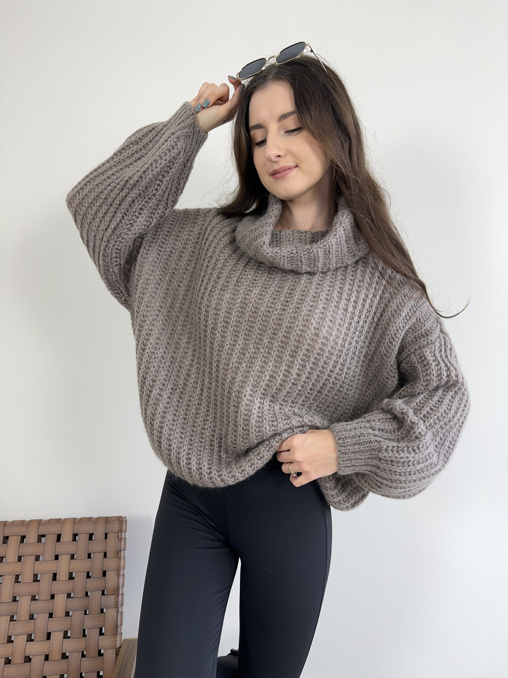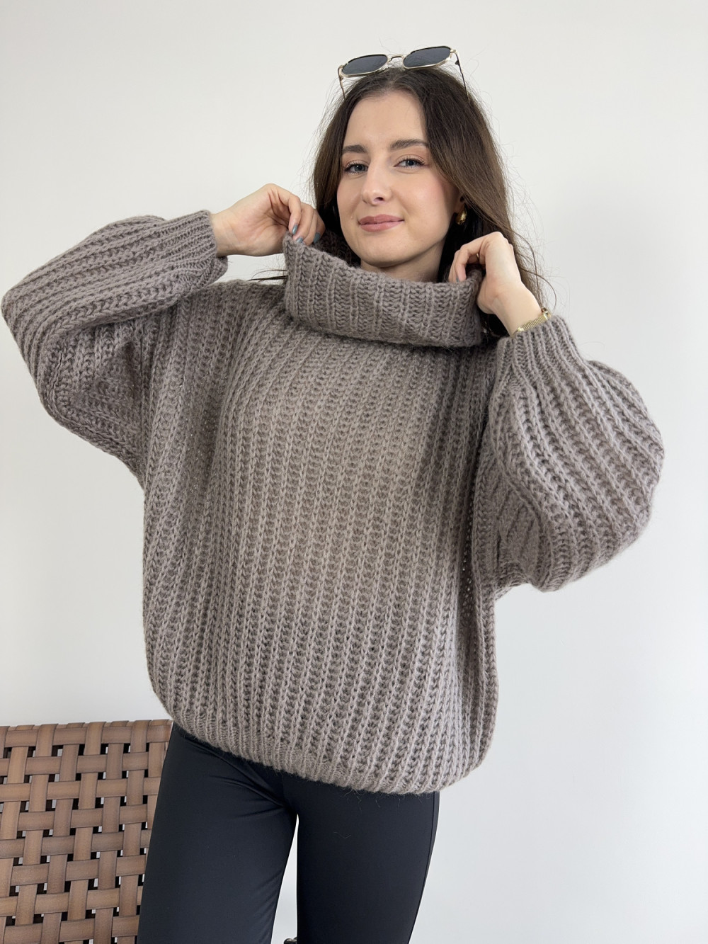 Miękki, puszysty i otulający — ten sweter to kwintesencja wygody i elegancji w jednym. W składzie znajdziesz aż 30% kid moheru, dzięki czemu jest lekki i ma delikatny, luksusowy charakter. Luźniejszy krój sprawia, że pięknie układa się na sylwetce, a szeroki golf dodaje mu nonszalancji. Idealny do jeansów, spódnicy czy spodni z wysokim stanem — po prostu klasyka premium.