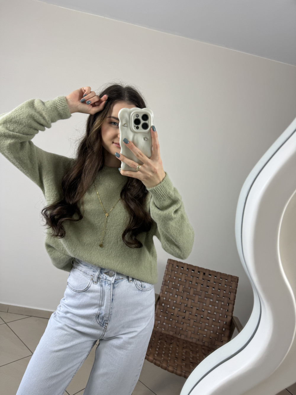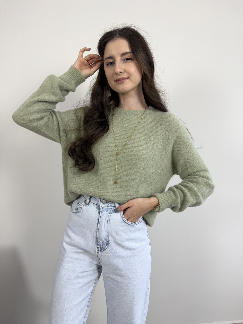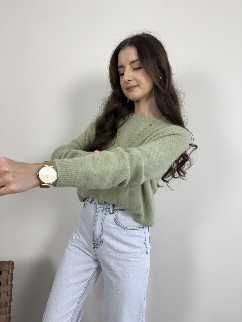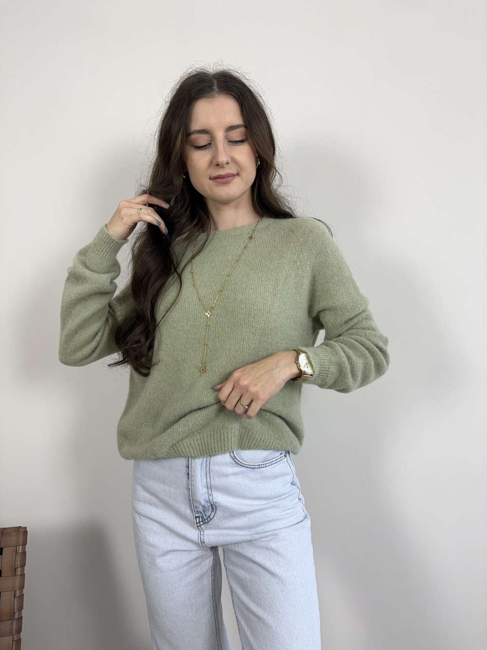 Sweter pistacjowy z baby alpacą i wełną HORIZON