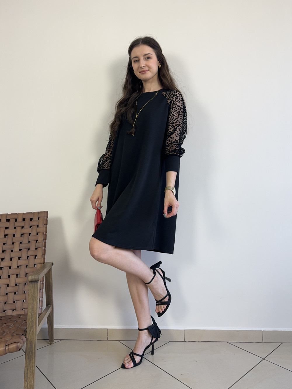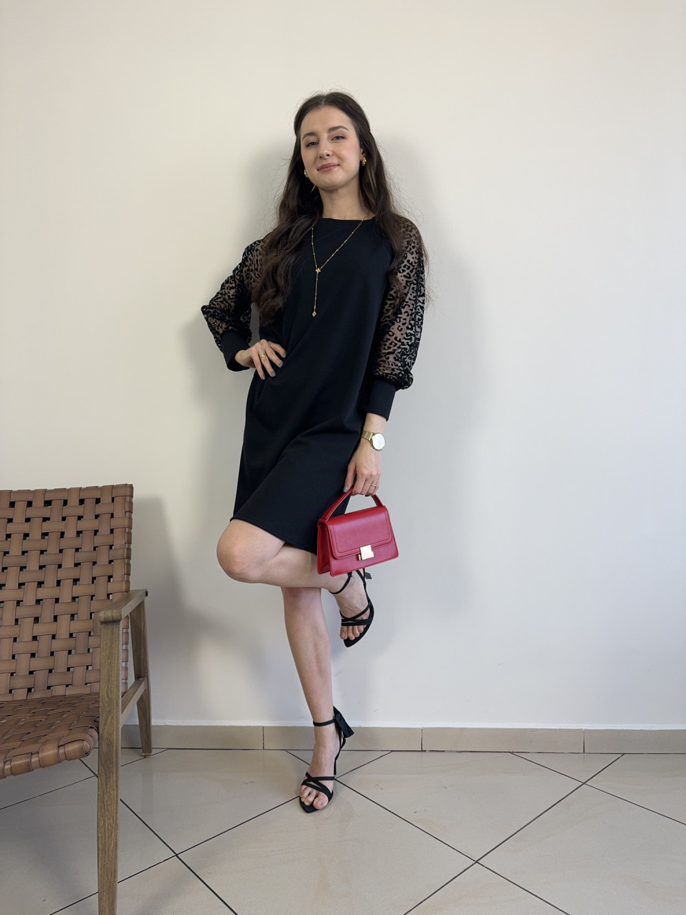 Sukienka o luźnym kroju z tiulowymi rękawami LITTLE BLACK