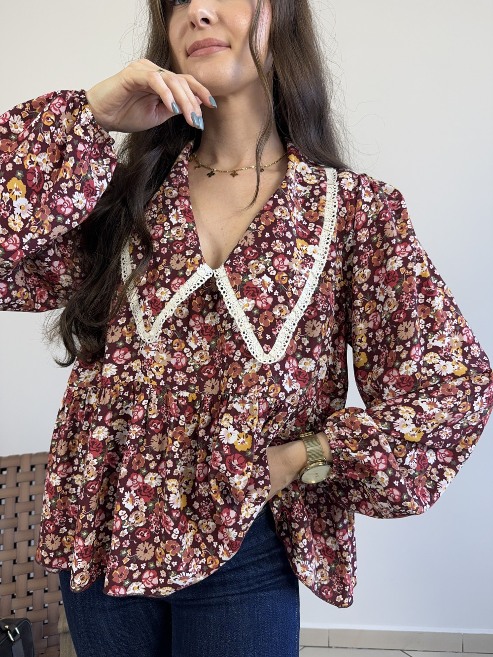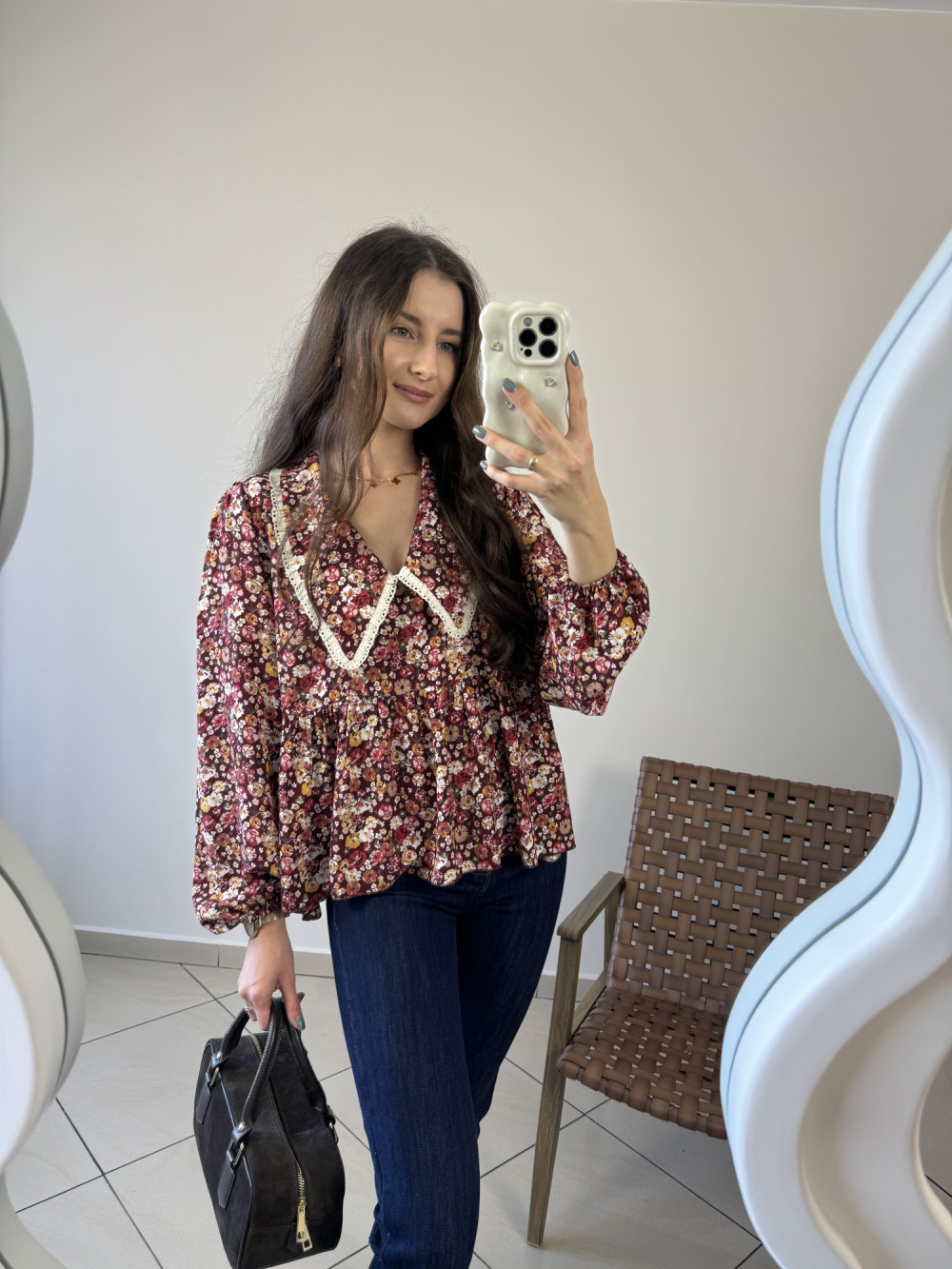 Bluzka z kołnierzykiem w kwiaty 100% wiskoza PERFECT DAY