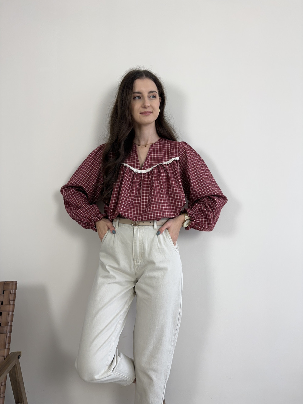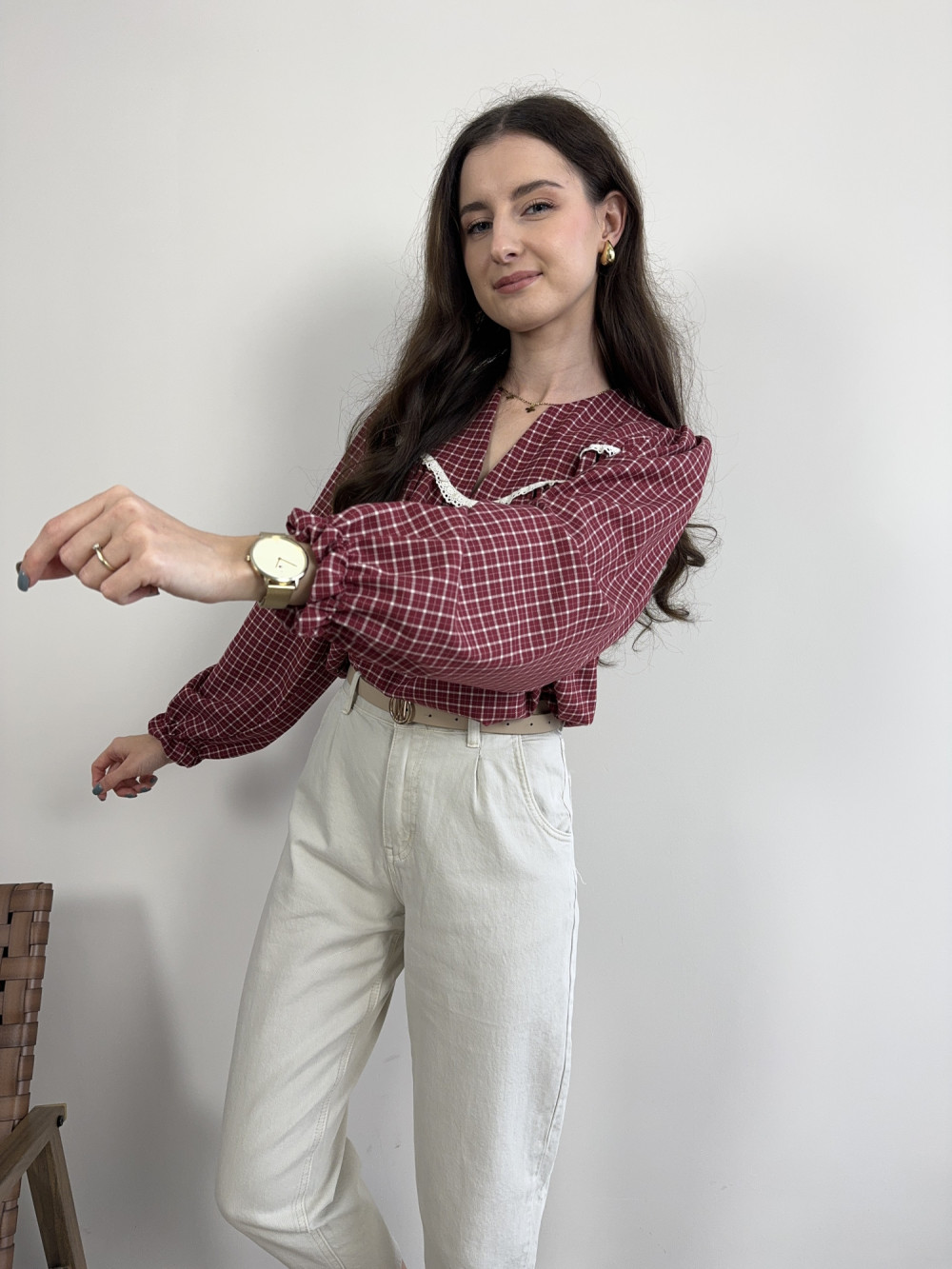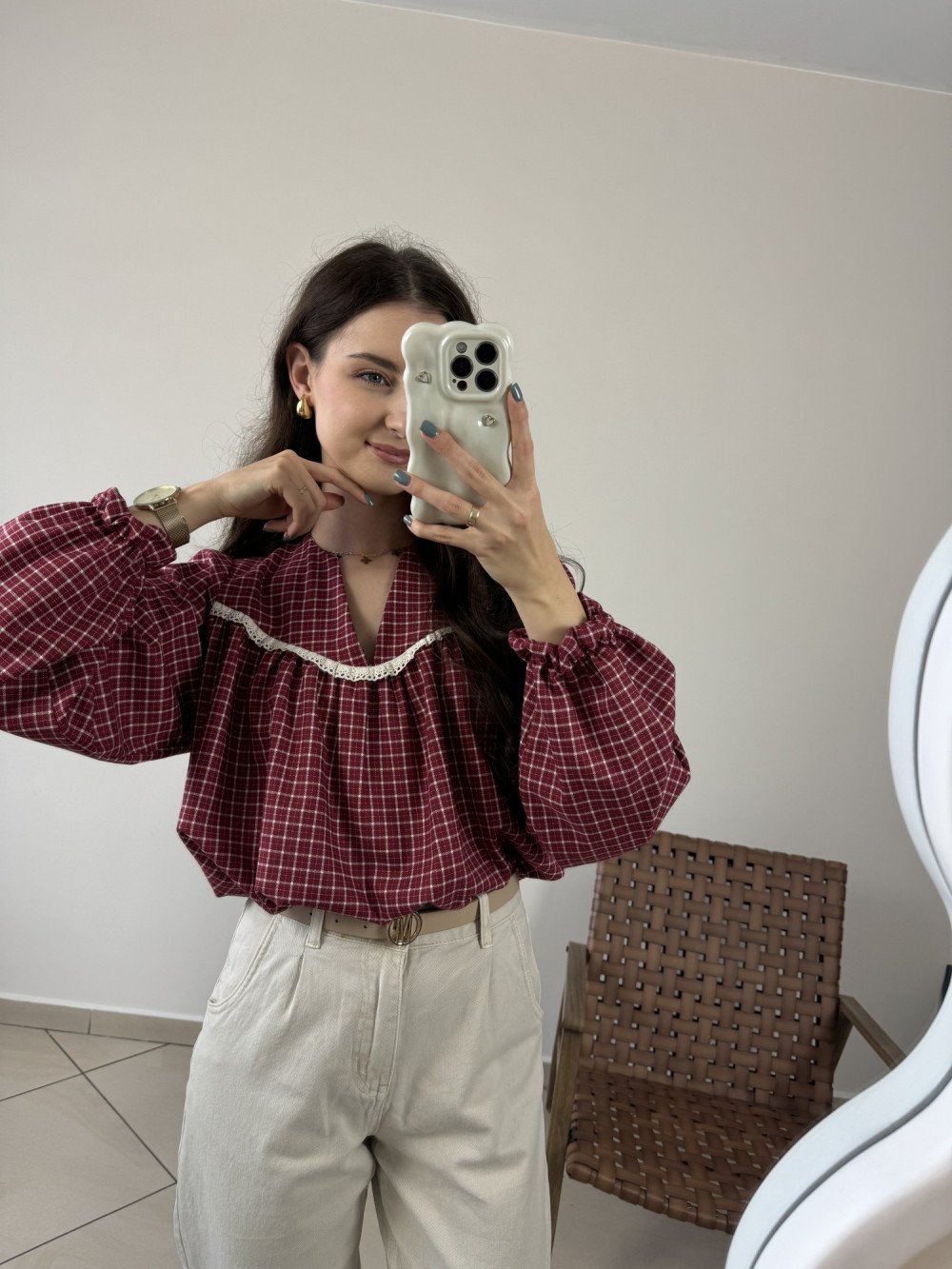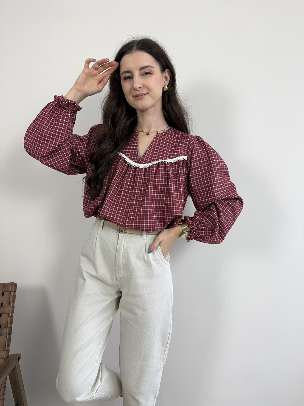Bluzka z koronką czerwona drobna kratka MILAGRO