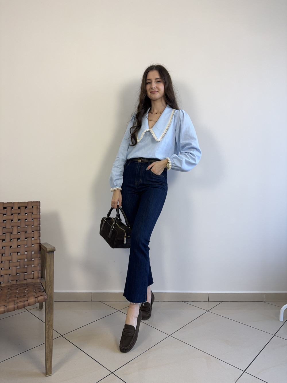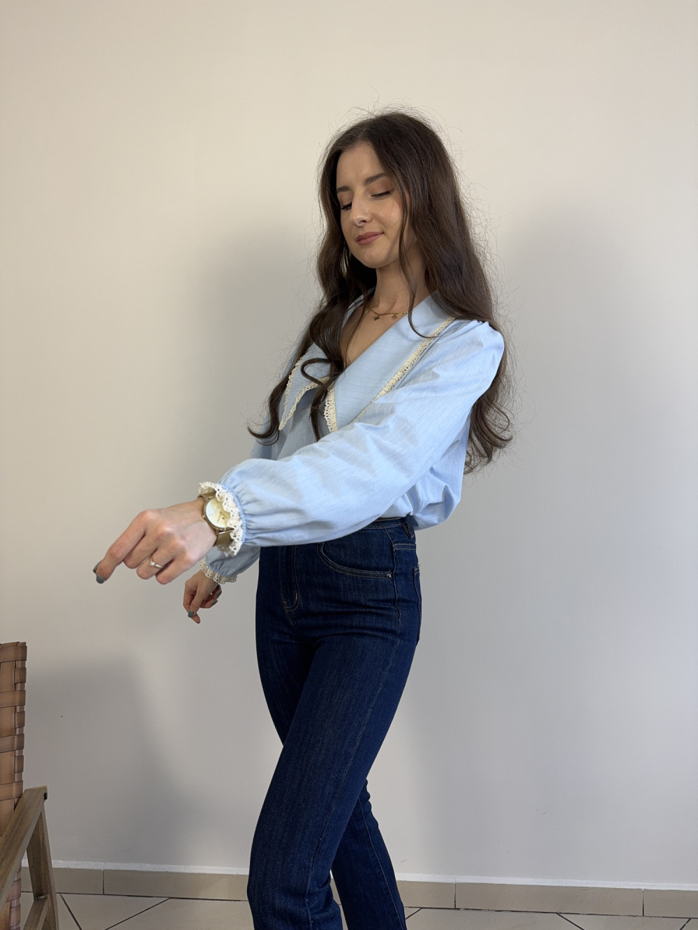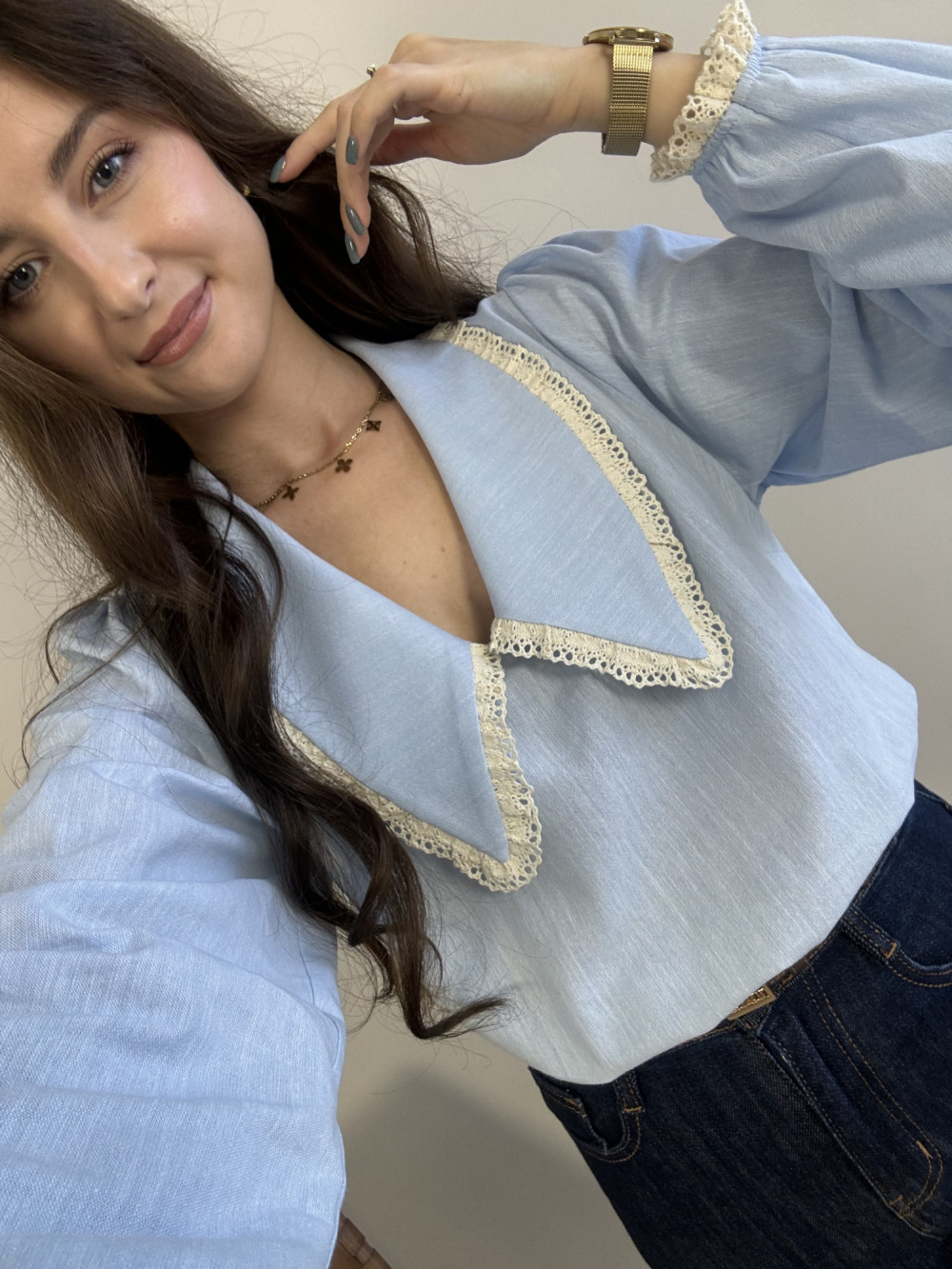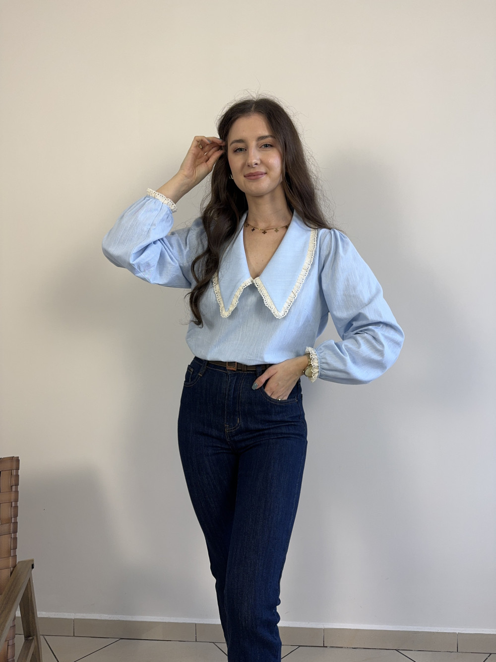 Bluzka z kołnierzykiem błękitna 100% bawełna CLARA