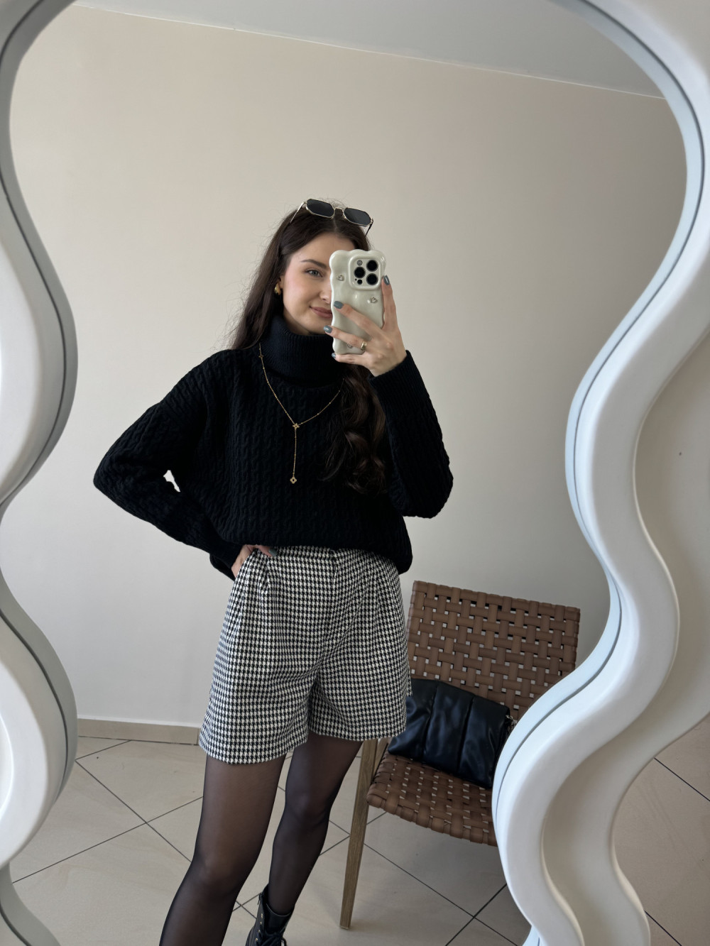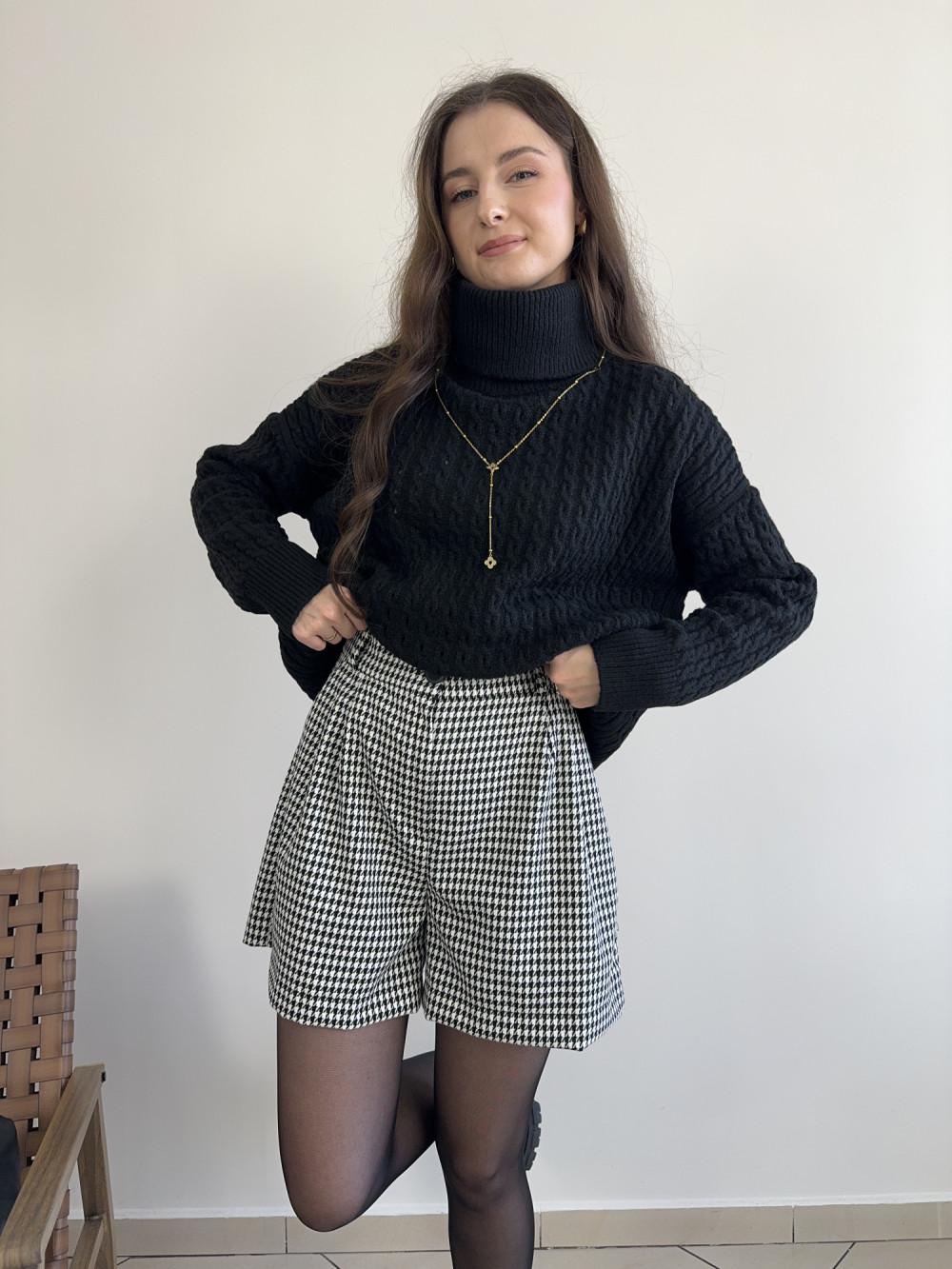 Stylowe, ale przede wszystkim wygodne. Szorty o nieco szerszej nogawce, które pięknie układają się na sylwetce. Wykonane w Polsce, z materiału z domieszką wiskozy — są przewiewne, miękkie i świetnie skrojone. Można je zestawić zarówno z golfem i kozakami, jak i z cienkim topem i marynarką.