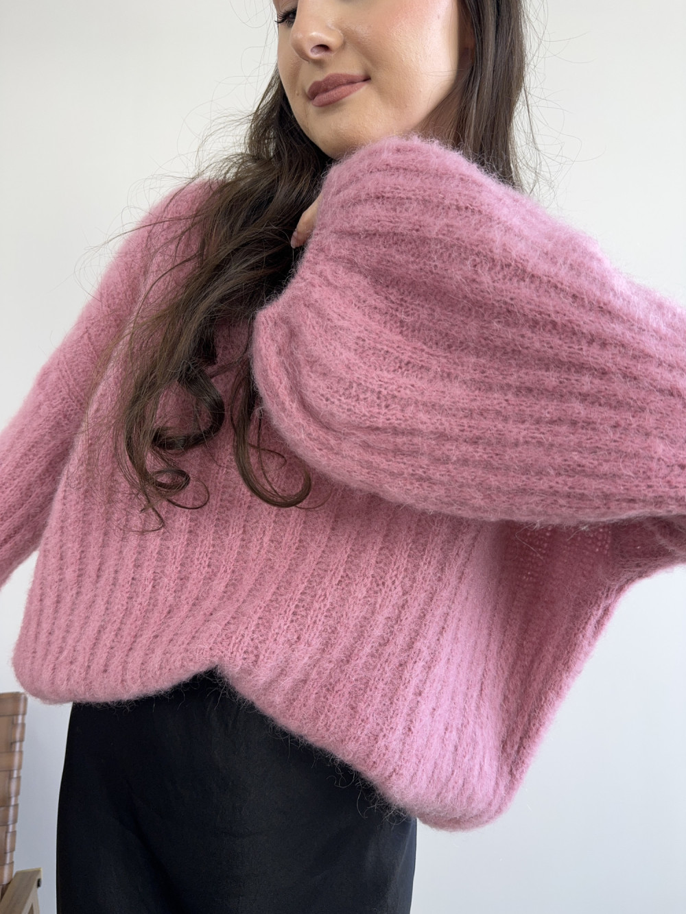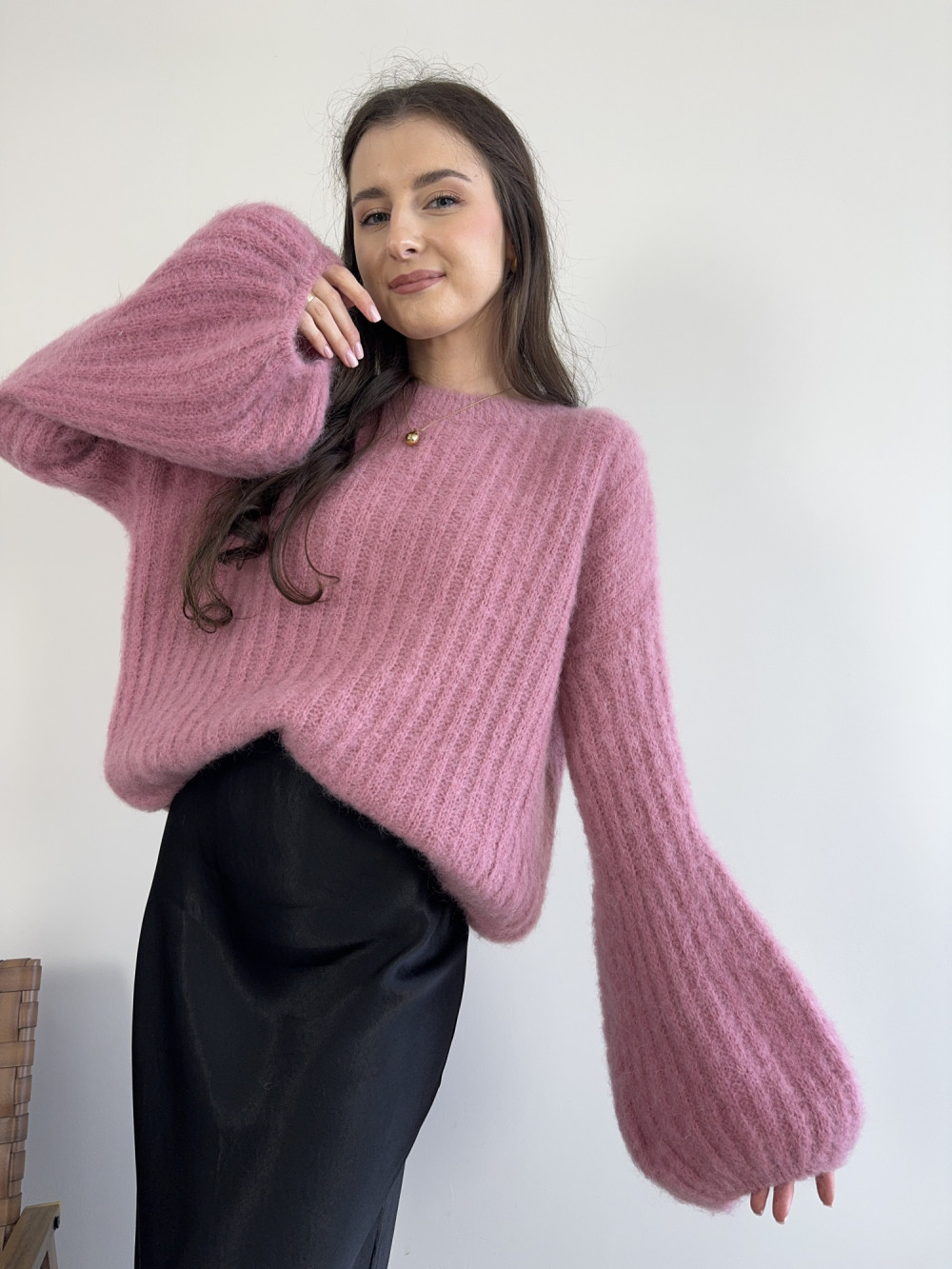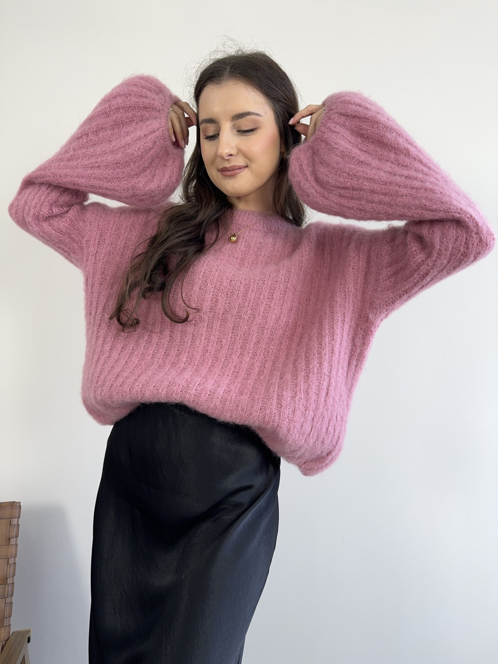 Sweter z szerokimi rękawami 60% moher ciemnoróżowy LEO