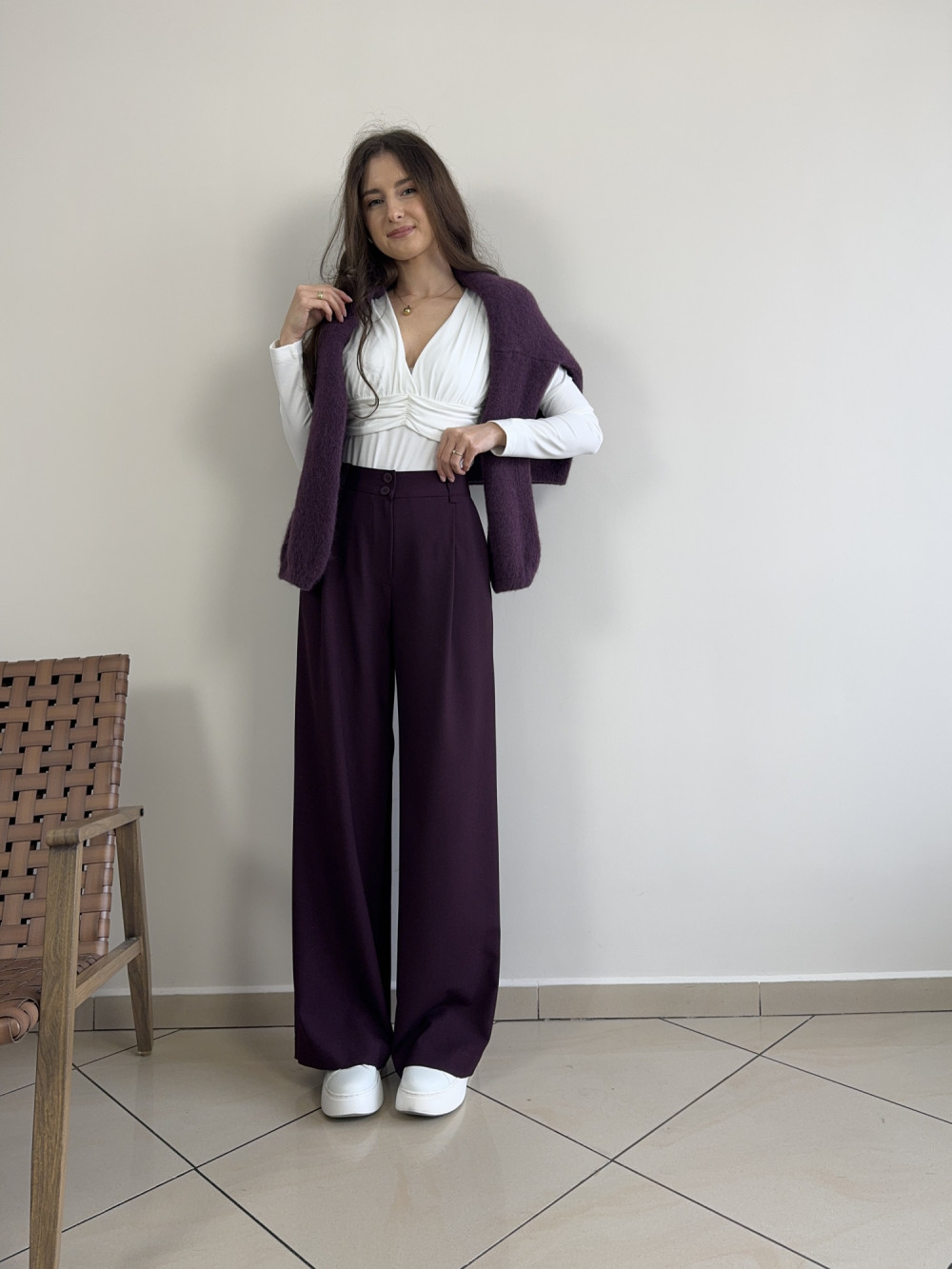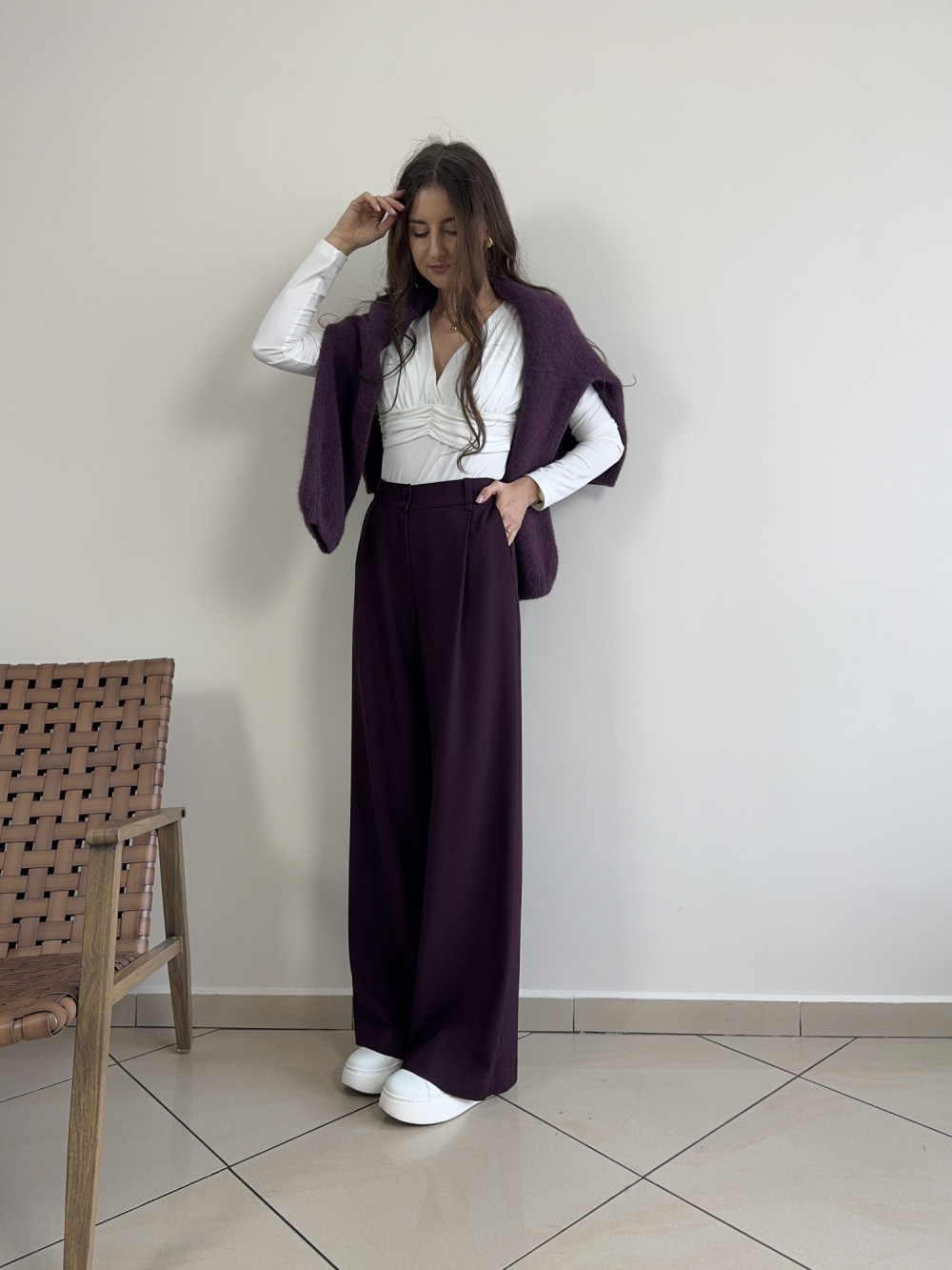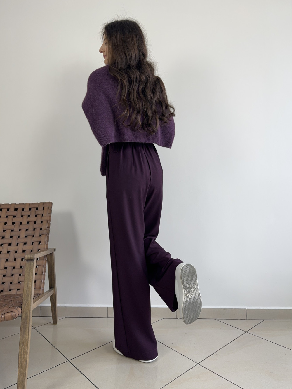 Spodnie z szerokimi nogawkami i wysokim stanem śliwkowe GRAY