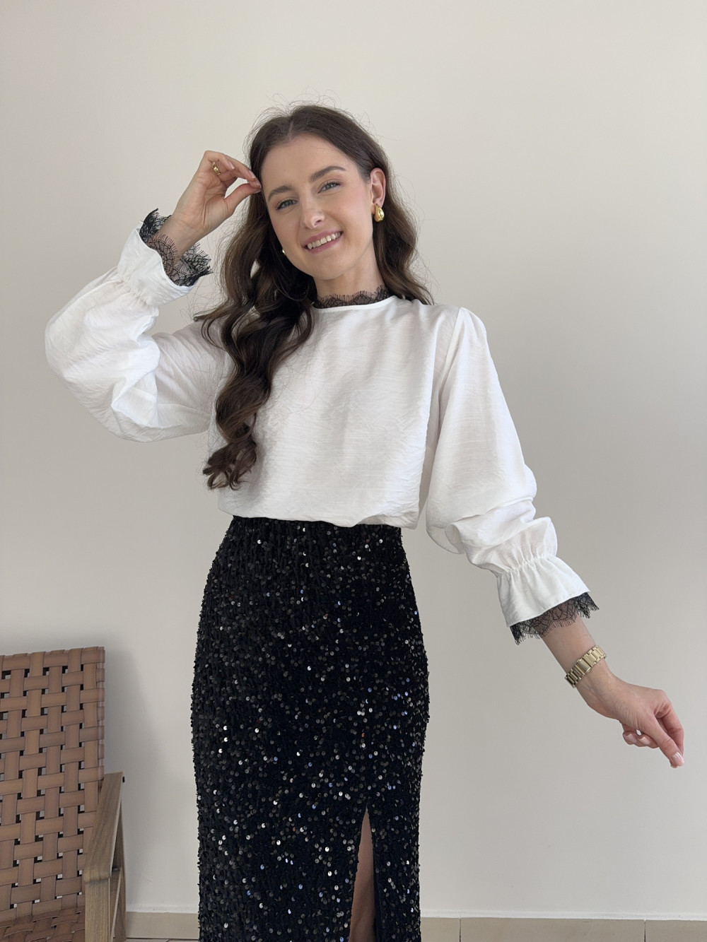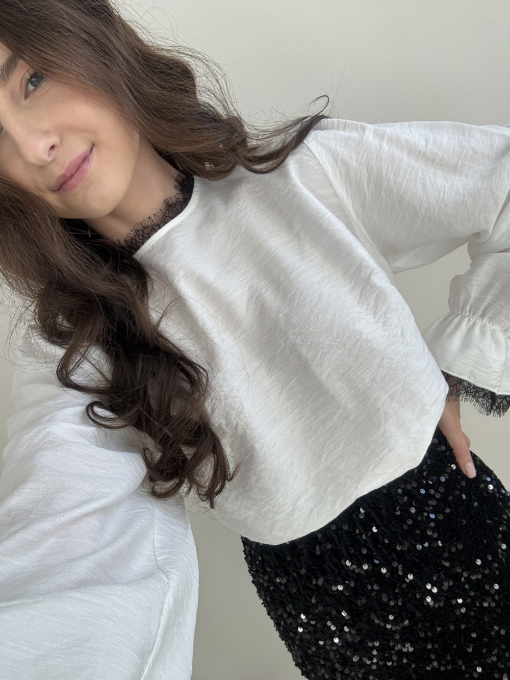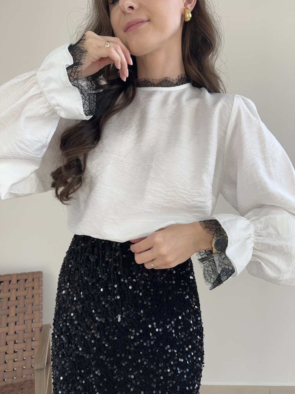 Bluzka śmietankowa z czarną koronką 100% wiskoza VIENNA