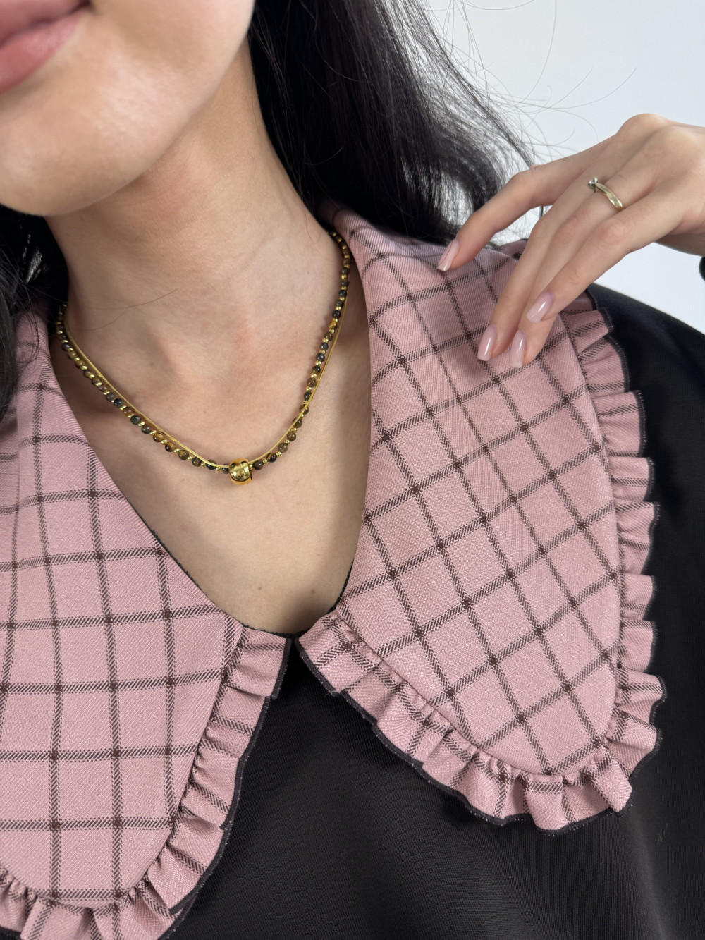 Jest wykonany ze stali chirurgicznej, nie czernieje. Kolor: złoty. Zalecamy unikać kontaktu z wodą i perfumami.