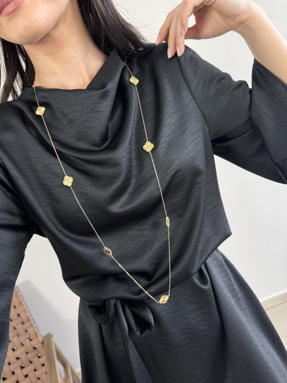 Jest wykonany ze stali chirurgicznej, nie czernieje. Kolor: złoty. Zalecamy unikać kontaktu z wodą i perfumami.