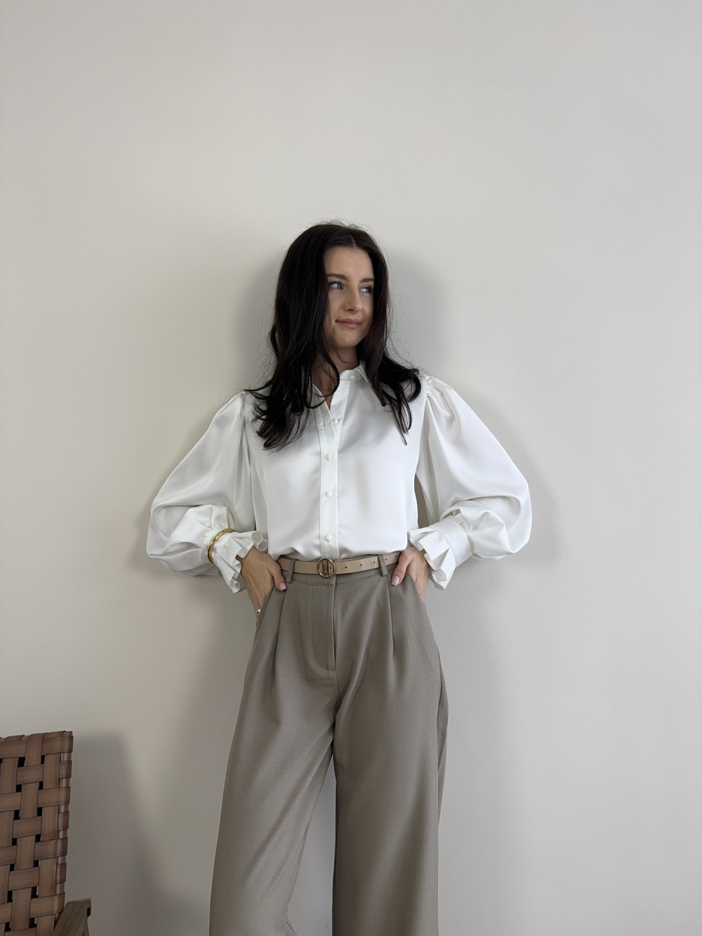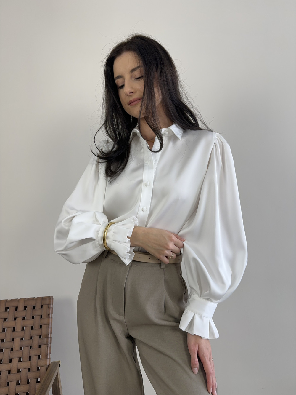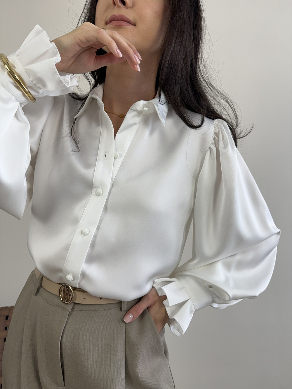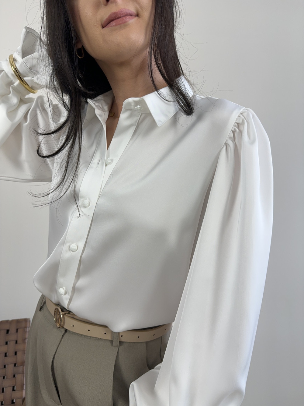 Koszula śmietankowa satynowa z bufiastymi rękawami IVORY