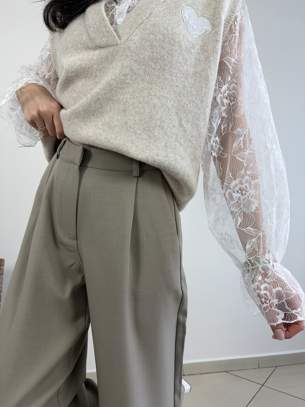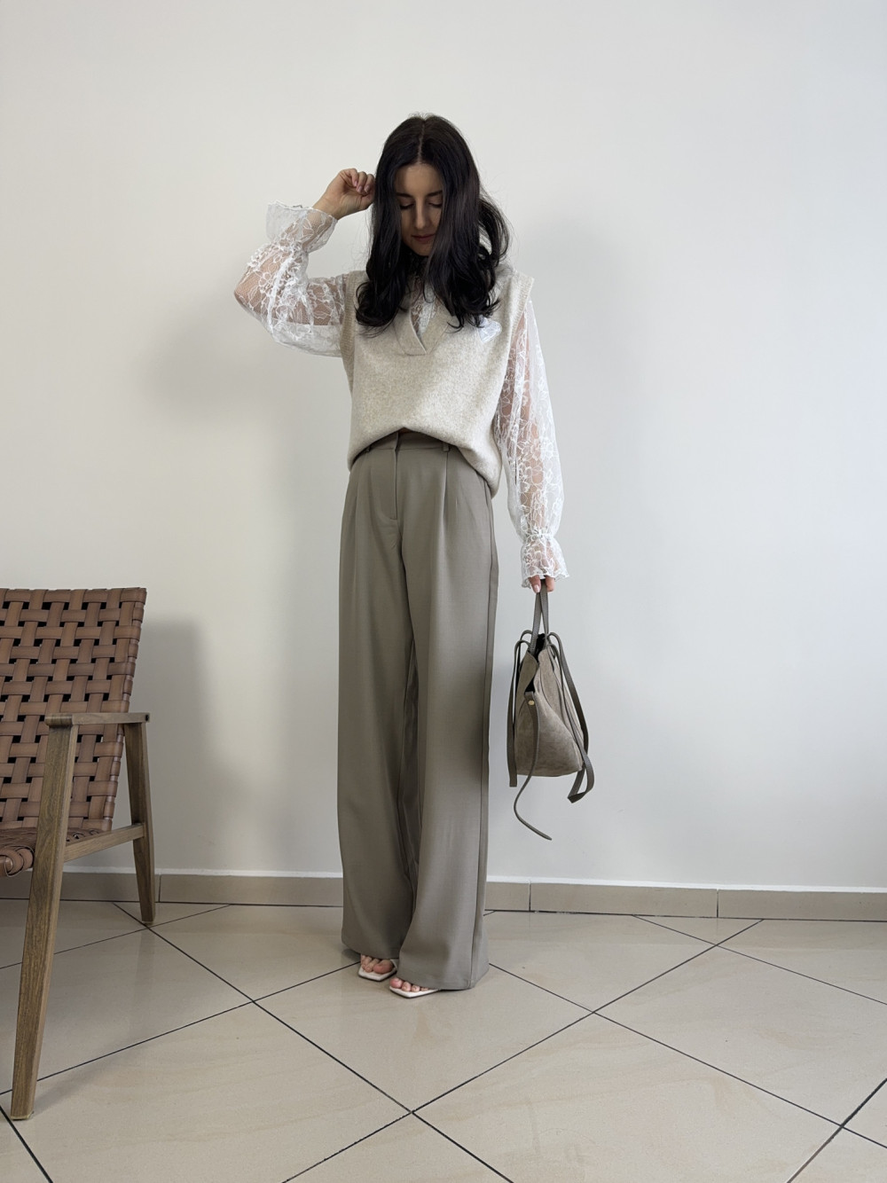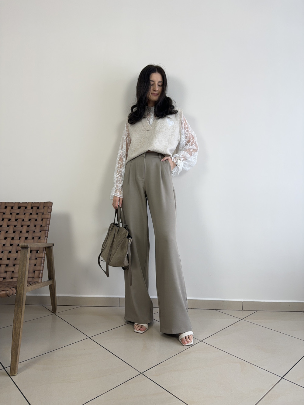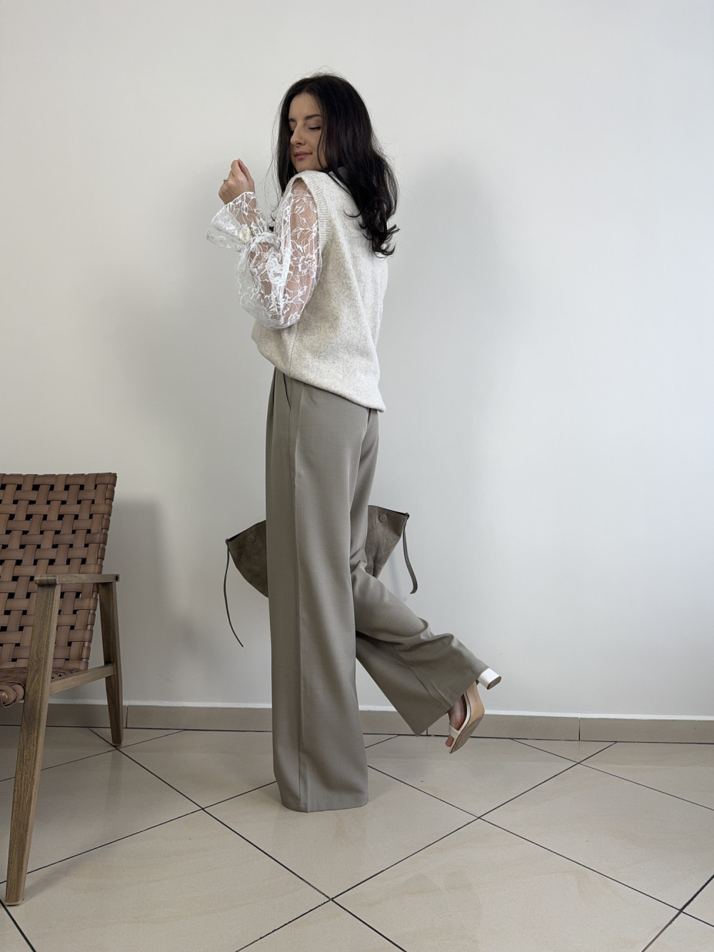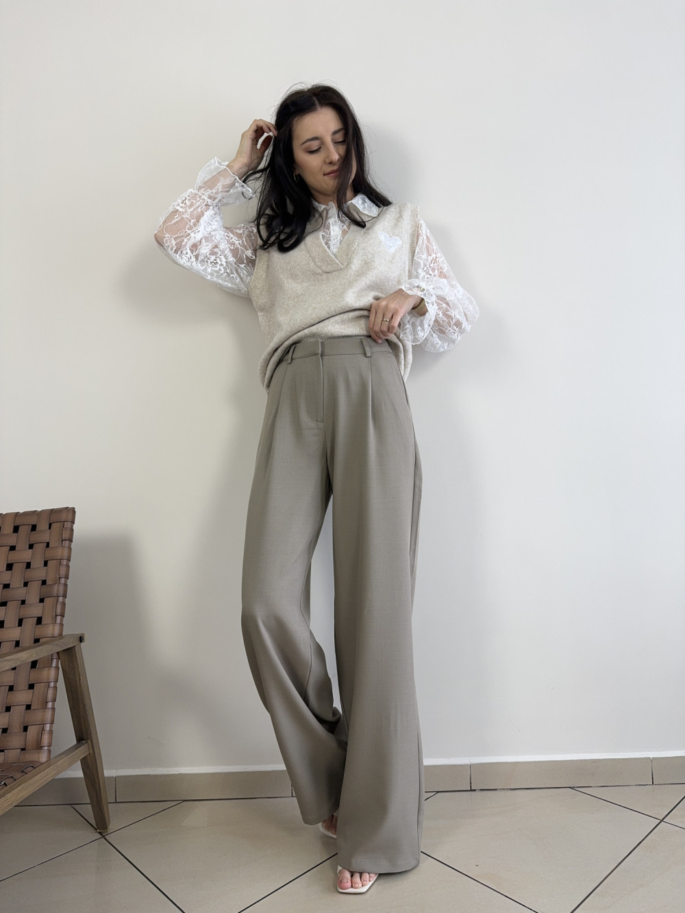 Spodnie „Manhattan” mają klasyczne zaszewki, które pięknie kształtują linię bioder i dodają eleganckiej struktury. Szerokie nogawki tworzą efekt lekkiego, płynnego ruchu oraz wysmuklają optycznie nogi. Fason jest bardzo komfortowy, a jednocześnie niezwykle szykowny — idealnie pasuje zarówno do koszul, jak i miękkich swetrów. Materiał układa się gładko i zapewnia wygodę przez cały dzień. To ponadczasowy element garderoby, który sprawdzi się w wielu stylizacjach.