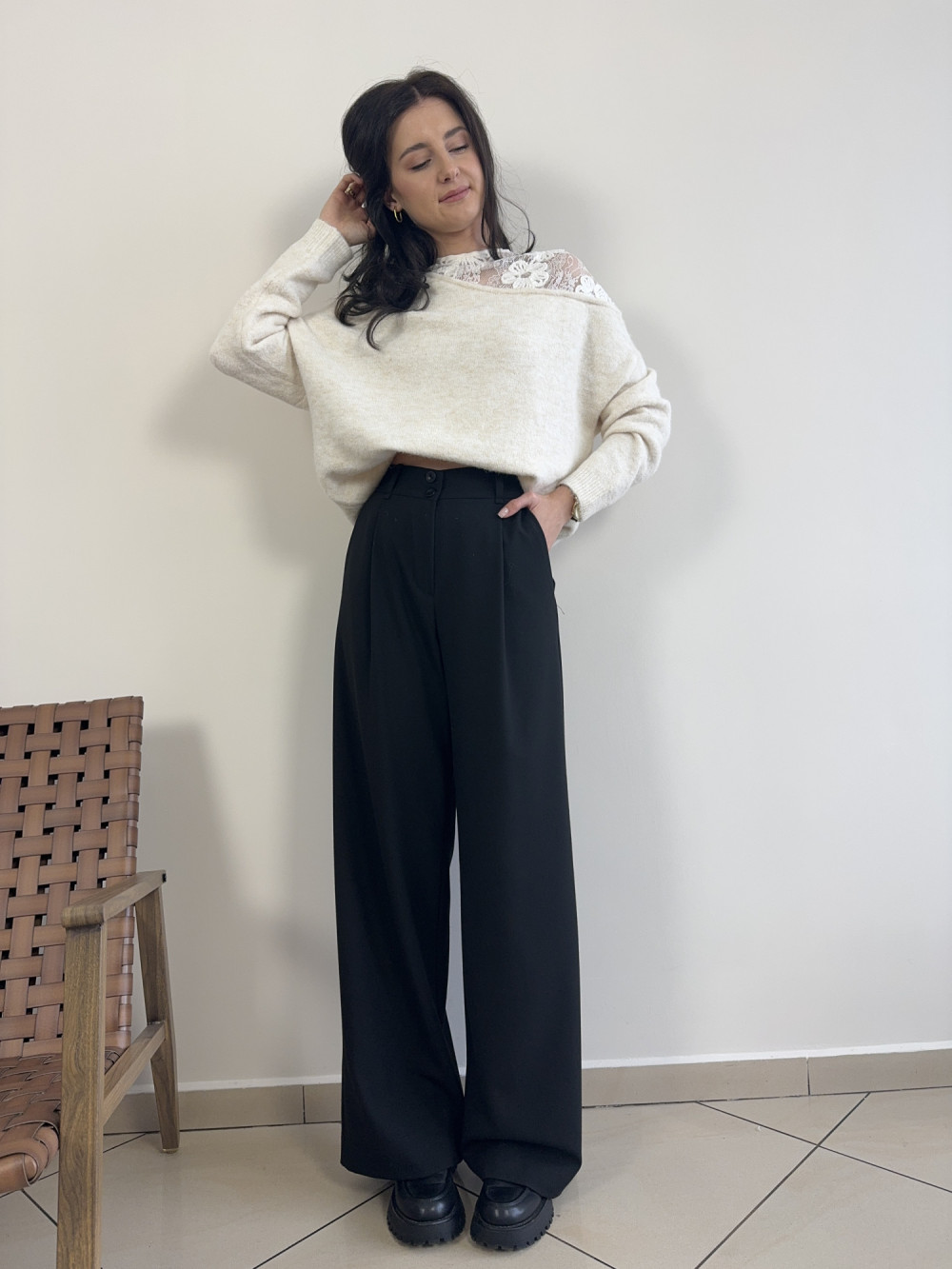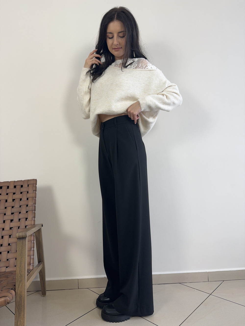 Spodnie z szerokimi nogawkami i wysokim stanem czarne GRAY