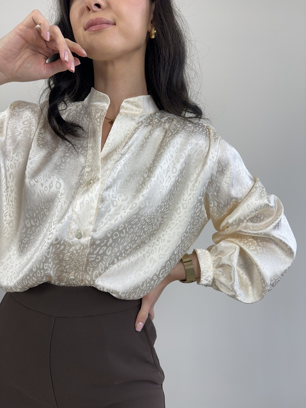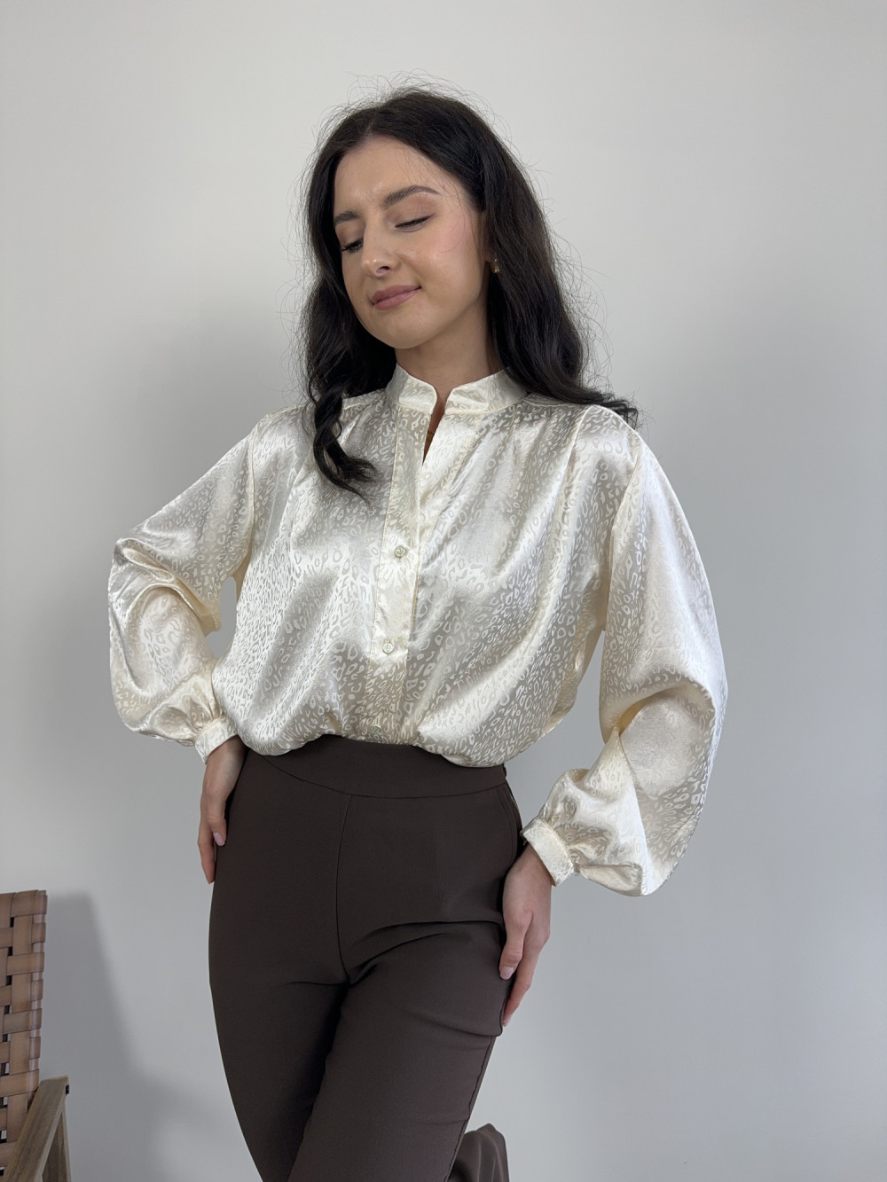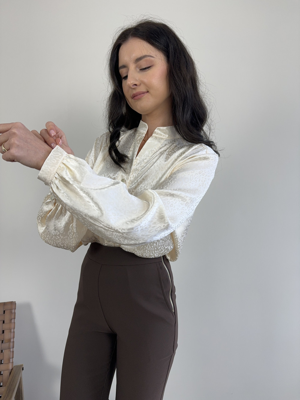 Koszula o satynowym wykończeniu w cętki waniliowa VALENTINA