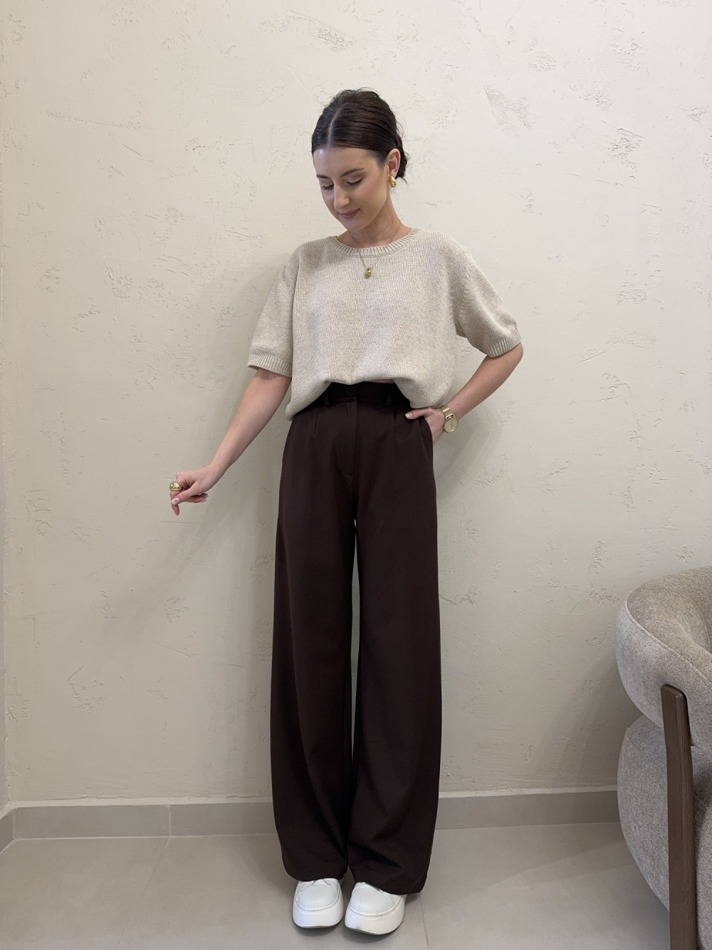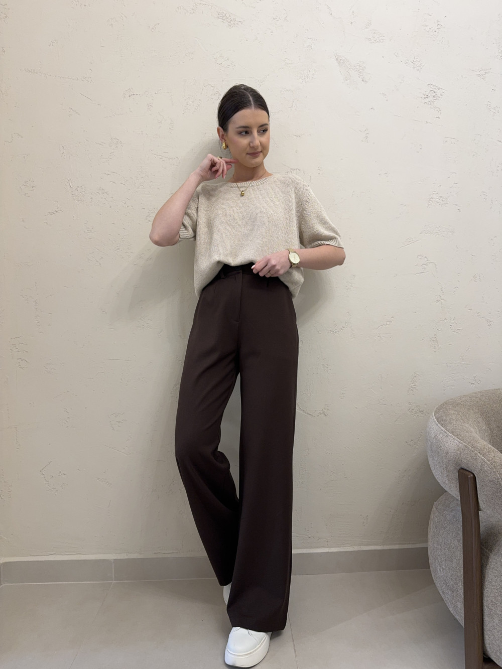 Spodnie z szerokimi nogawkami czekoladowe CHIARA