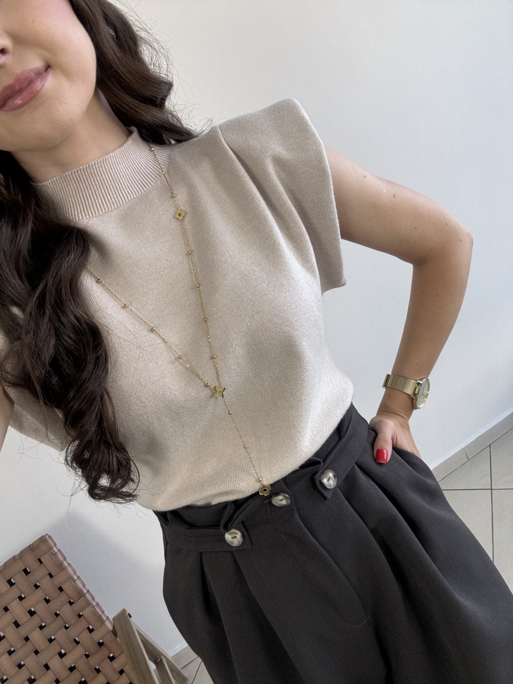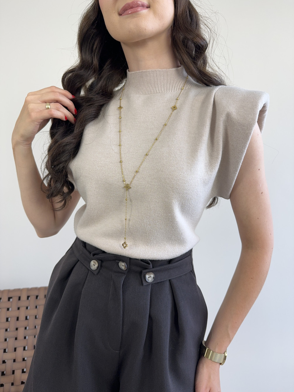 Bluzka z poduszkami na ramionach beżowa MINNIE