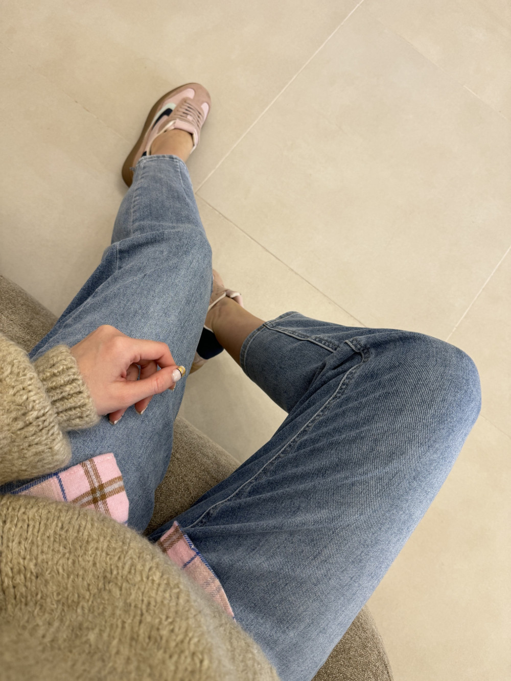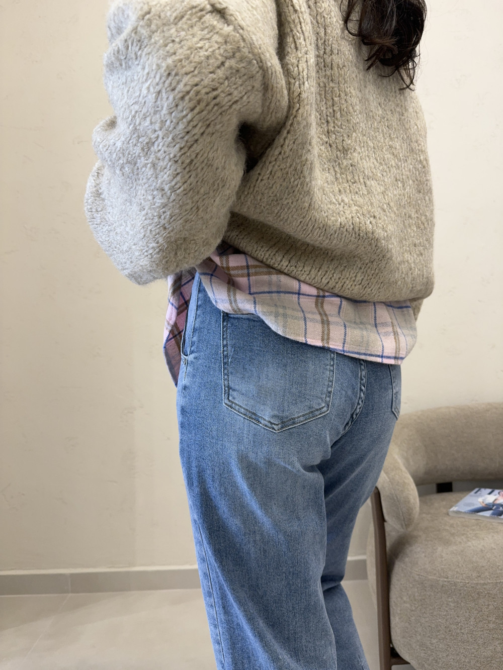 Jeansy uszyte z miękkiego denimu, który pięknie dopasowuje się do sylwetki i zapewnia komfort przez cały dzień. Nogawki są delikatnie szersze u góry, ale subtelnie zwężają się przy łydkach, co wysmukla nogi. Materiał nie jest sztywny ani ciężki, dzięki czemu spodnie świetnie układają się w ruchu. To model, który łączy modny krój z wygodą noszenia. Idealne do codziennych stylizacji, ale także do bardziej dopracowanych looków.