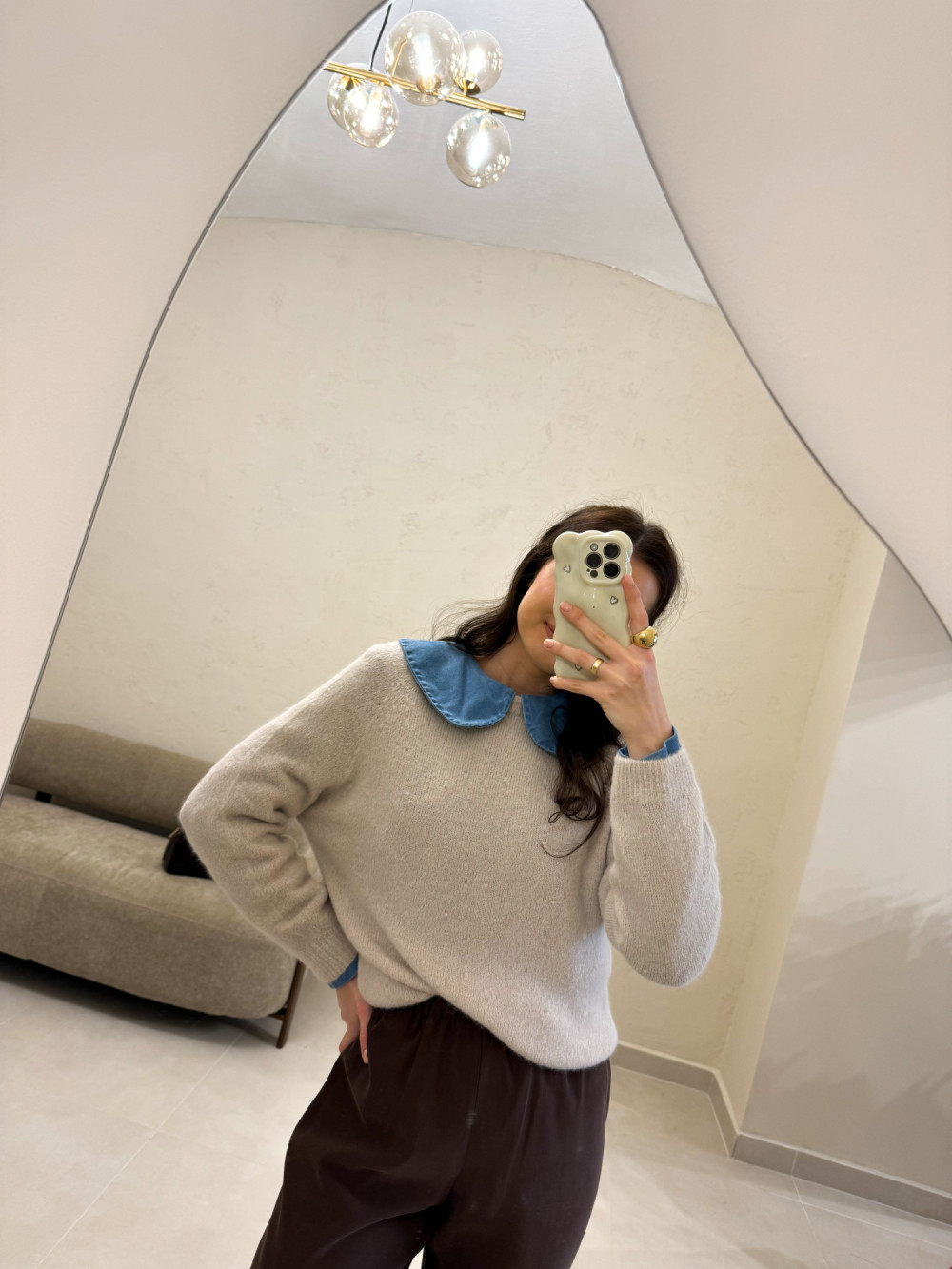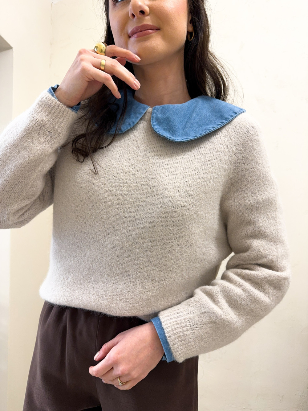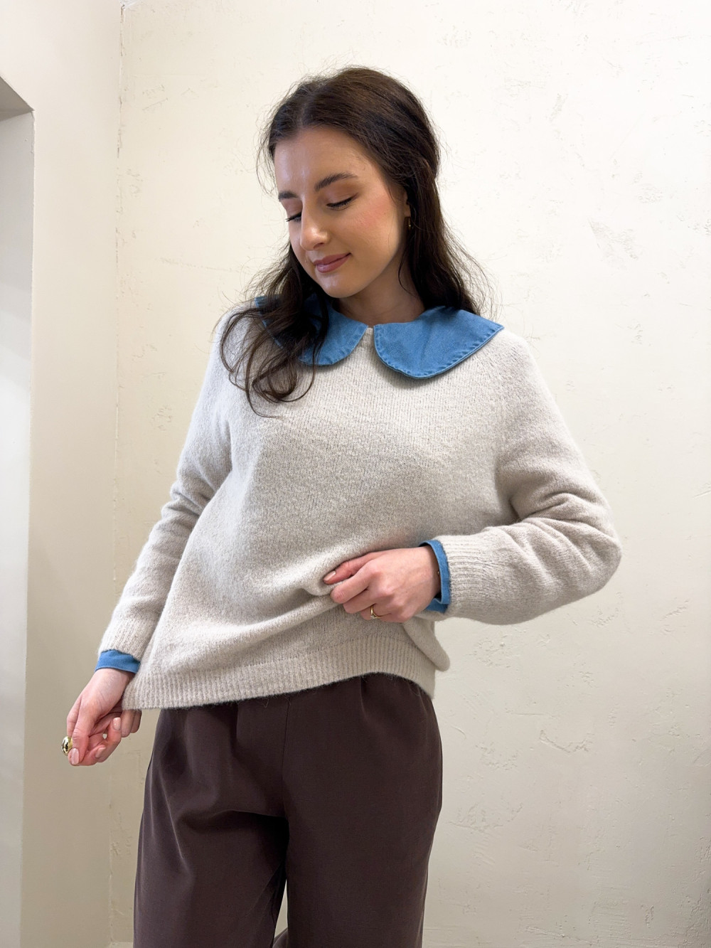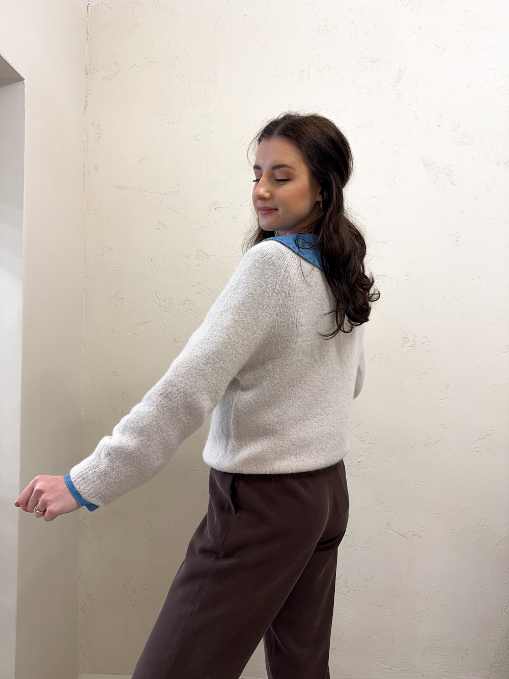 Ten wyjątkowo miękki sweterek zawiera w składzie luksusową domieszkę baby alpaki, dzięki czemu jest nie tylko ciepły, ale też niezwykle przyjemny w dotyku. Minimalistyczny fason z okrągłym dekoltem i obniżoną linią ramion daje efekt nonszalanckiej elegancji.
