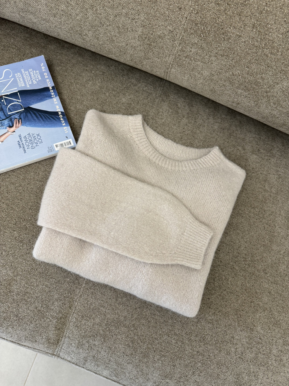 Sweter beżowy z baby alpacą i wełną HORIZON