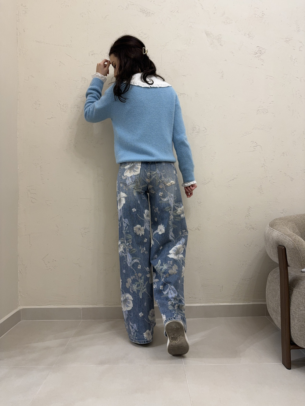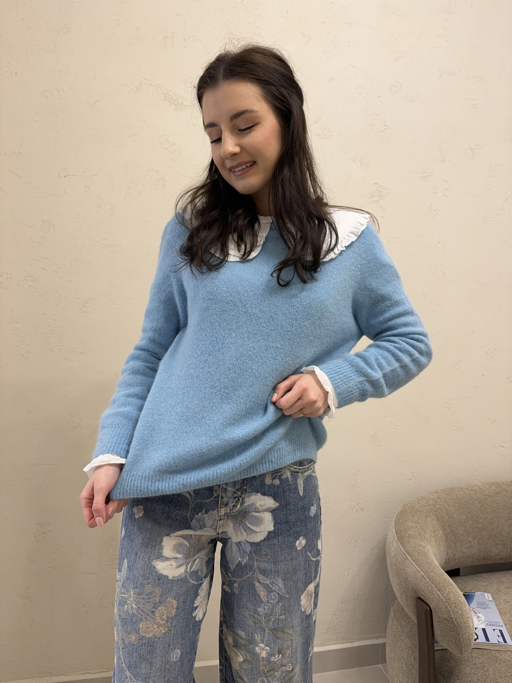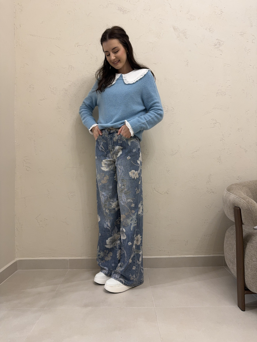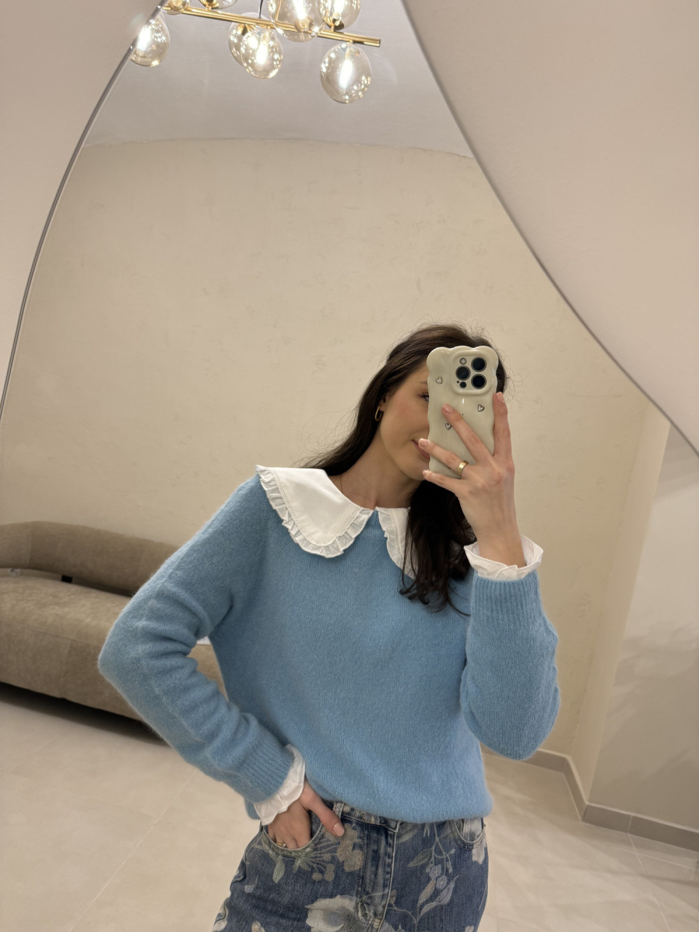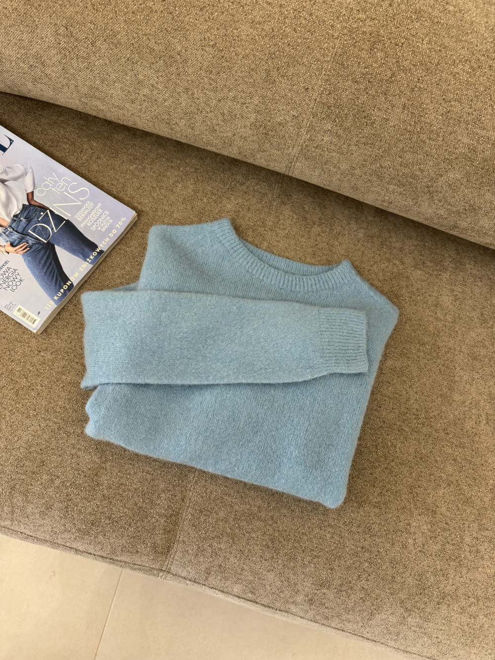 Sweter niebieski z baby alpacą i wełną HORIZON