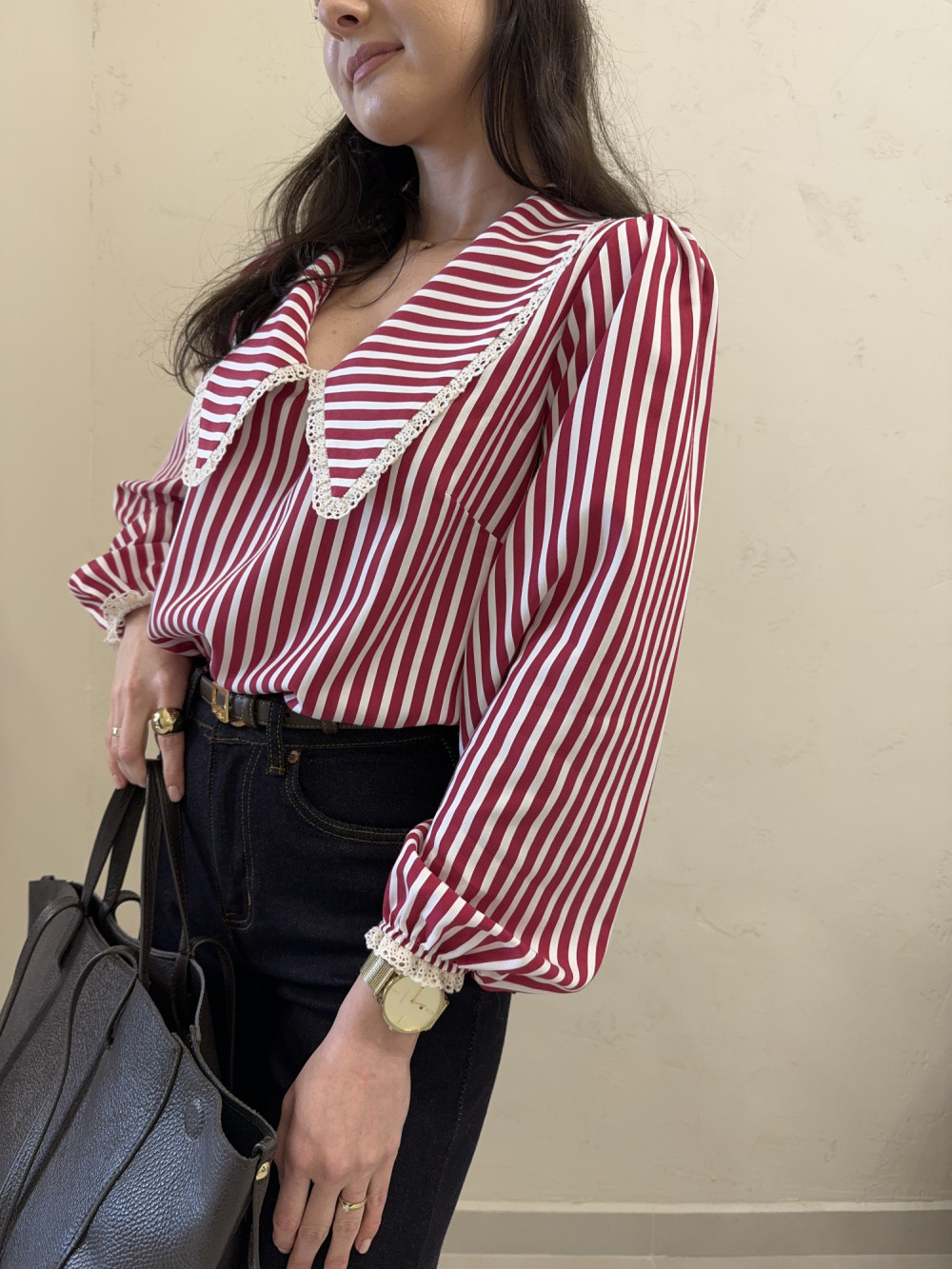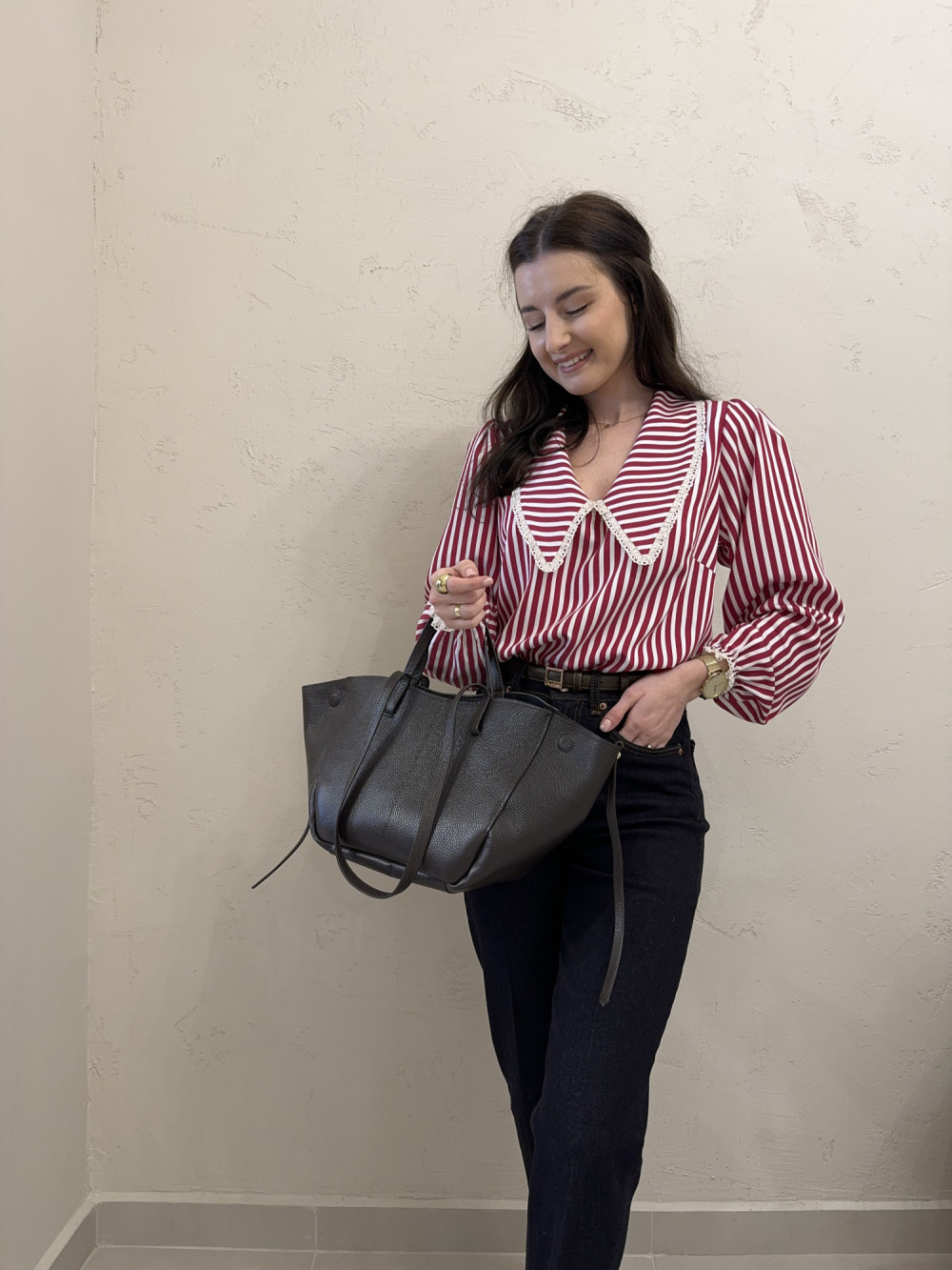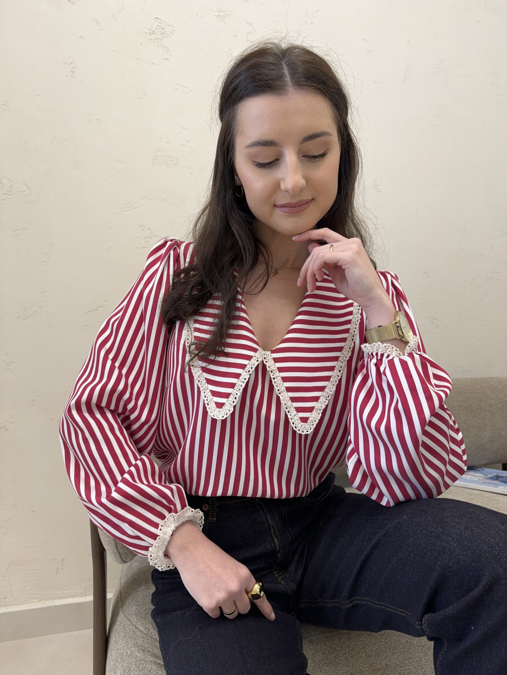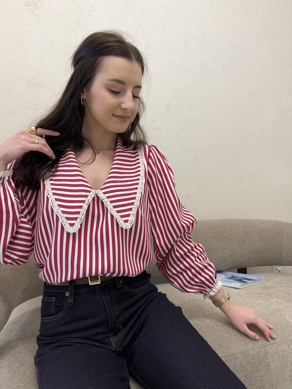 Bluzka z kołnierzykiem w czerwone paski 89% wiskoza CLARA