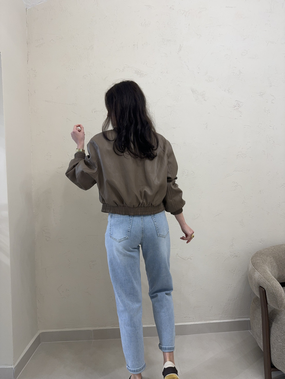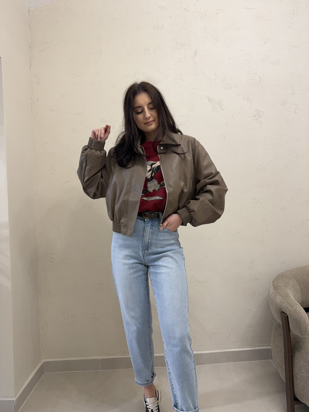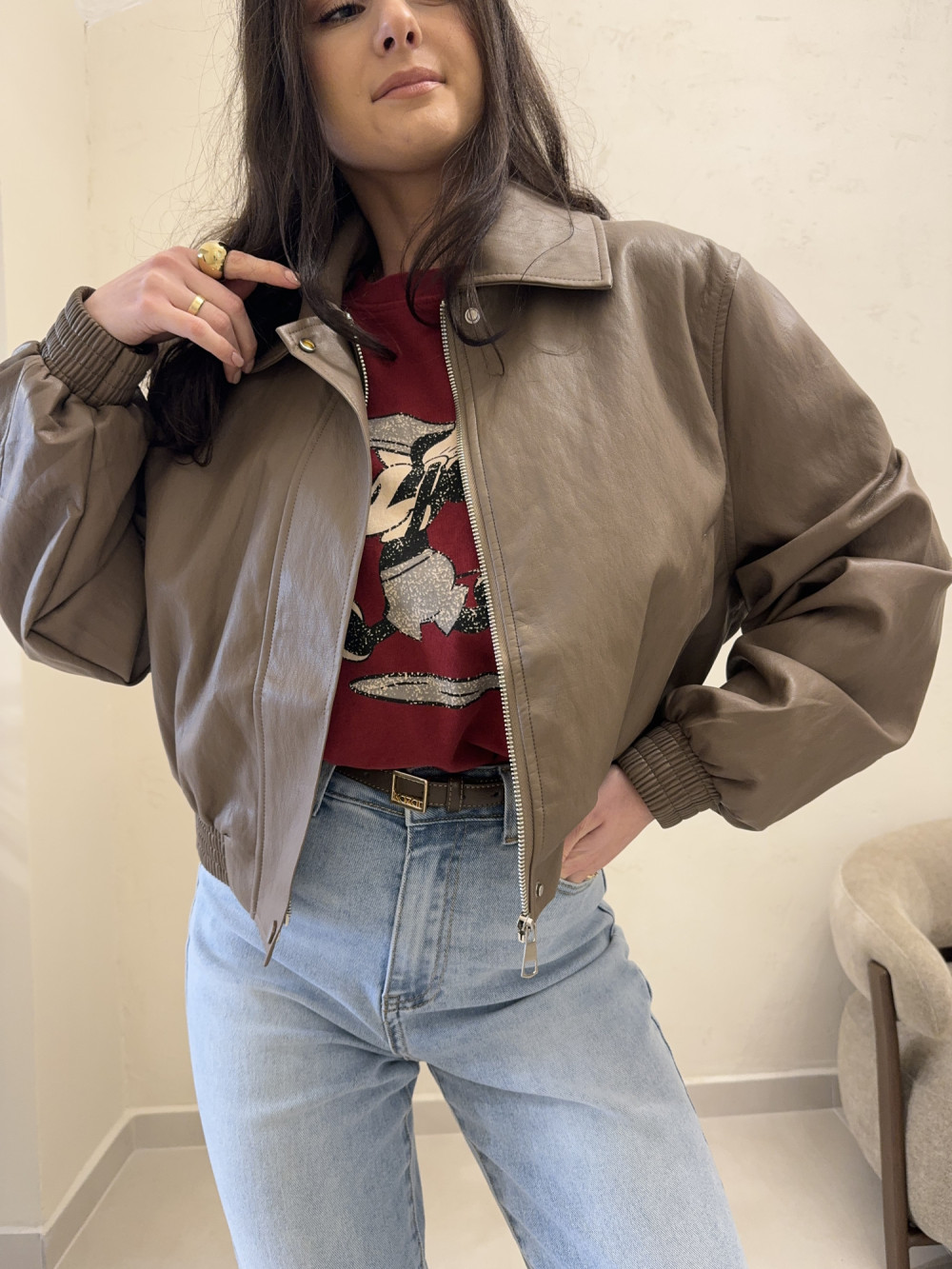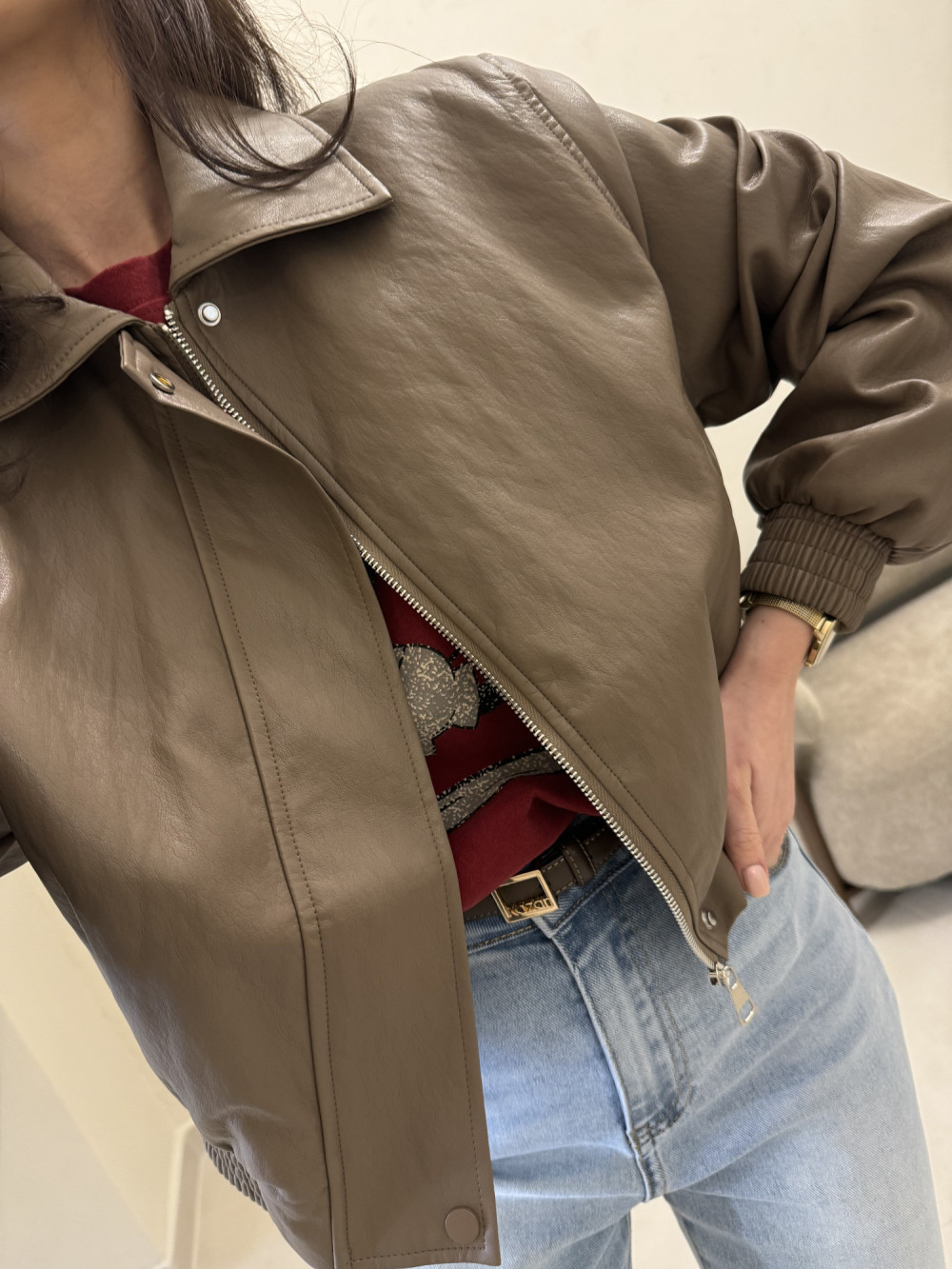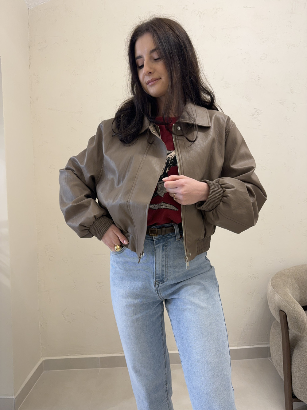 Ramoneska o krótszym kroju z ekoskóry mocca RINA