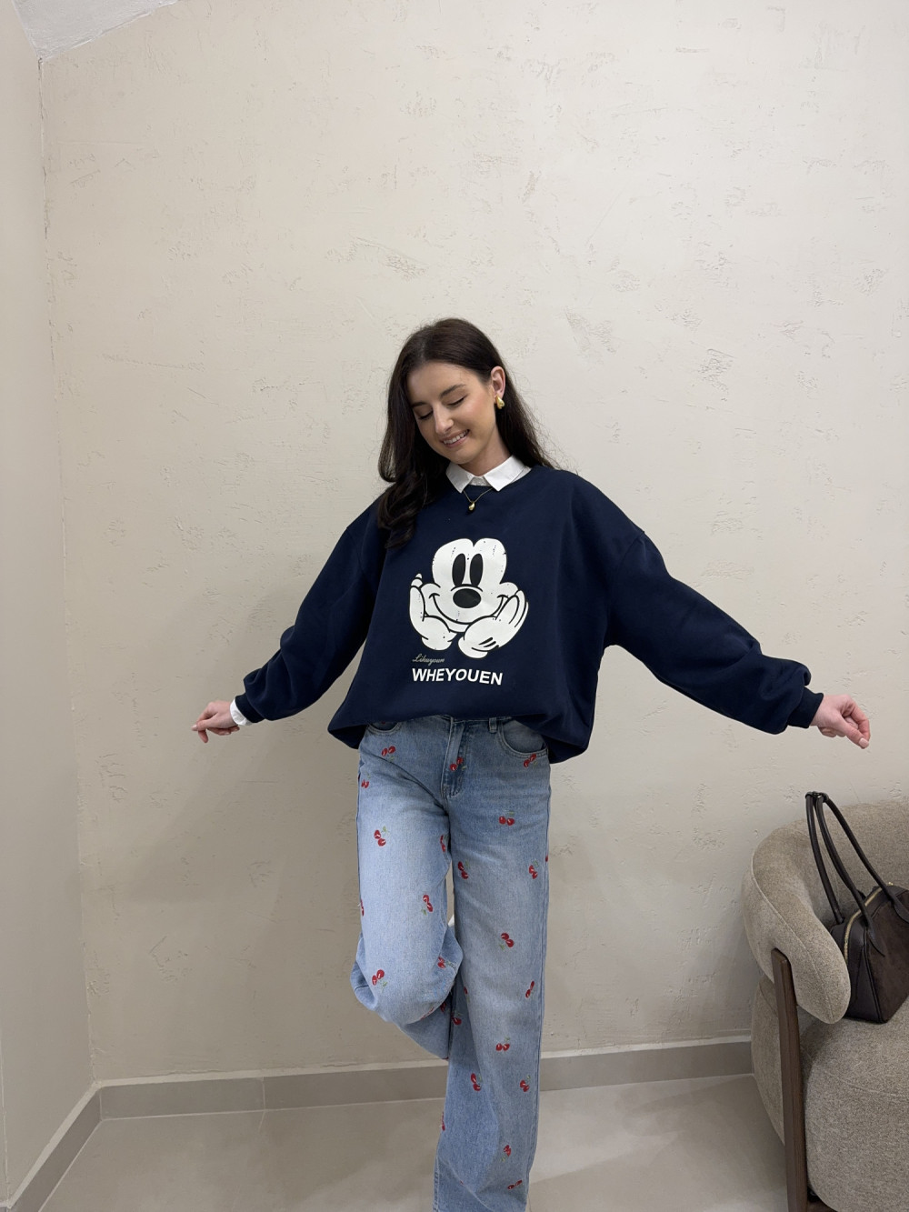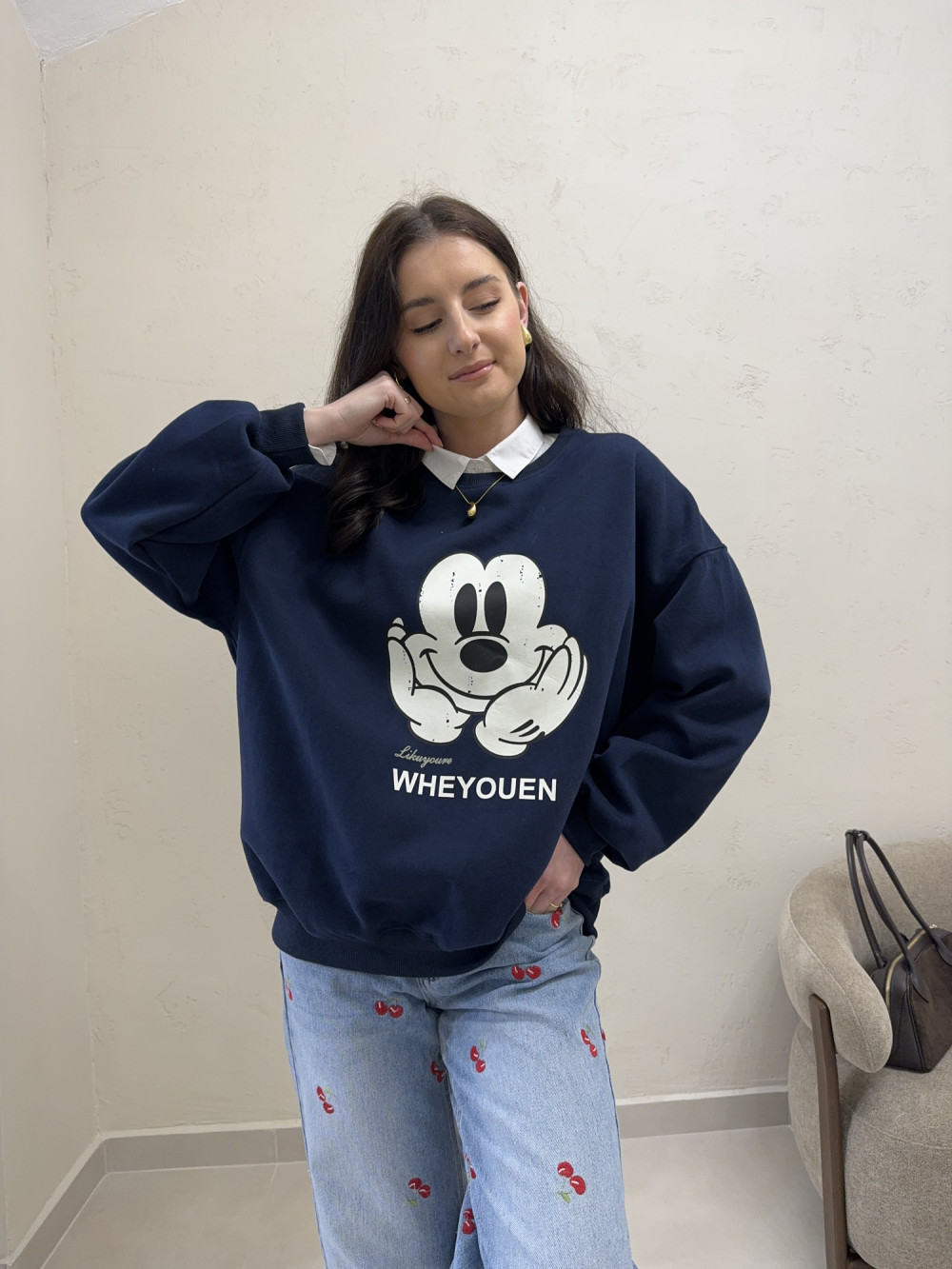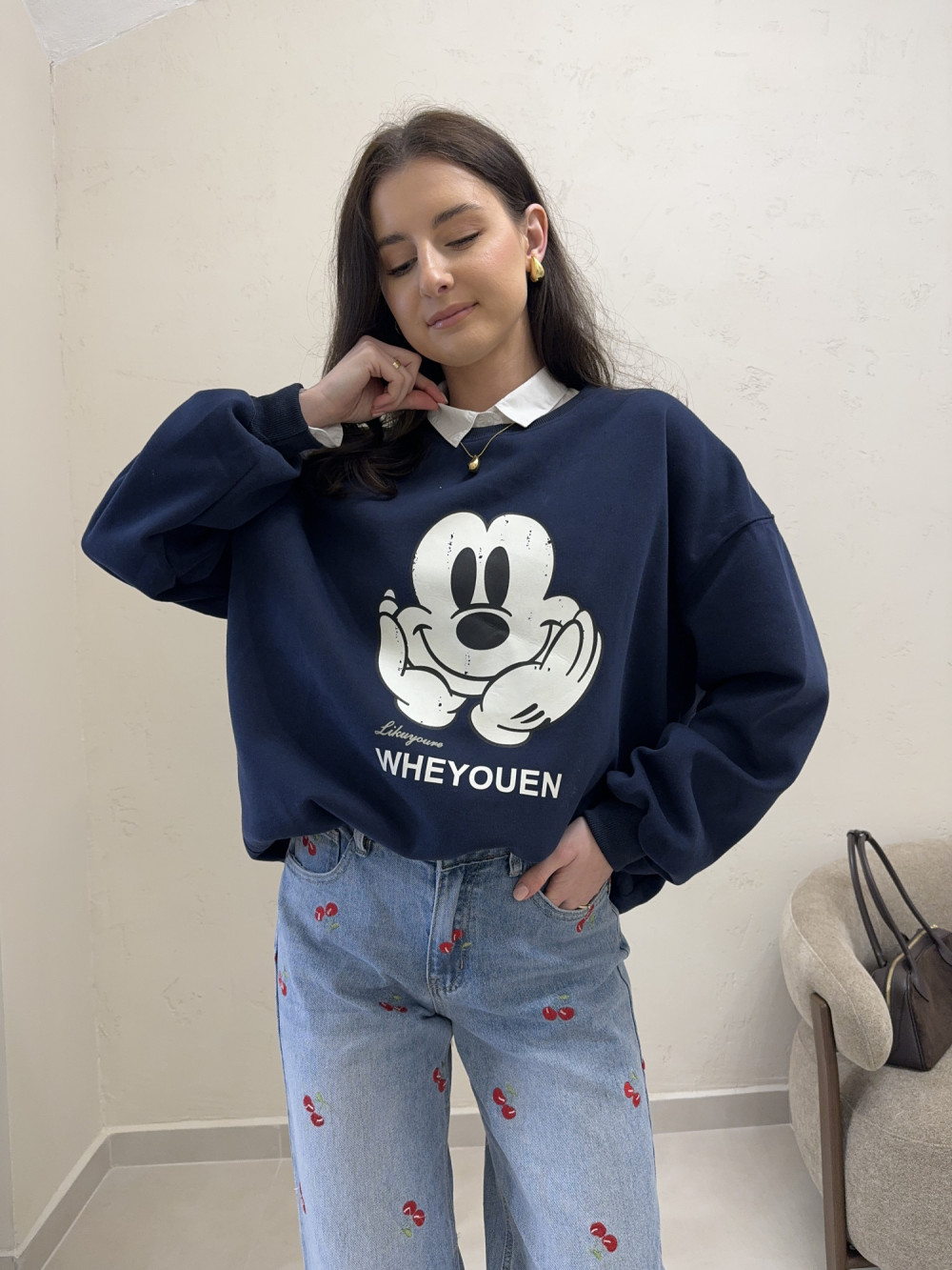 Bluza bawełniana granatowa z myszką Mickey GINA