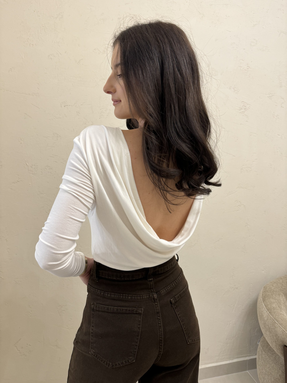 Bluzka z dekoltem typu woda na plecach śmietankowa SILHOUETTE