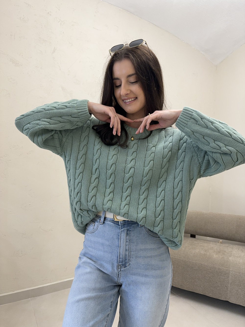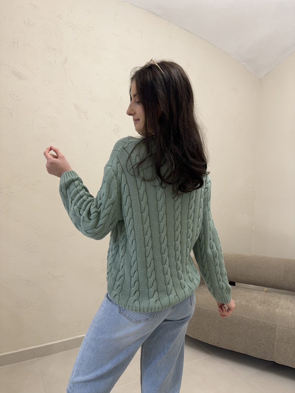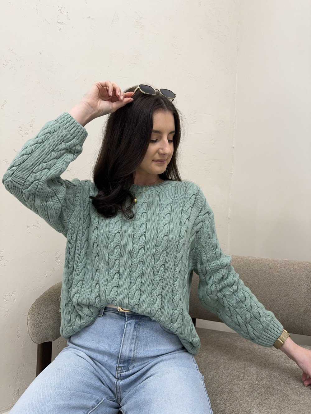 Sweter o warkoczykowym splocie miętowy 100% bawełna BRUCE