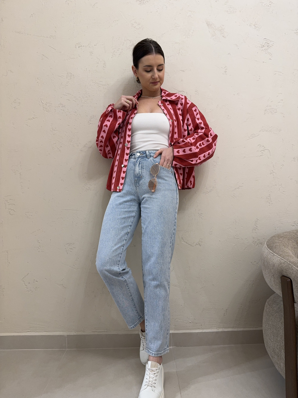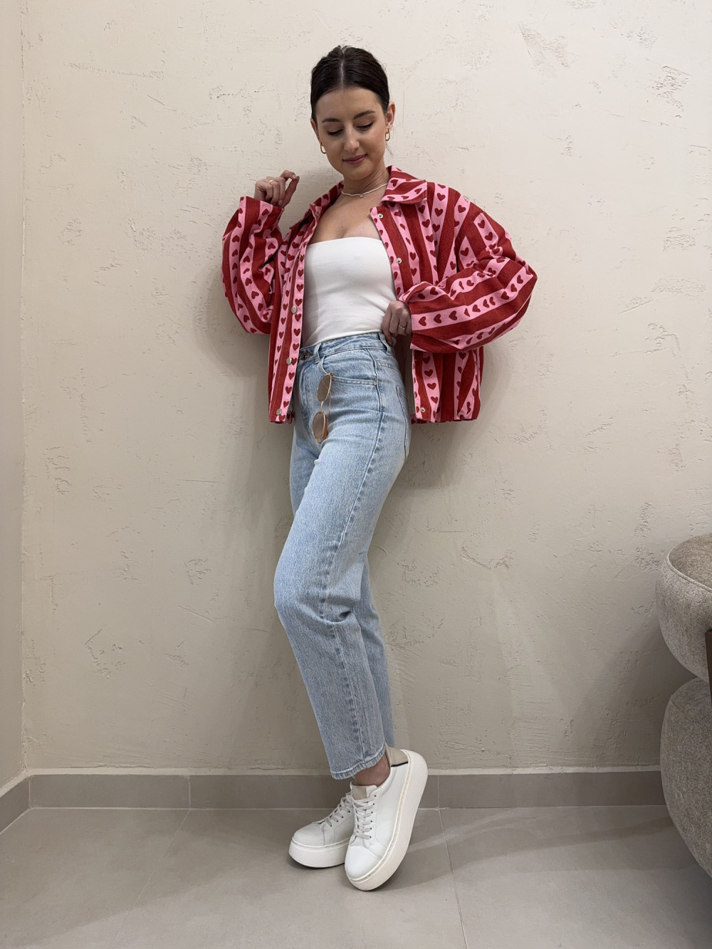 Filmik z produktem i dokładną prezentacją na osobie jest dostępny na naszym Instagramie - szykovnybutik, w wyróżnionej relacji "04.02.2026"